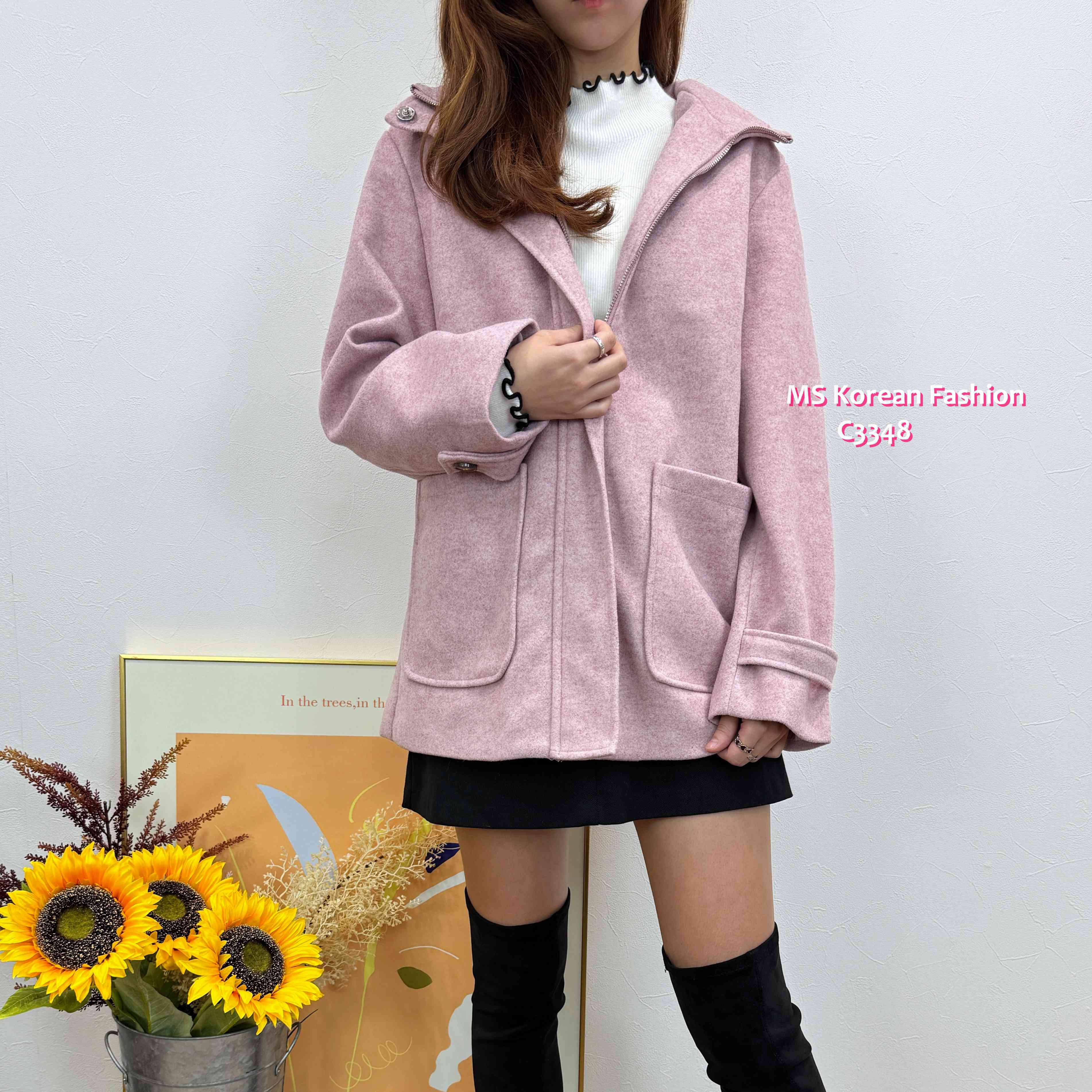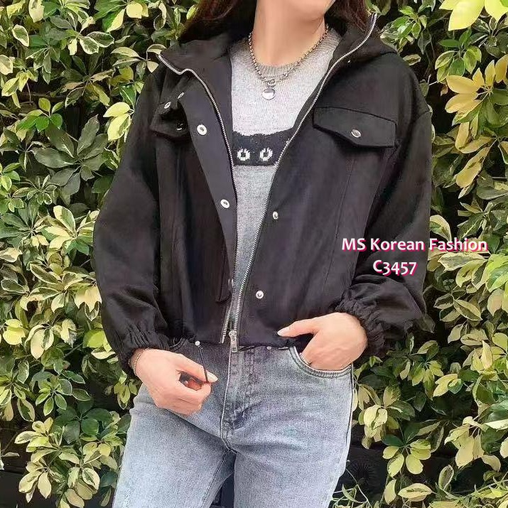 C3457 韓國🇰🇷猄布料有帽拉鏈外套