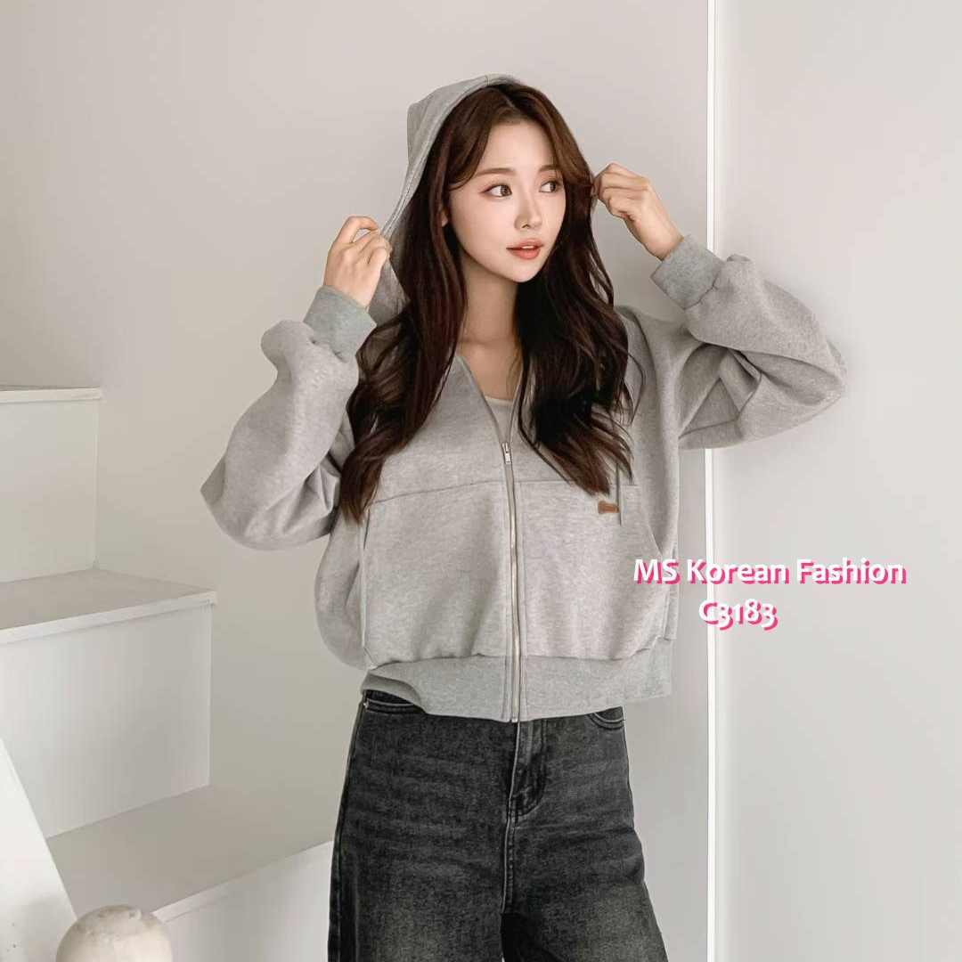 C3183 韓國🇰🇷有帽拉鏈外套
