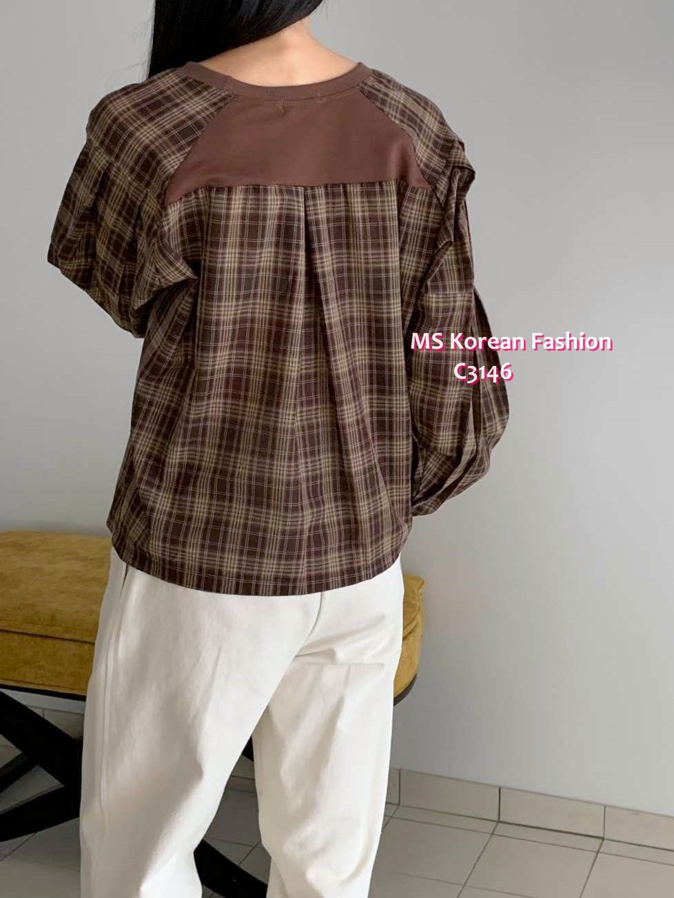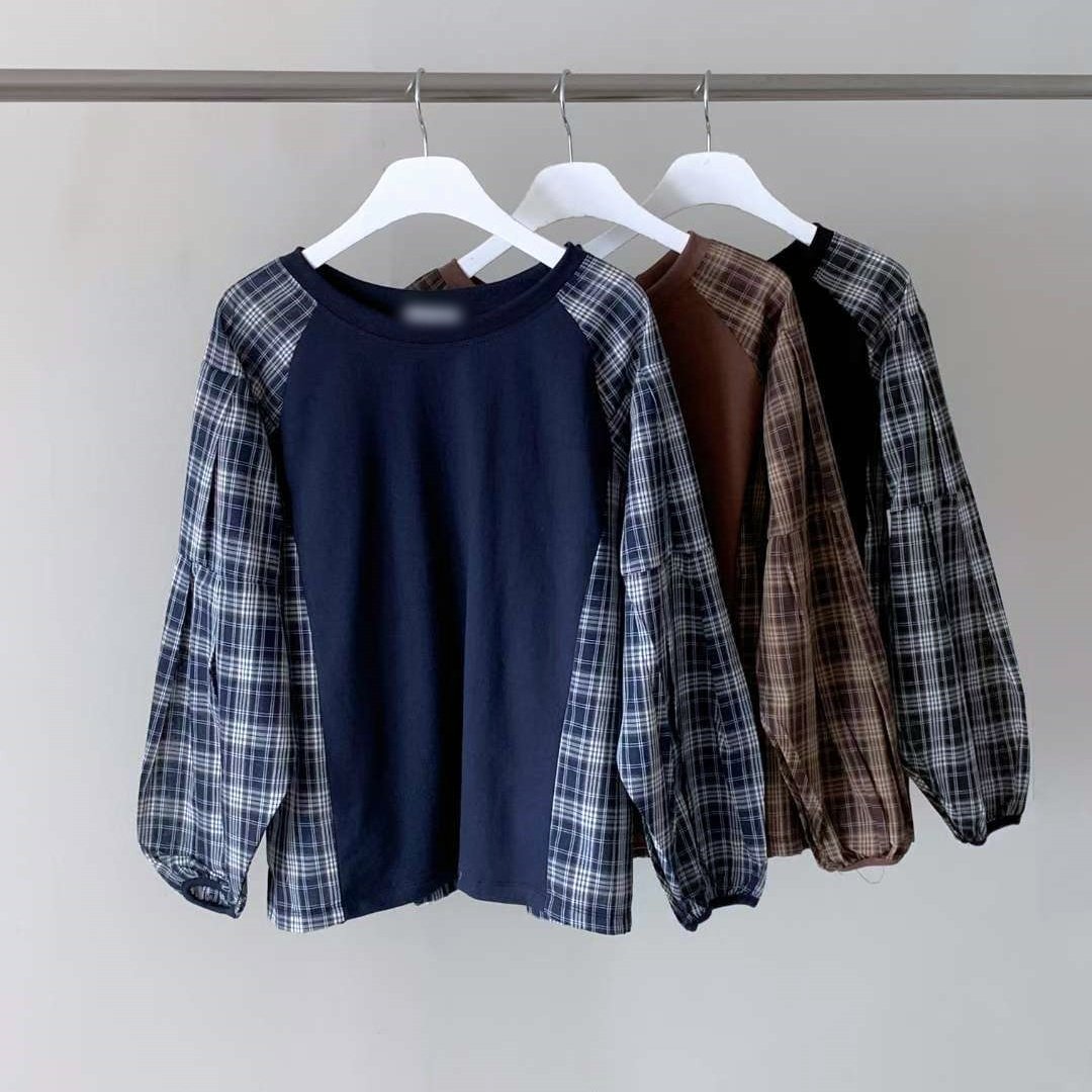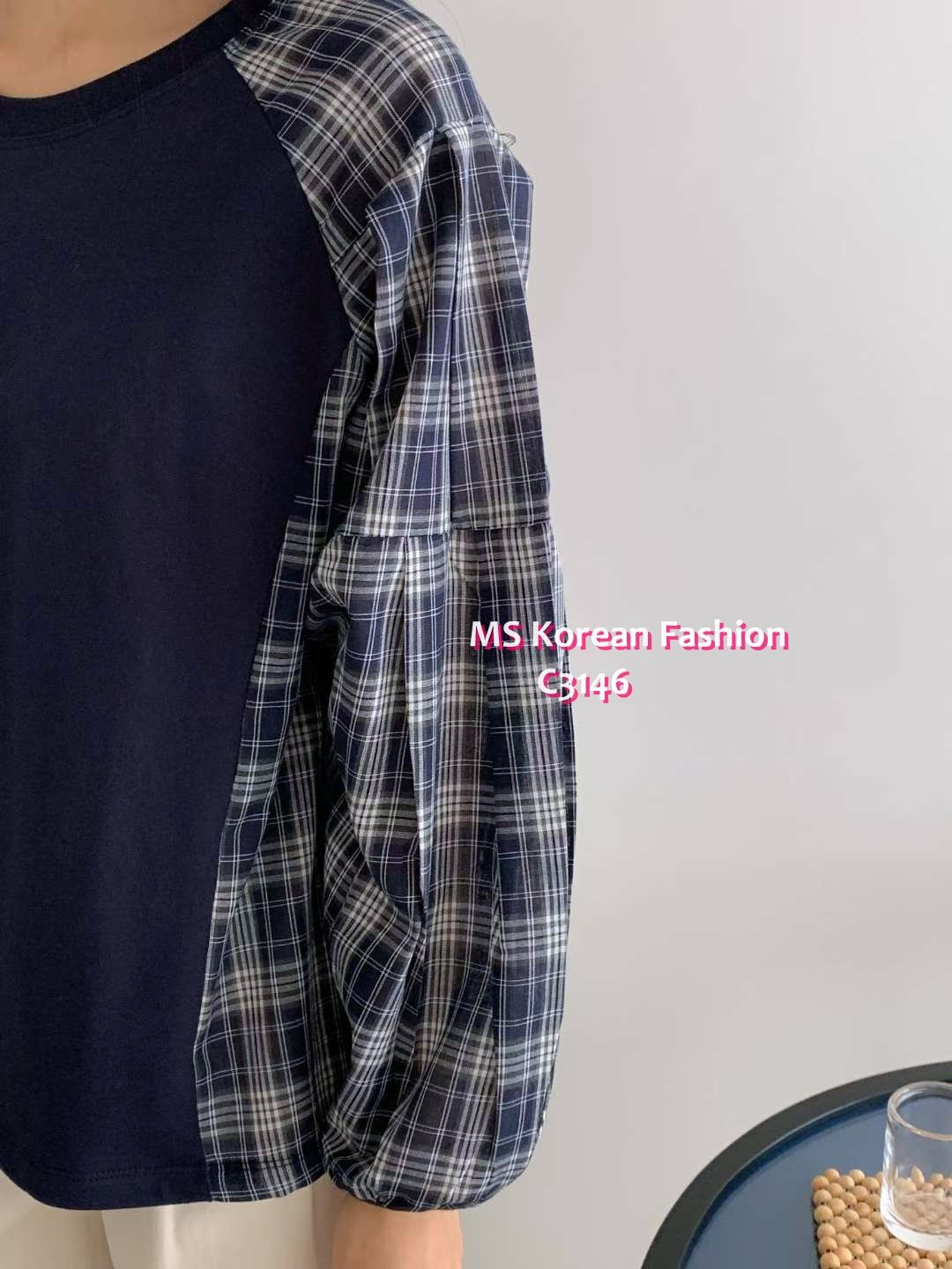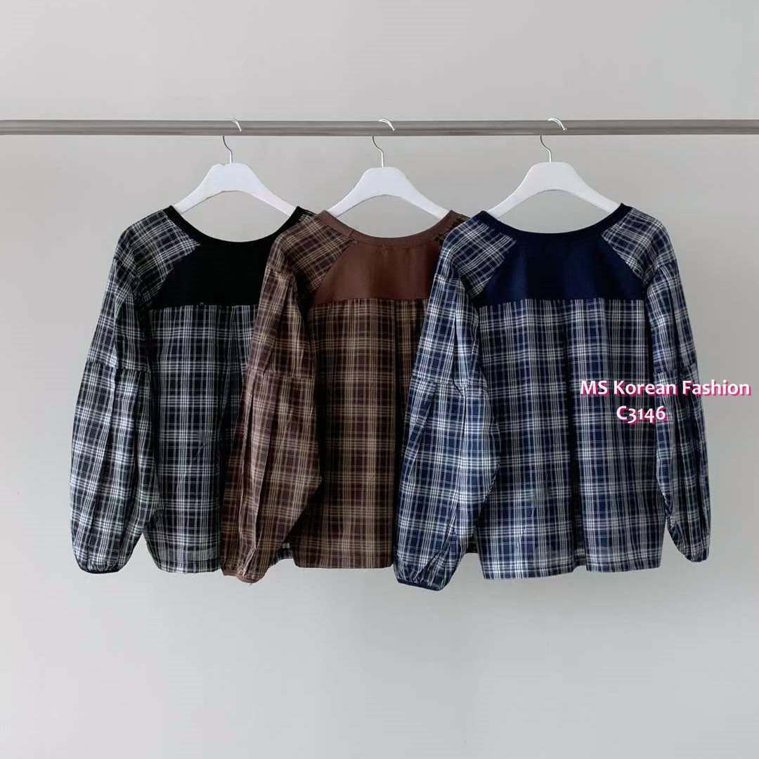 [訂貨約7-10個工作天] 💰💞Happy Price: $239 靚靚拼格仔top💢 兩邊袖同背面做左大幅格仔pattern 鬆鬆地易carry 3️⃣個colour大家又會點揀呢❗❓ 寶藍、啡、黑 3色 尺寸 胸46"/長23" 📫1件加$15包順豐站/自助櫃,2件包順豐(順豐站/自助櫃/工商/住宅) 📱查詢及Order可Inbox或Whatsapp 6317 3061