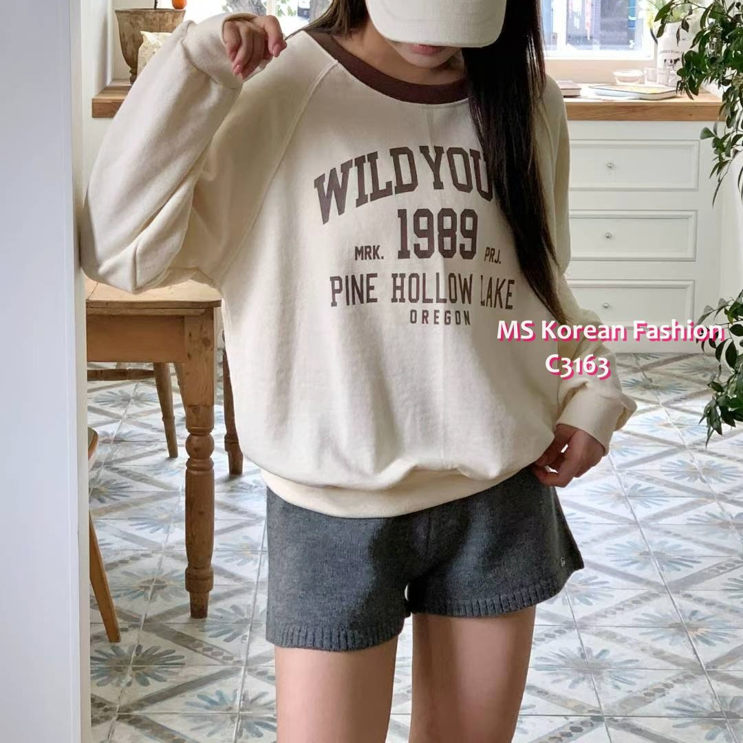 C3163 韓國🇰🇷拼色領字母衛衣