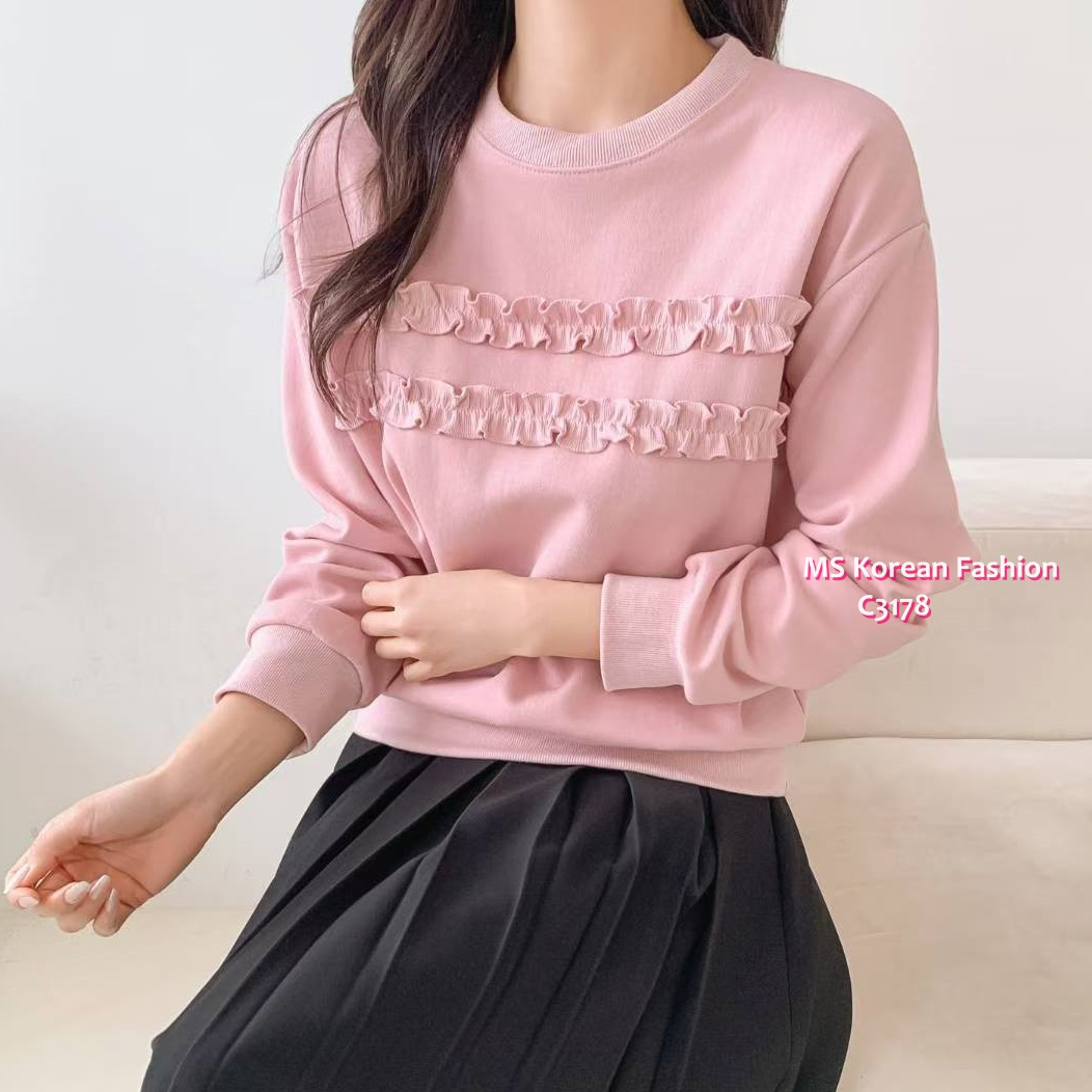 C3178 韓國🇰🇷淨色兩行ruffle top