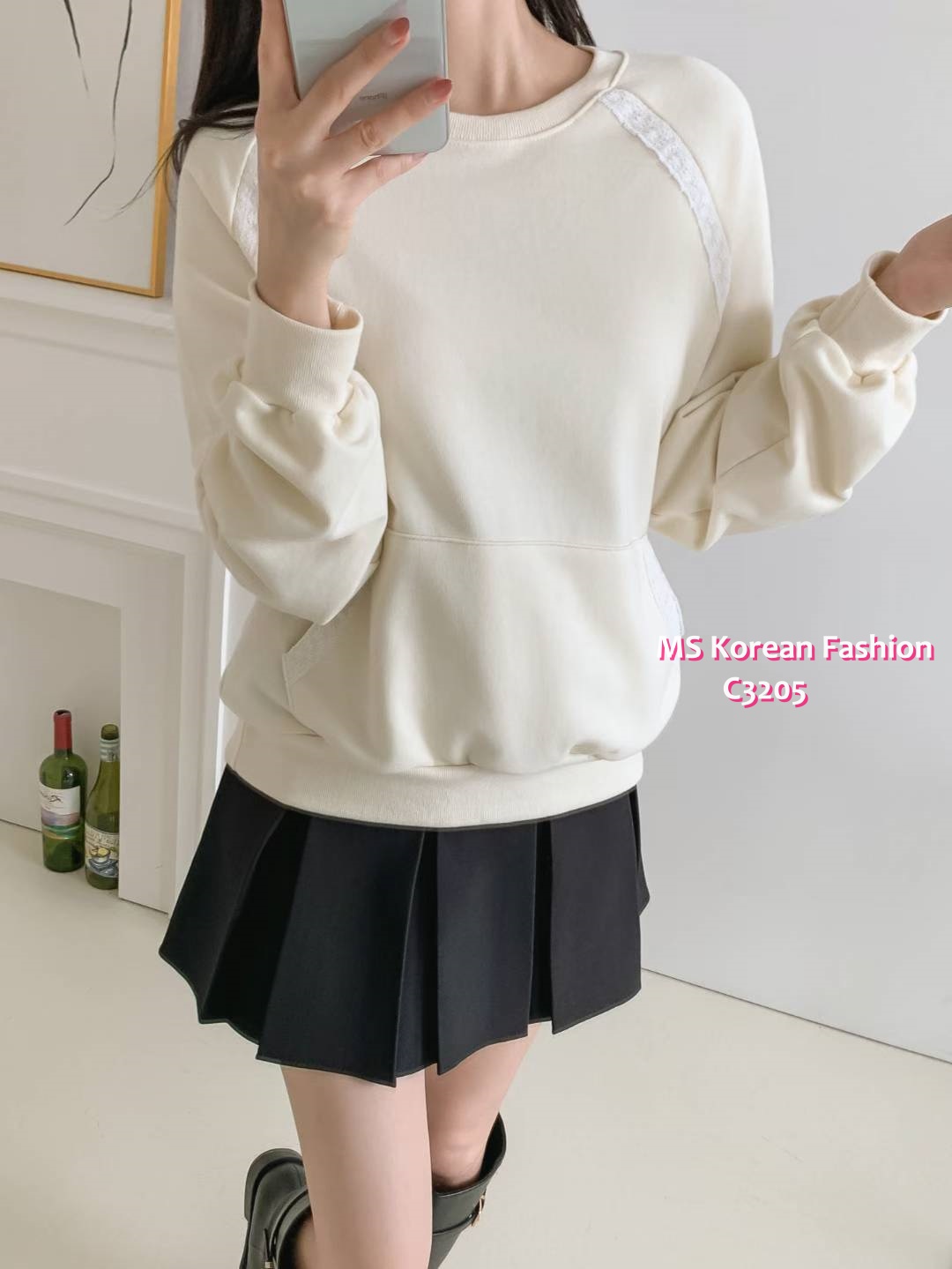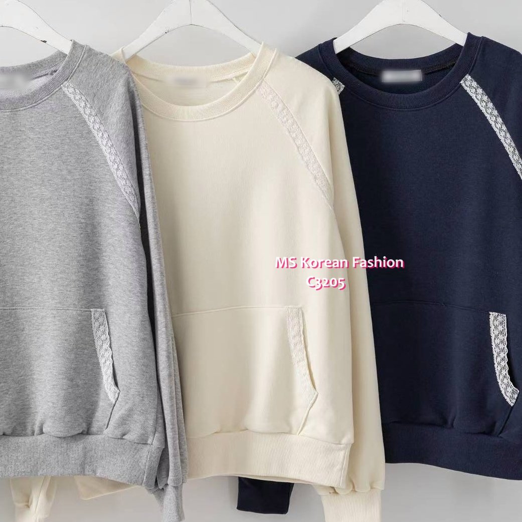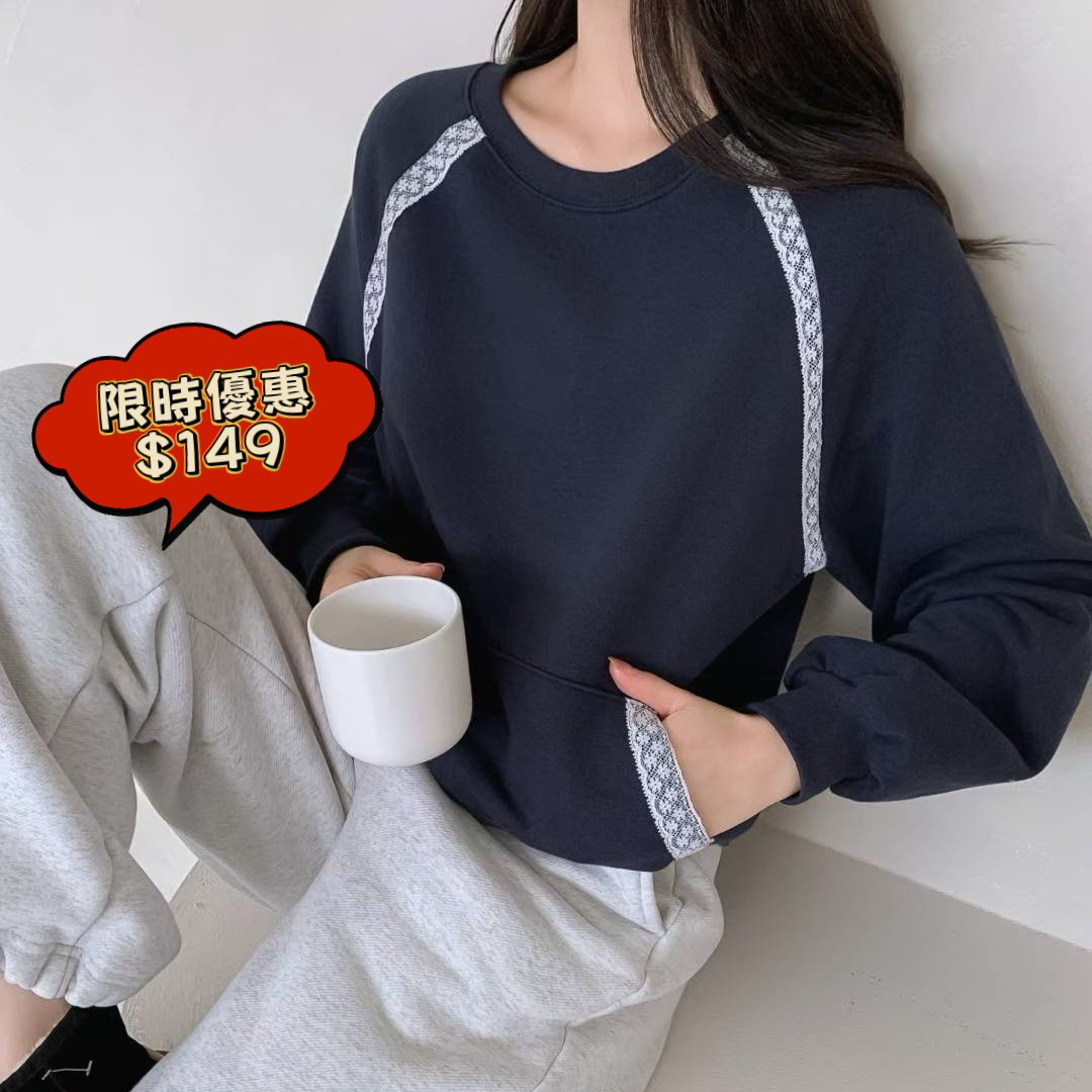 [訂貨約7-10個工作天] 💰💨快閃𝟰𝟴小時優惠: $𝟭𝟰𝟵💨[原價$179] ⏰優惠𝟮𝟯/𝟭𝟬 𝟮𝗽𝗺結束 ⏰ 秋天最啱著衛衣🍂 呢款拼lace設計 casual得黎又帶點女人味🌺 兩邊仲要有插袋位勁方便💯 趁限時優惠咁抵買啱就快手啦💃 遲D就會出絨毛底款架啦 灰、米、寶藍 3色 尺寸 胸46"/長24" 📫1件加$15包順豐站/自助櫃,2件包順豐 📱查詢及Order可Inbox或Whatsapp 6317 3061