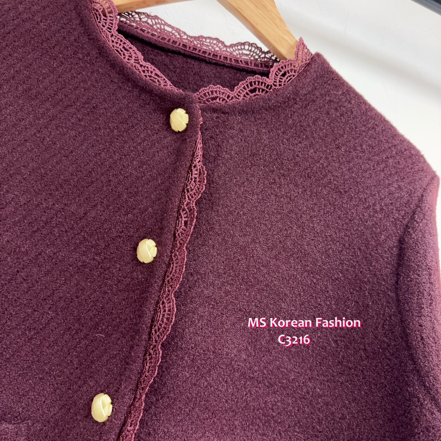 C3216 韓國🇰🇷拼lace邊特色鈕外套