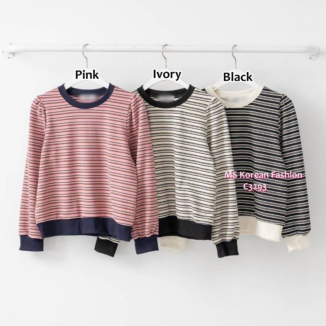 [訂貨約7-10個工作天] 💰💨快閃𝟰𝟴小時優惠: $𝟭𝟰𝟵💨[原價$179] ⏰優惠𝟵/𝟭𝟭 𝟮𝗽𝗺結束 ⏰ 靚色橫間top🌈 領口, 袖口同衫腳拼色邊設計 colour巧令令😻 粉、米白、黑 3色 尺寸 胸40"/長21.5" 📫1件加$15包順豐站/自助櫃,2件包順豐(順豐站/自助櫃/工商/住宅) 📱查詢及Order可Inbox或Whatsapp 6317 3061