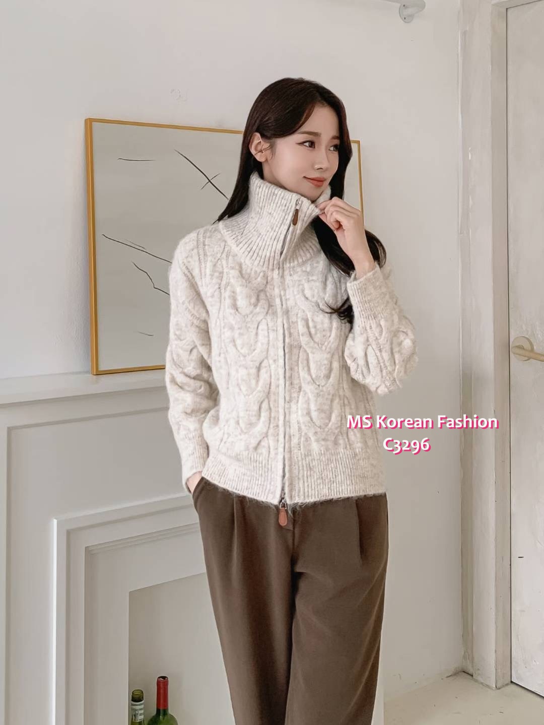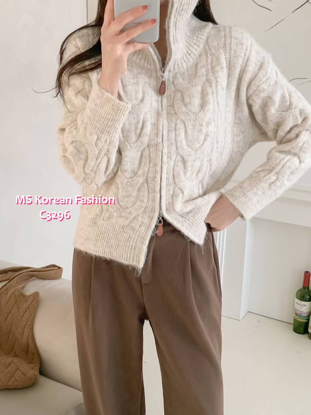 C3296 韓國🇰🇷淨色織紋冷外套
