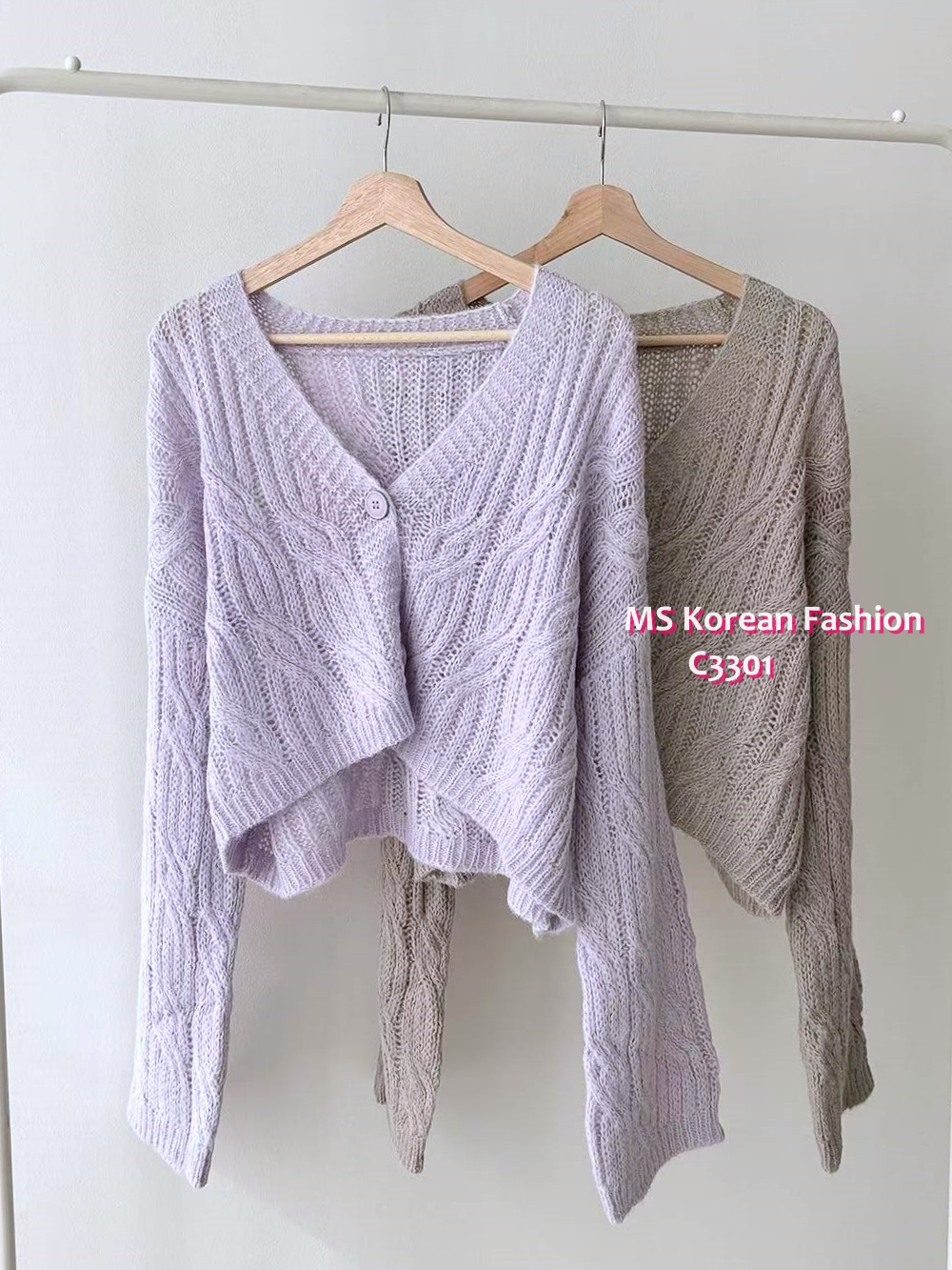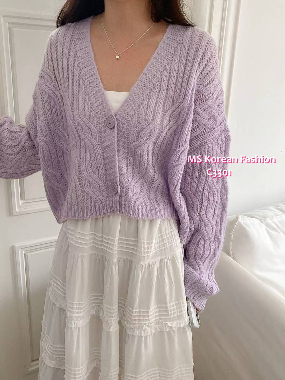[訂貨約7-10個工作天] 💰💥激旬價: $179💥 [原價$199] 特色紋針織外套✨ colour巧令令 鬆身款著上好stylish😎 襯裙襯褲都好睇👍 紫、杏 2色 尺寸 胸58"/長19.5" 📫1件加$15包順豐站/自助櫃,2件包順豐(順豐站/自助櫃/工商/住宅) 📱查詢及Order可Inbox或Whatsapp 6317 3061
