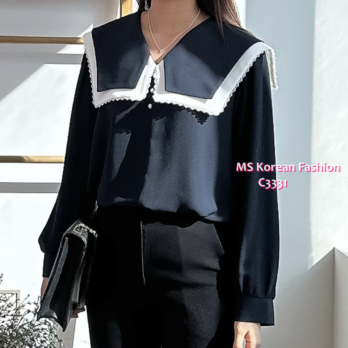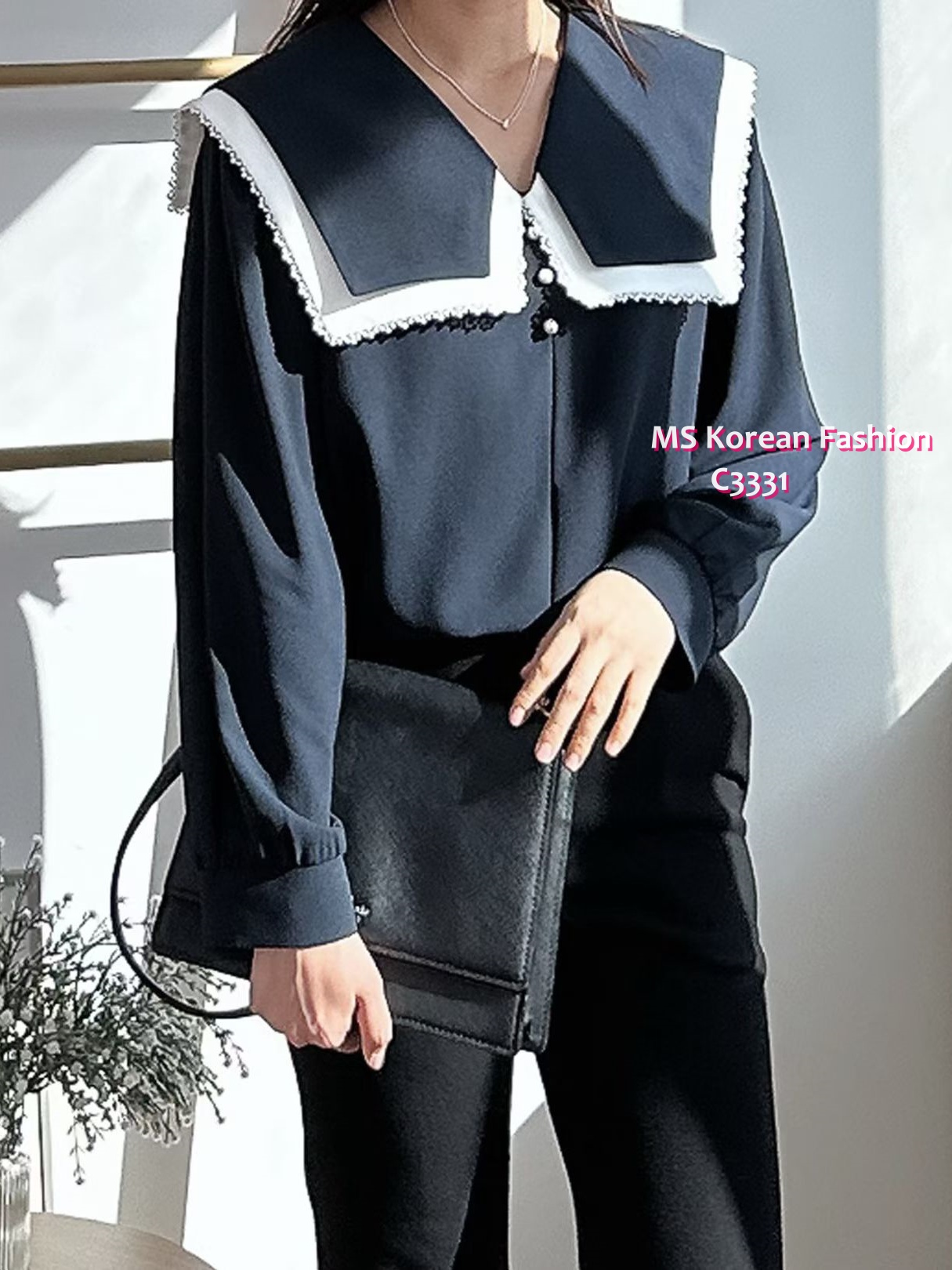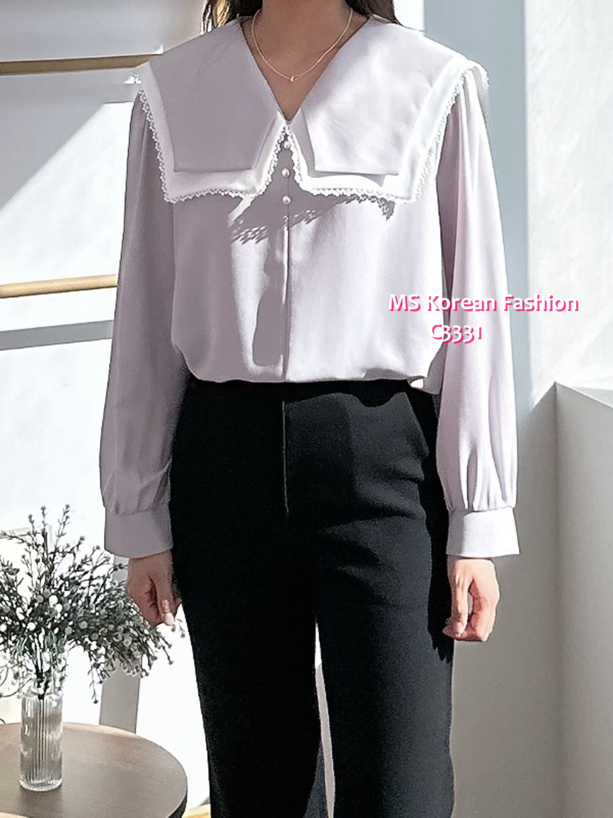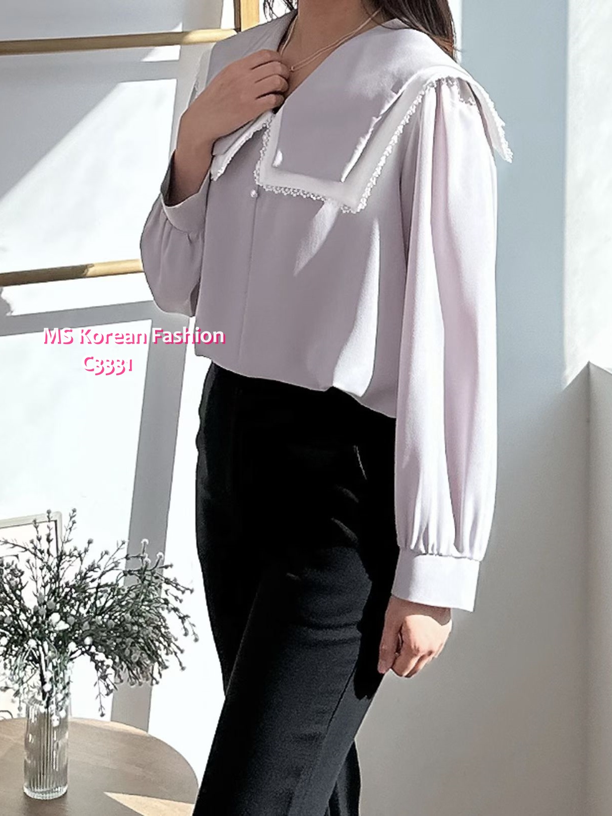 C3331 韓國🇰🇷靚料特色花邊領top