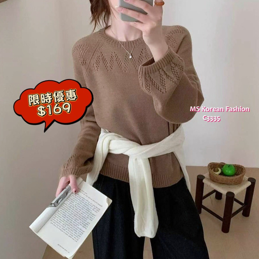 [訂貨約7-10個工作天] 💰💨快閃𝟰𝟴小時優惠: $𝟭𝟲𝟵💨[原價$199] ⏰優惠𝟭𝟰/𝟭𝟭 𝟮𝗽𝗺結束 ⏰ 簡單款一向受歡迎 淨色圓領針織top 領位同袖口都加左勾花W紋點綴🌷 單著或襯外套都一流 杏啡、寶藍 2色 尺寸 胸44"/長24.5" 📫1件加$15包順豐站/自助櫃,2件包順豐(順豐站/自助櫃/工商/住宅) 📱查詢及Order可Inbox或Whatsapp 6317 3061