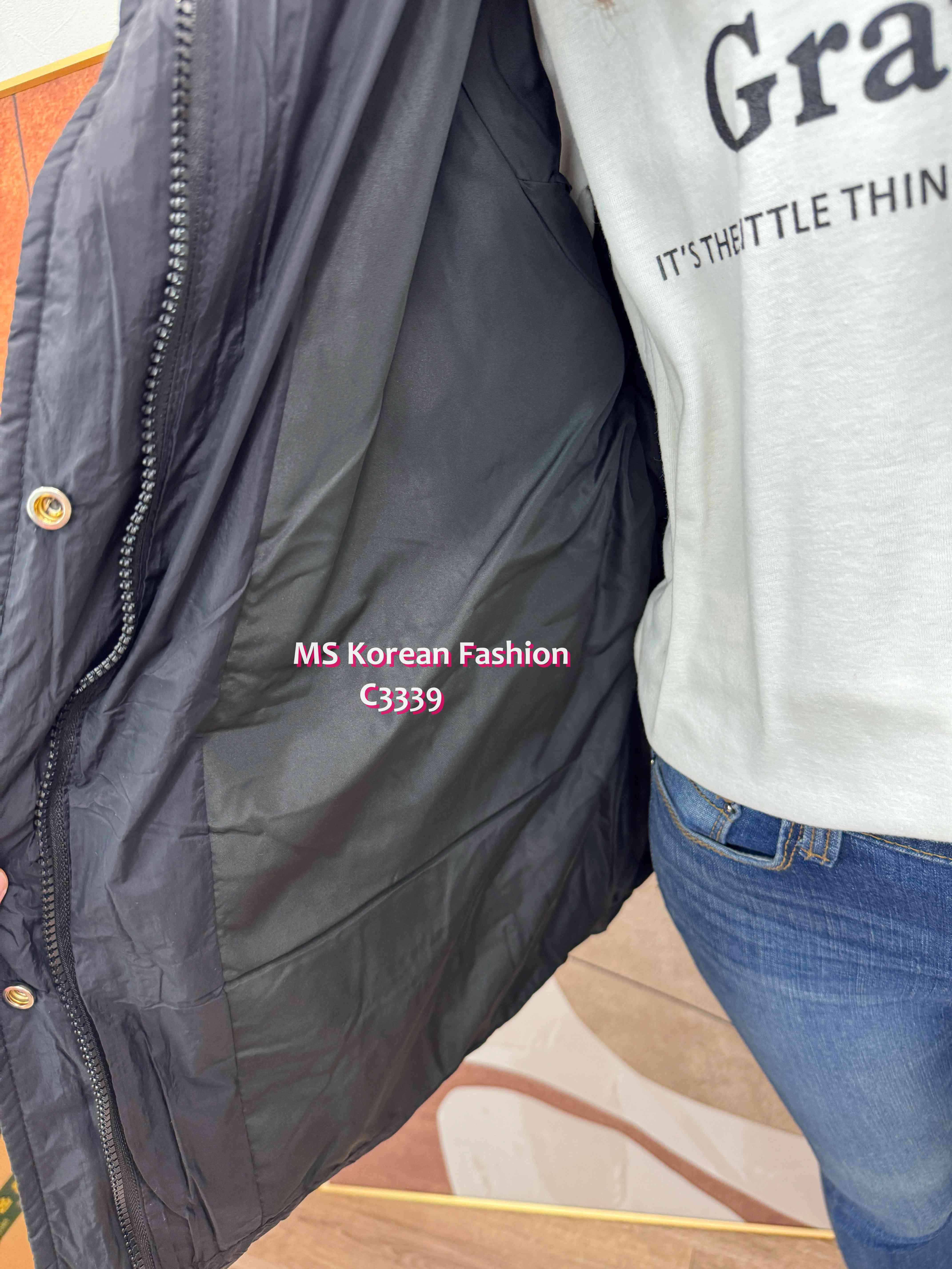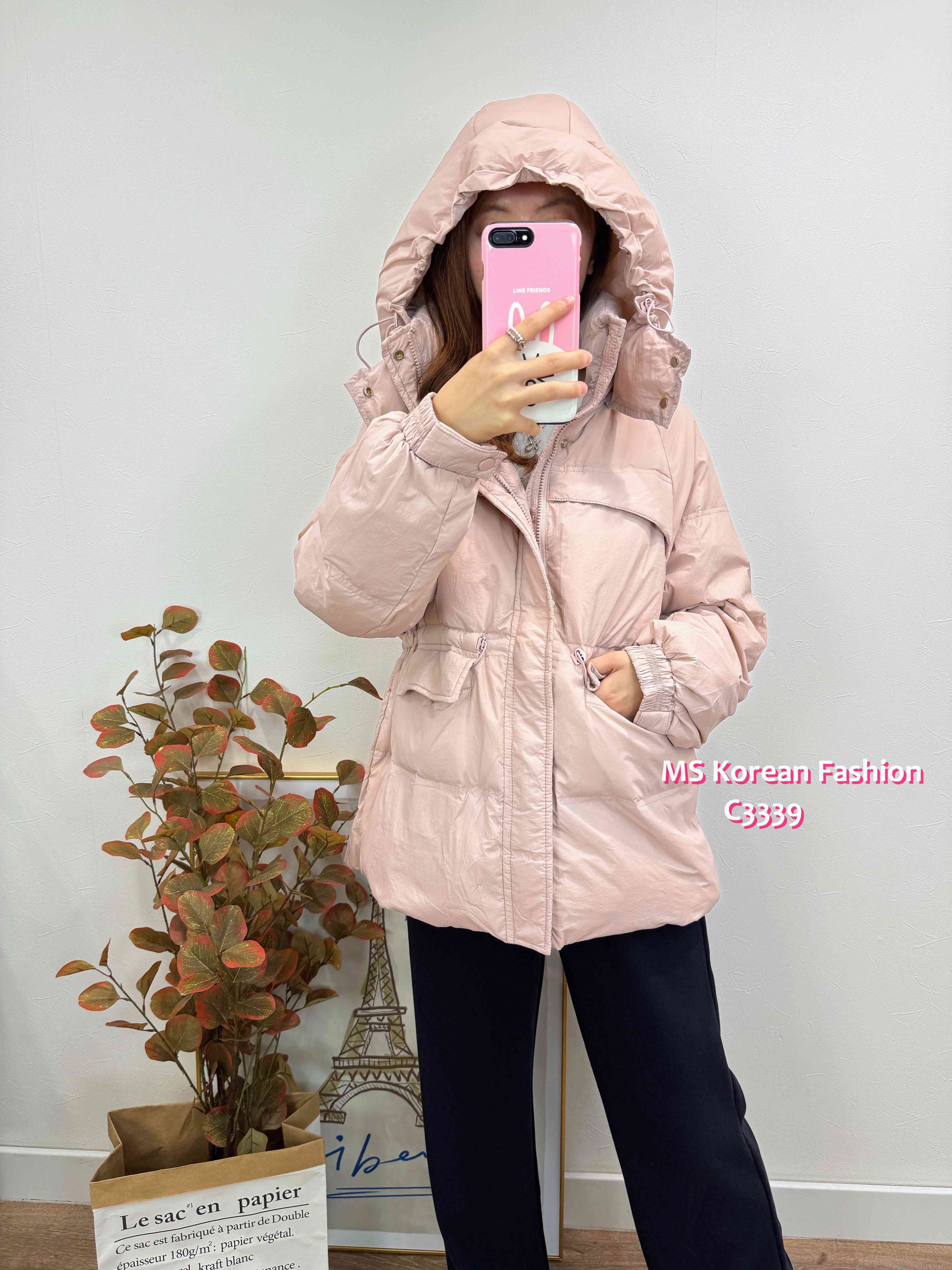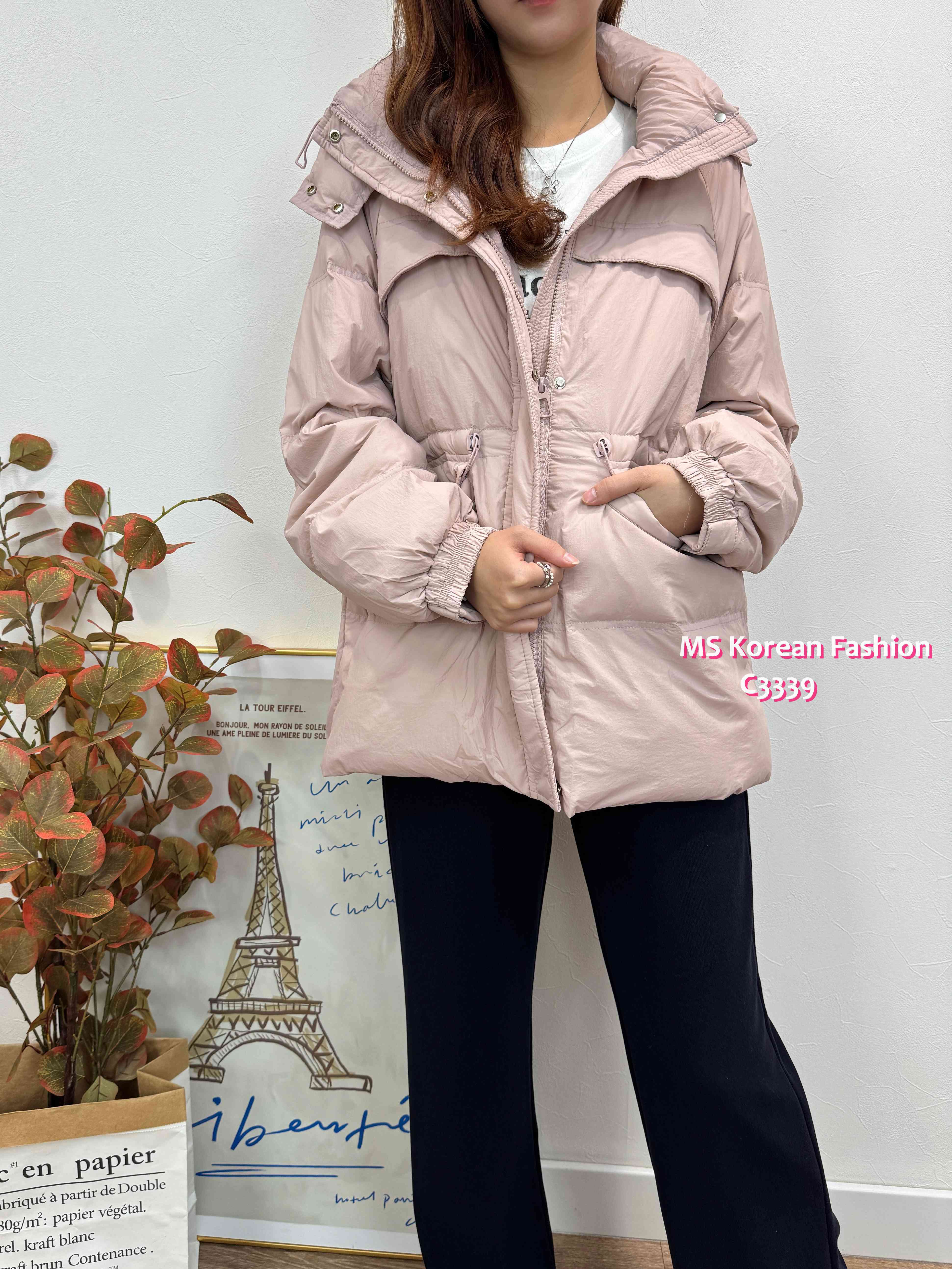 C3339 韓國🇰🇷中長款有帽羽絨