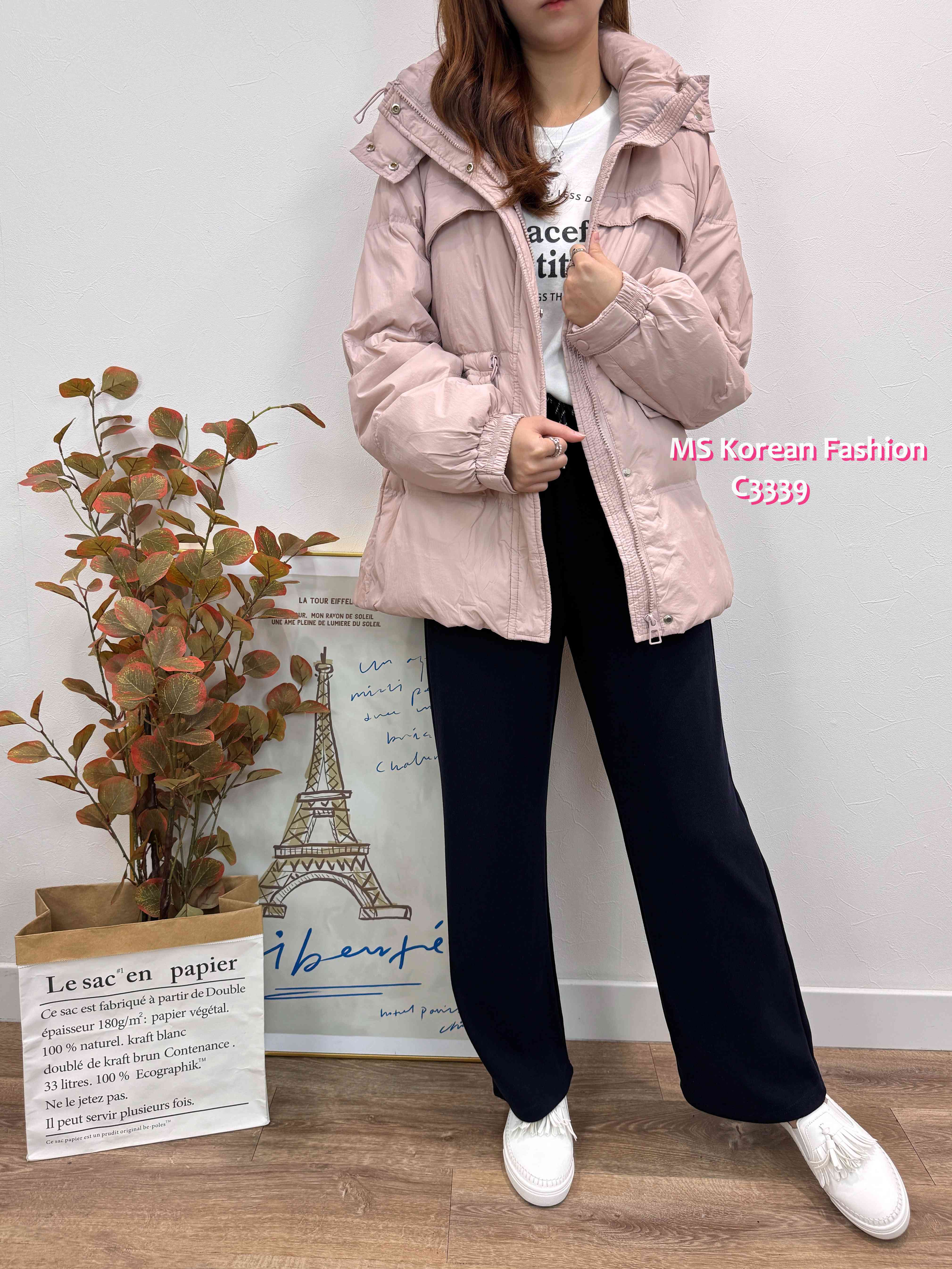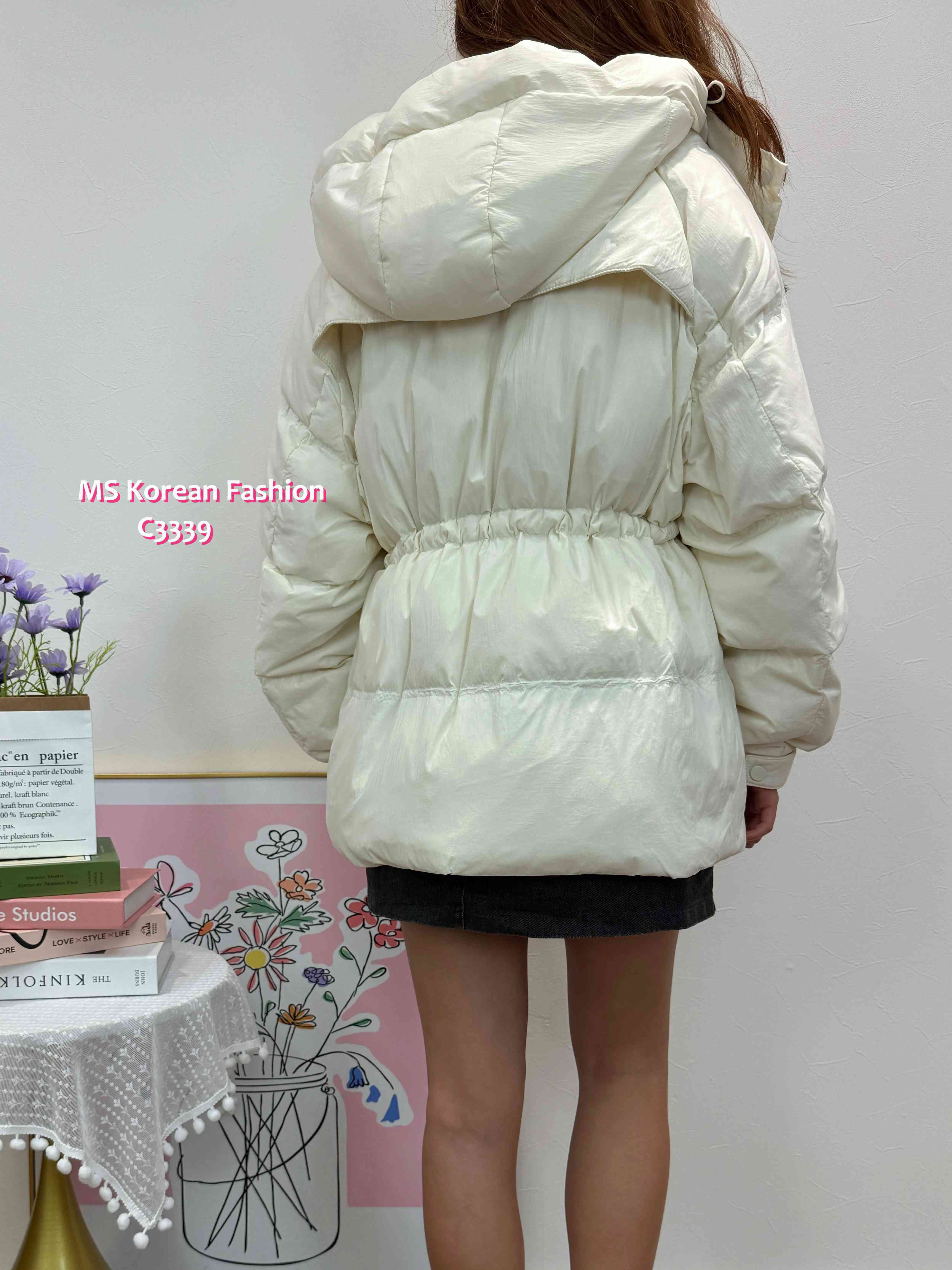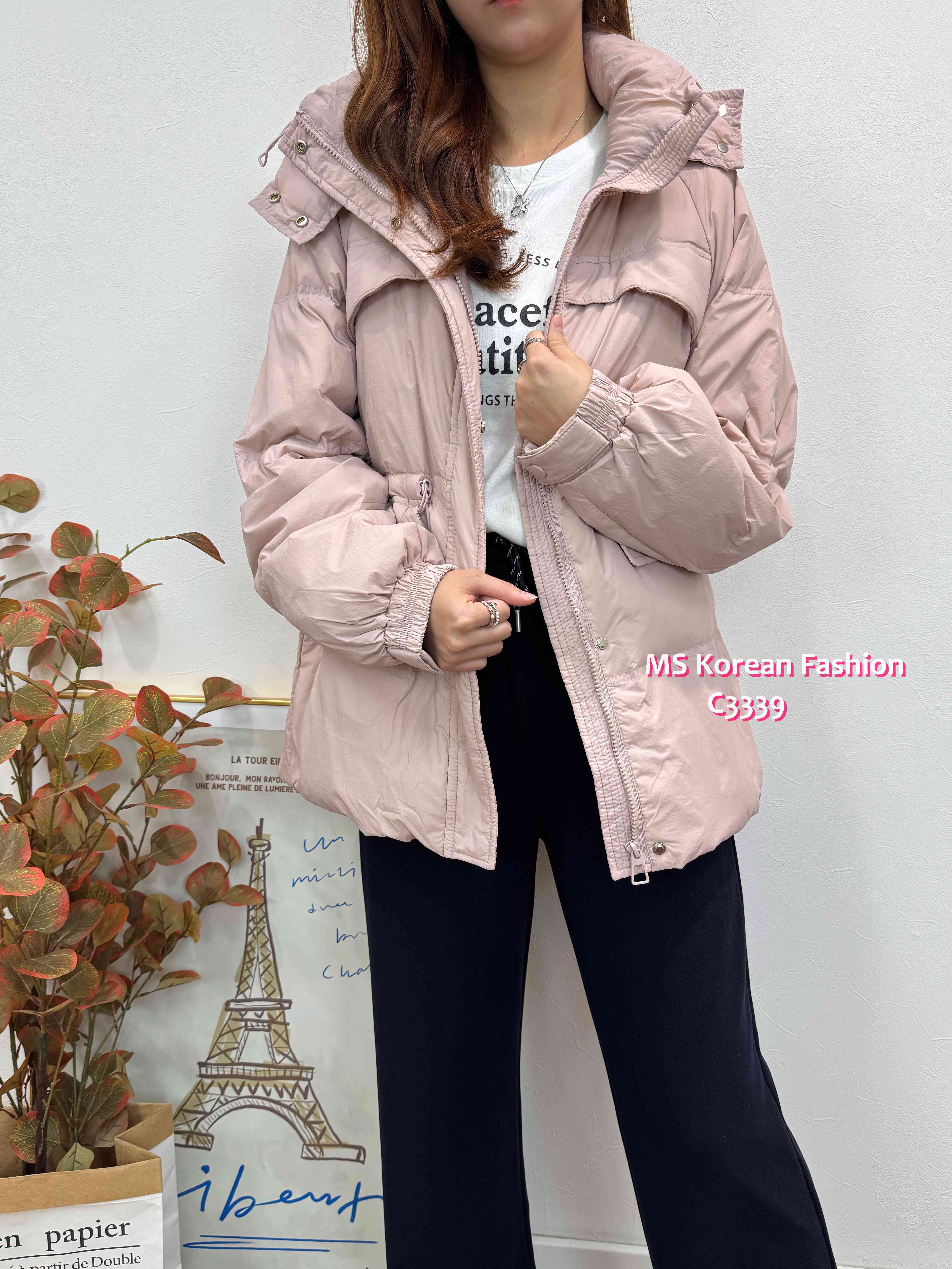 C3339 韓國🇰🇷中長款有帽羽絨