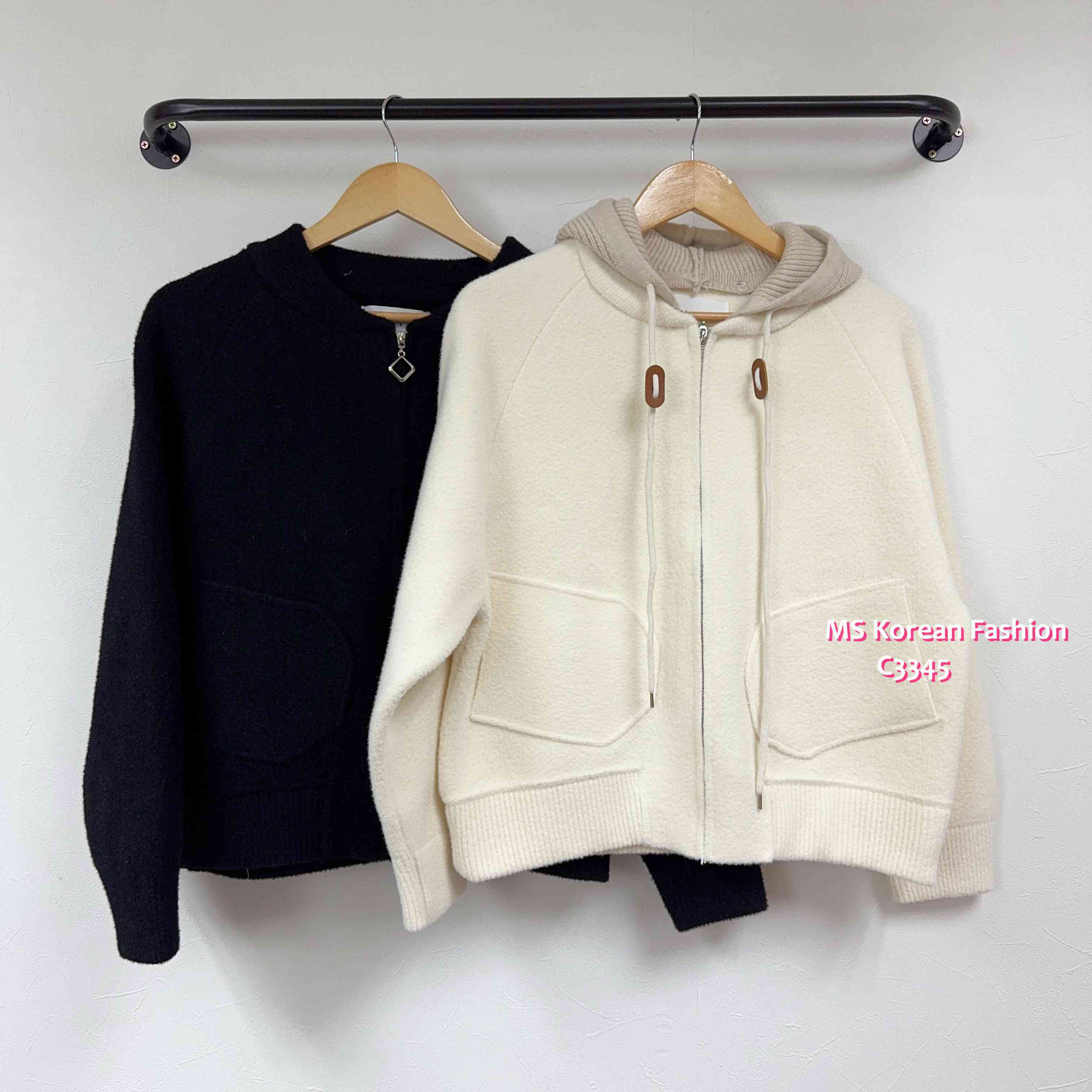 [訂貨約7-10個工作天] 💰💜$239, $229 for vip 挺身拉鏈外套 滑身絨料有D厚度✨ 兩邊有袋 跟埋頂針織帽(帽可拆) 黑白兩色都好襯👍 黑、米白 2色 尺寸 胸45"/長23" 📫1件加$15包順豐站/自助櫃,2件包順豐(順豐站/自助櫃/工商/住宅) 📱查詢及Order可Inbox或Whatsapp 6317 3061