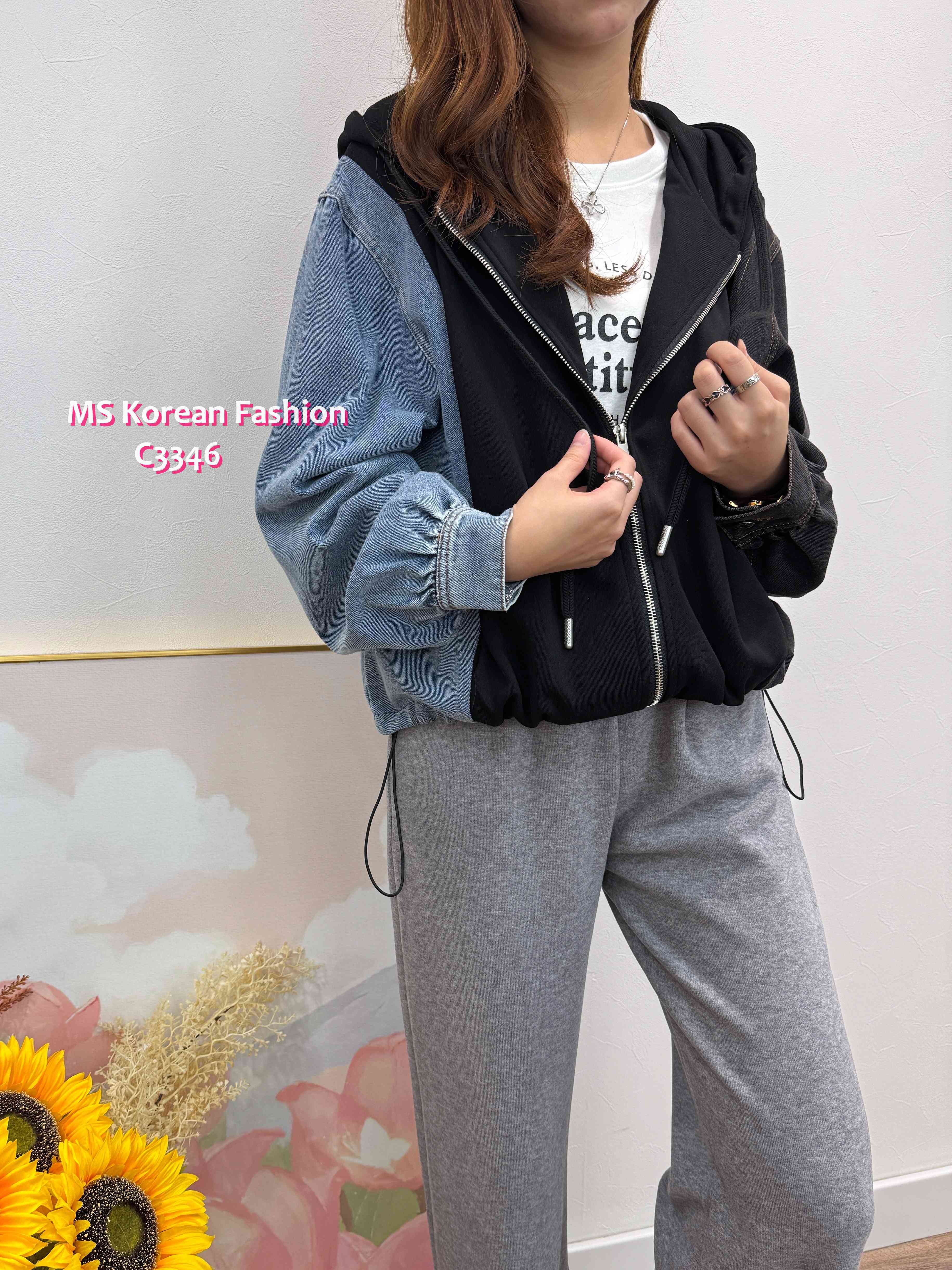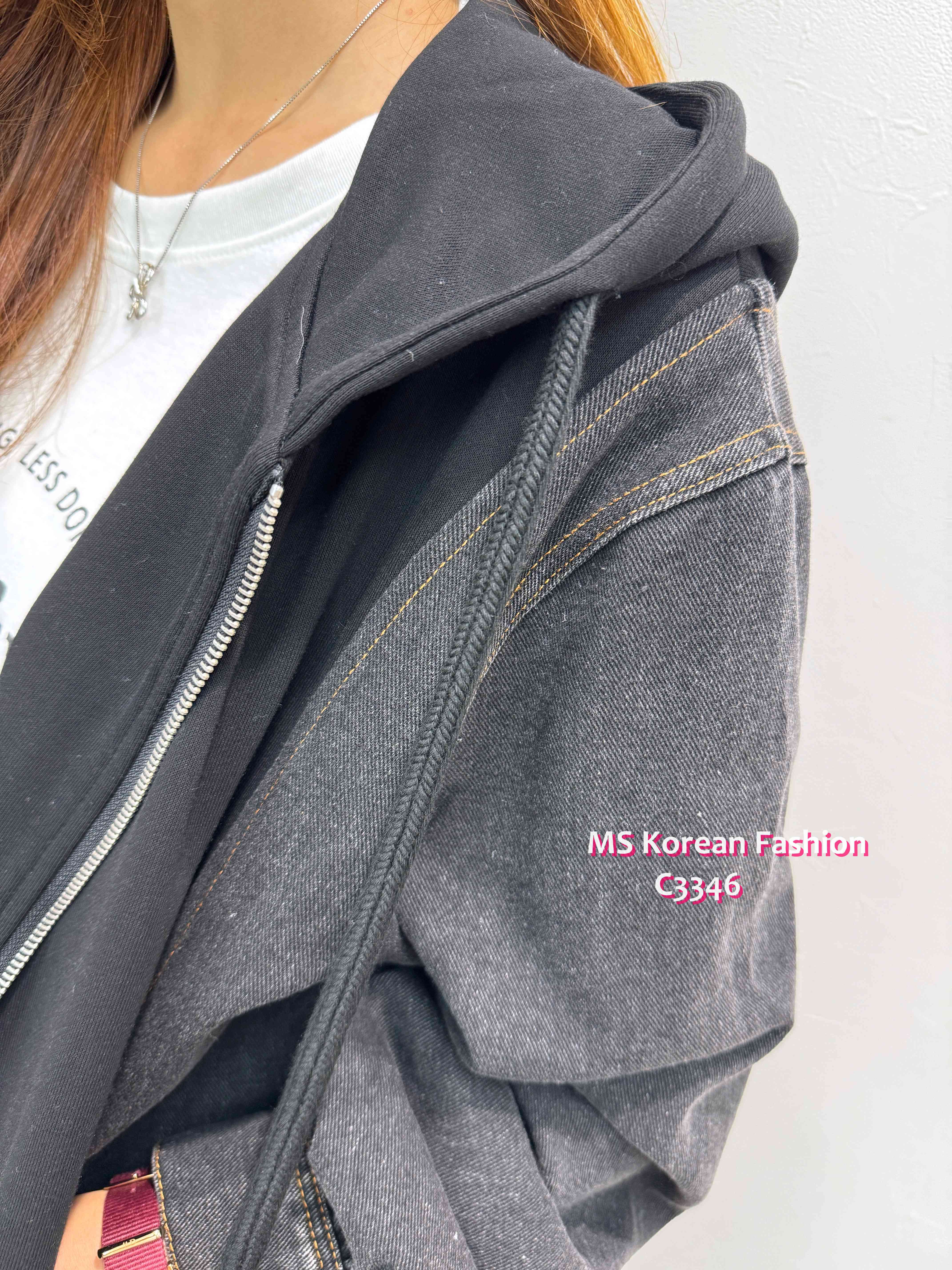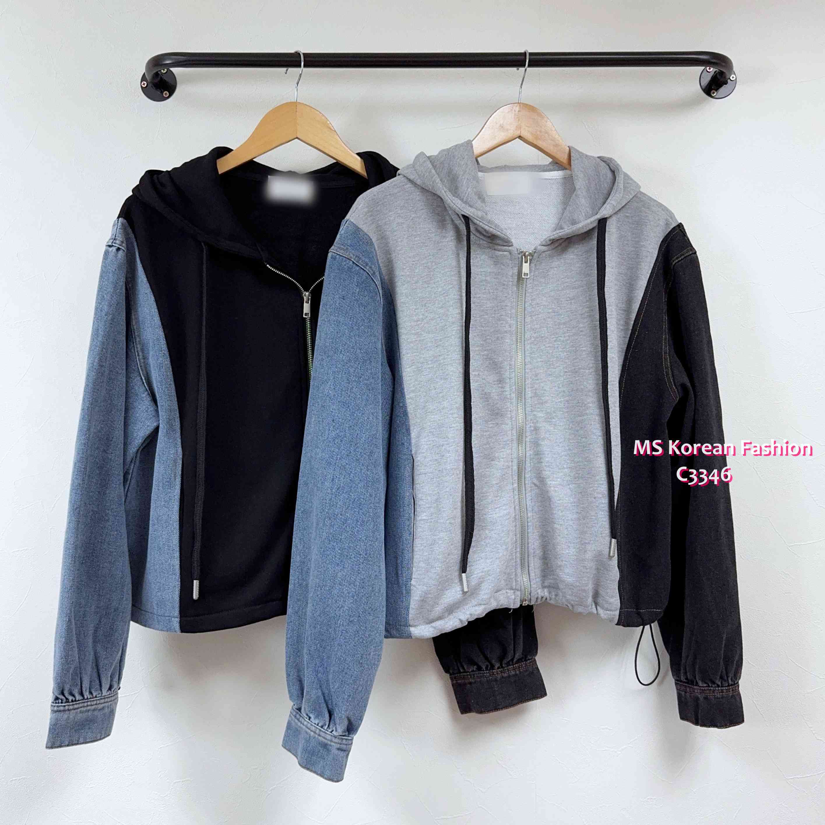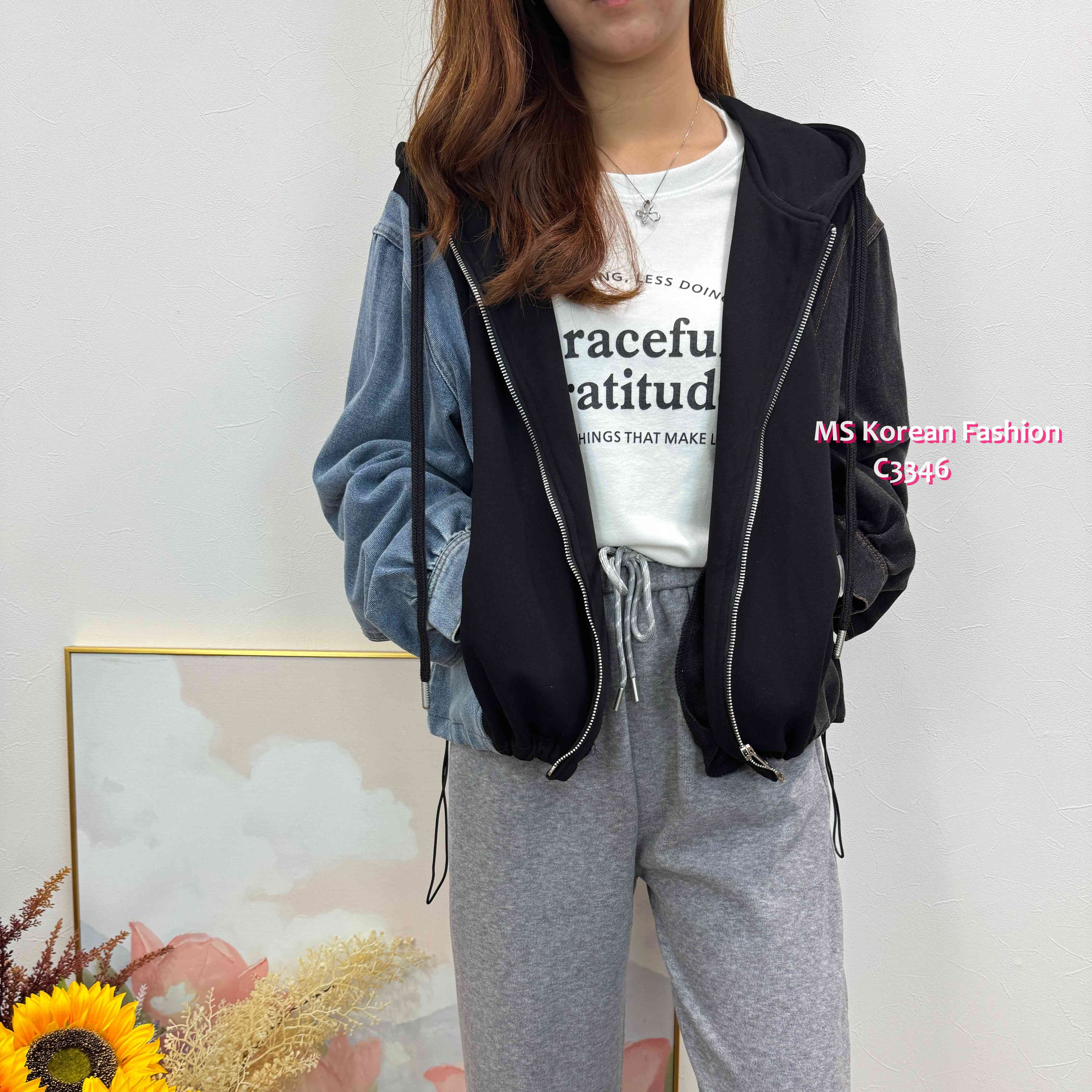 C3346 韓國🇰🇷拼牛仔有帽外套