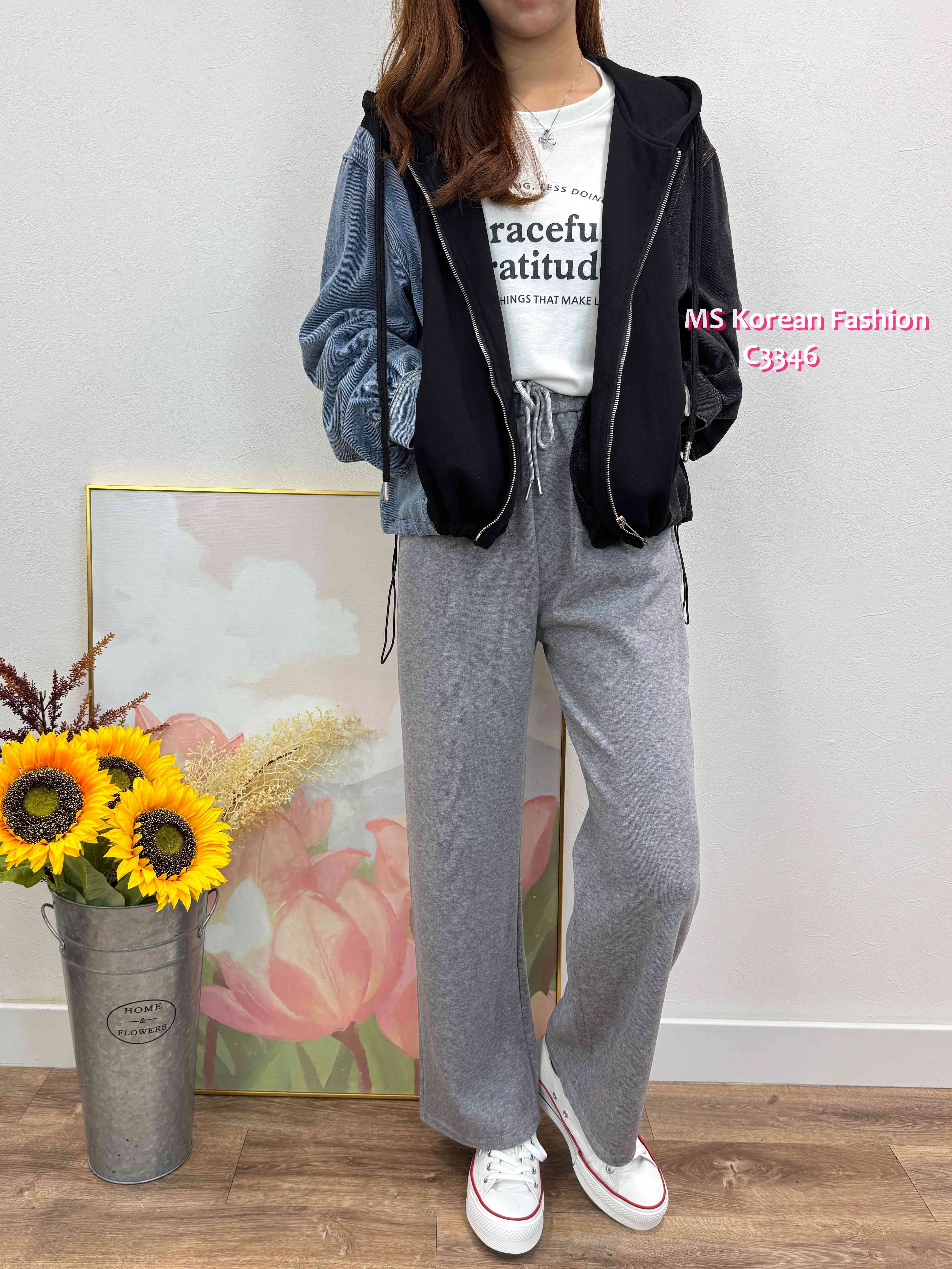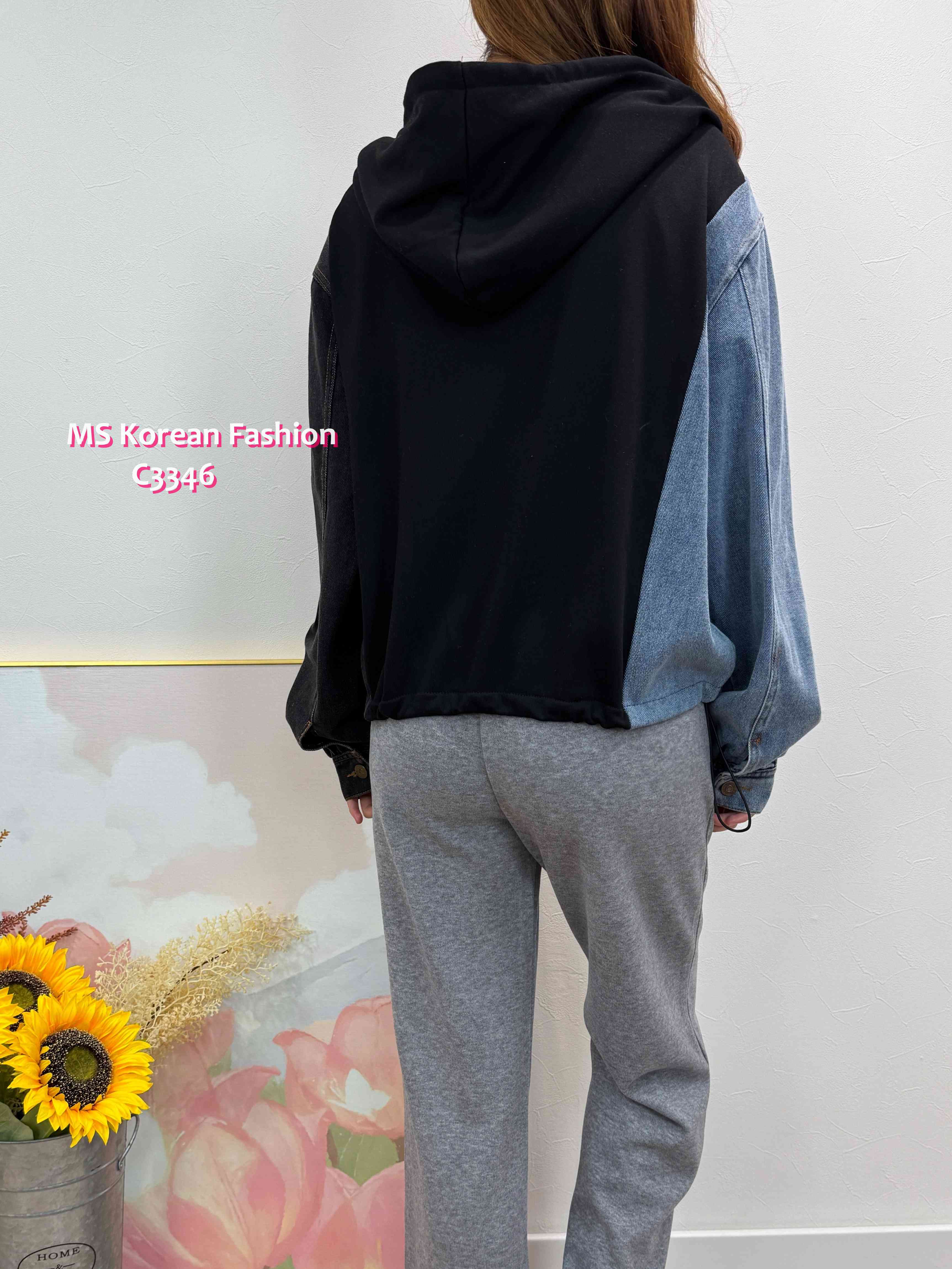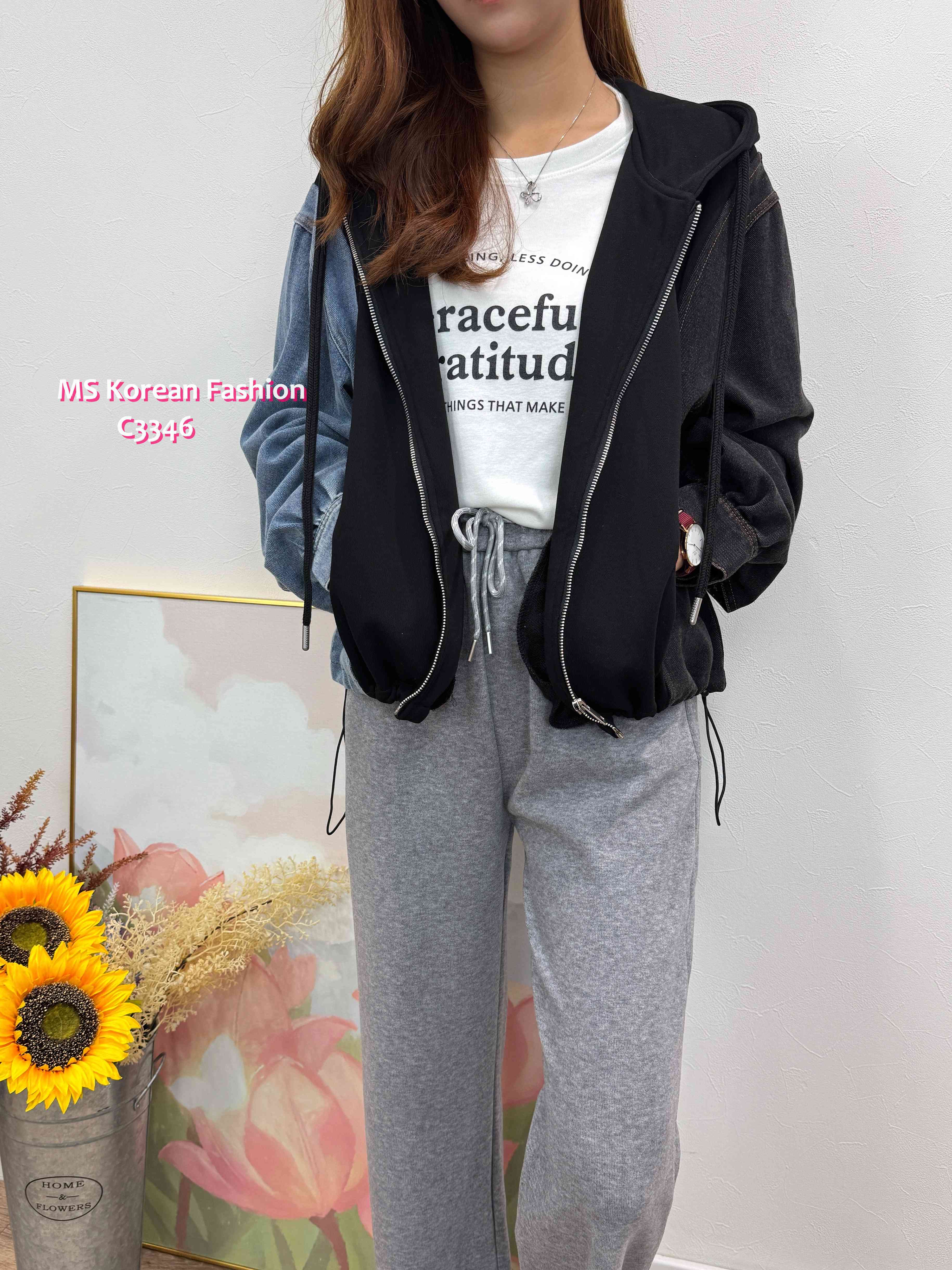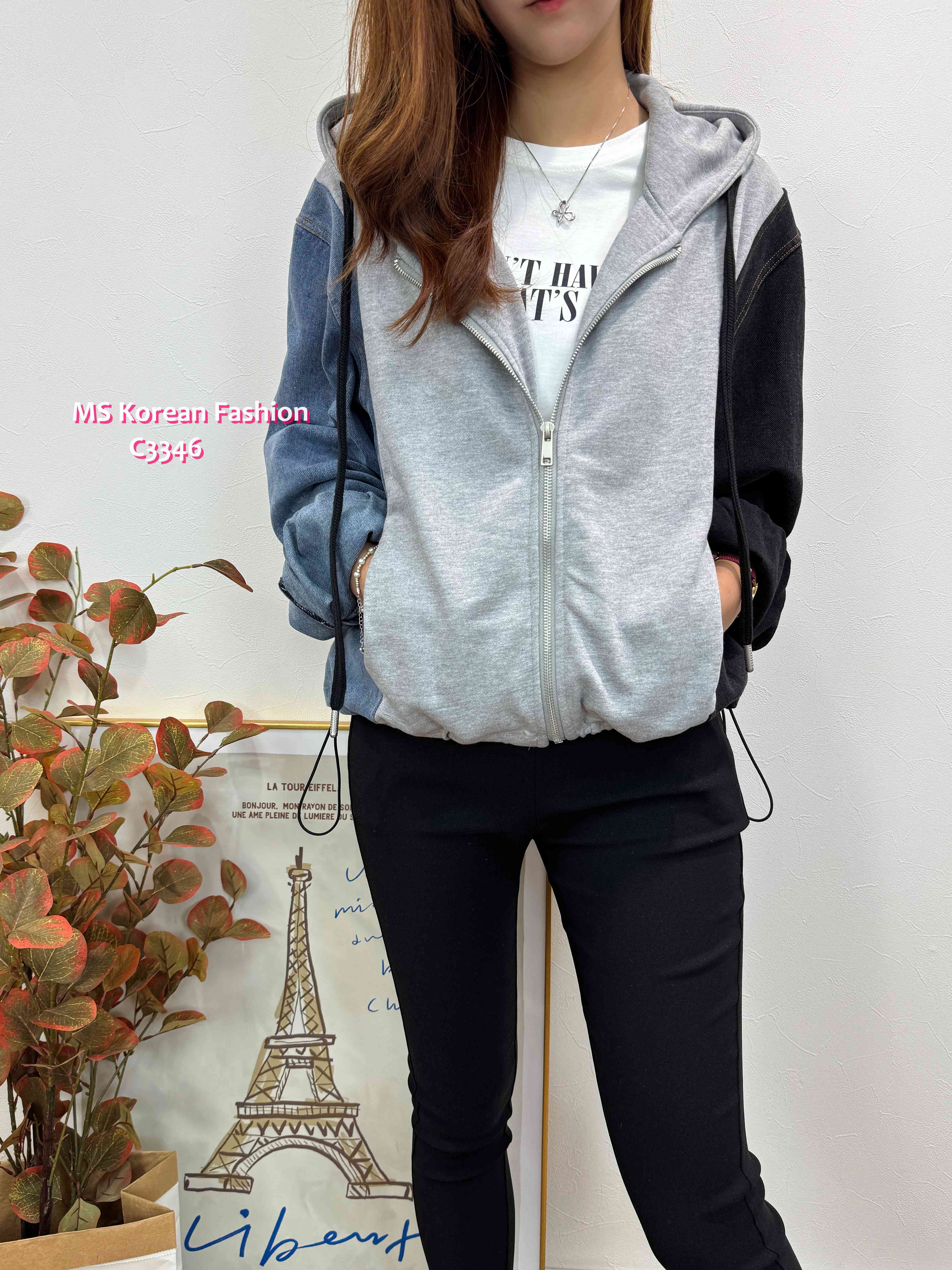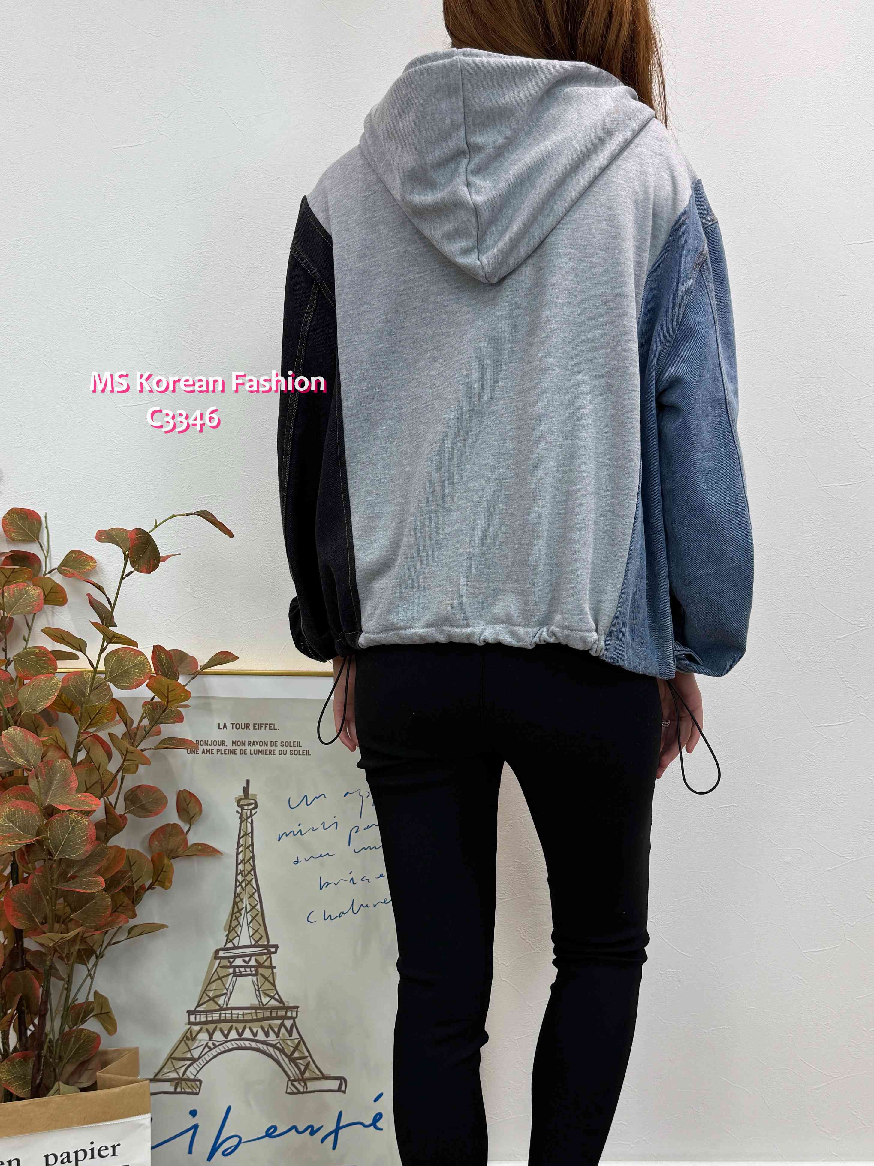 C3346 韓國🇰🇷拼牛仔有帽外套