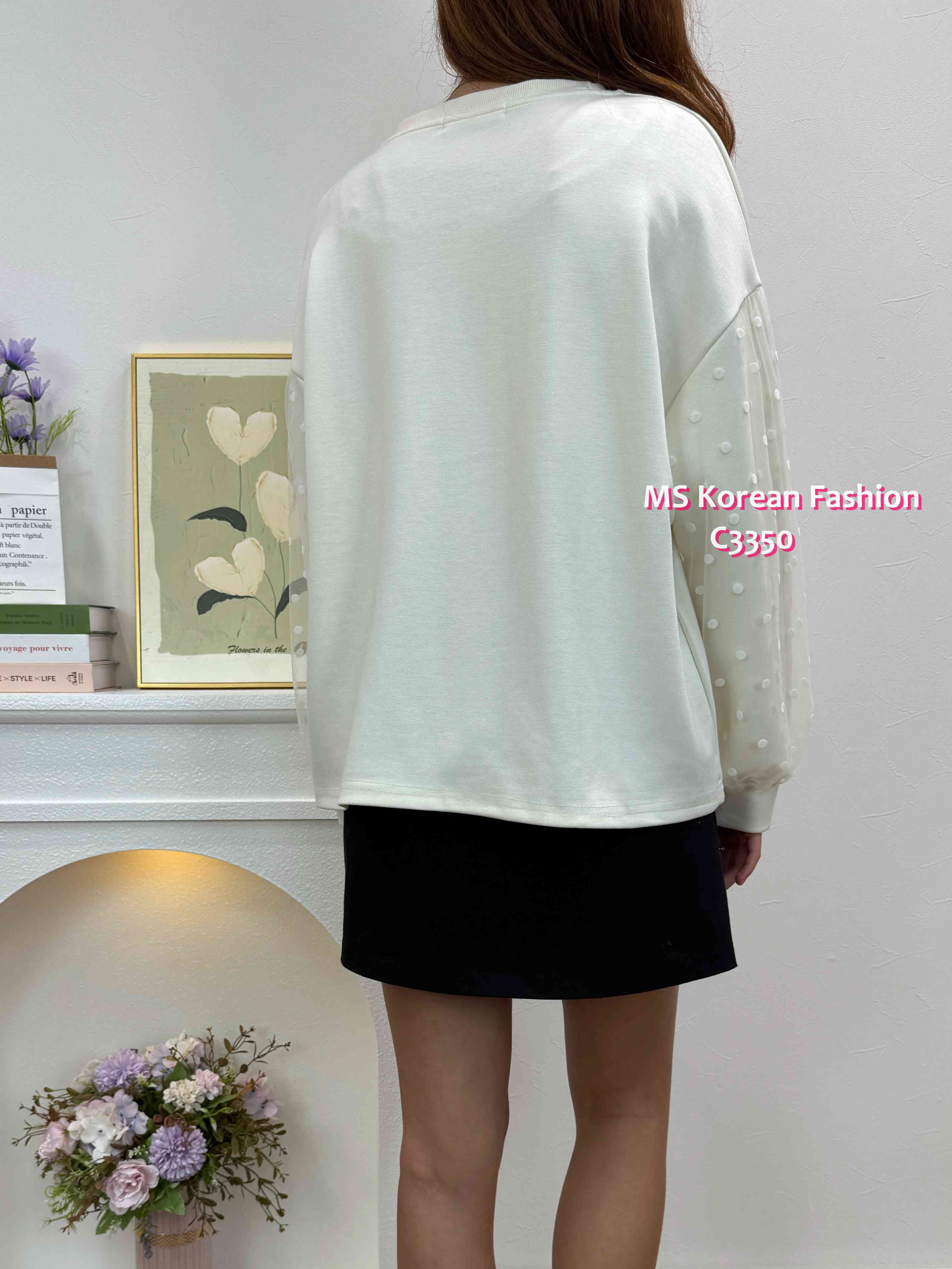 C3350 韓國🇰🇷靚print波點紗袖top