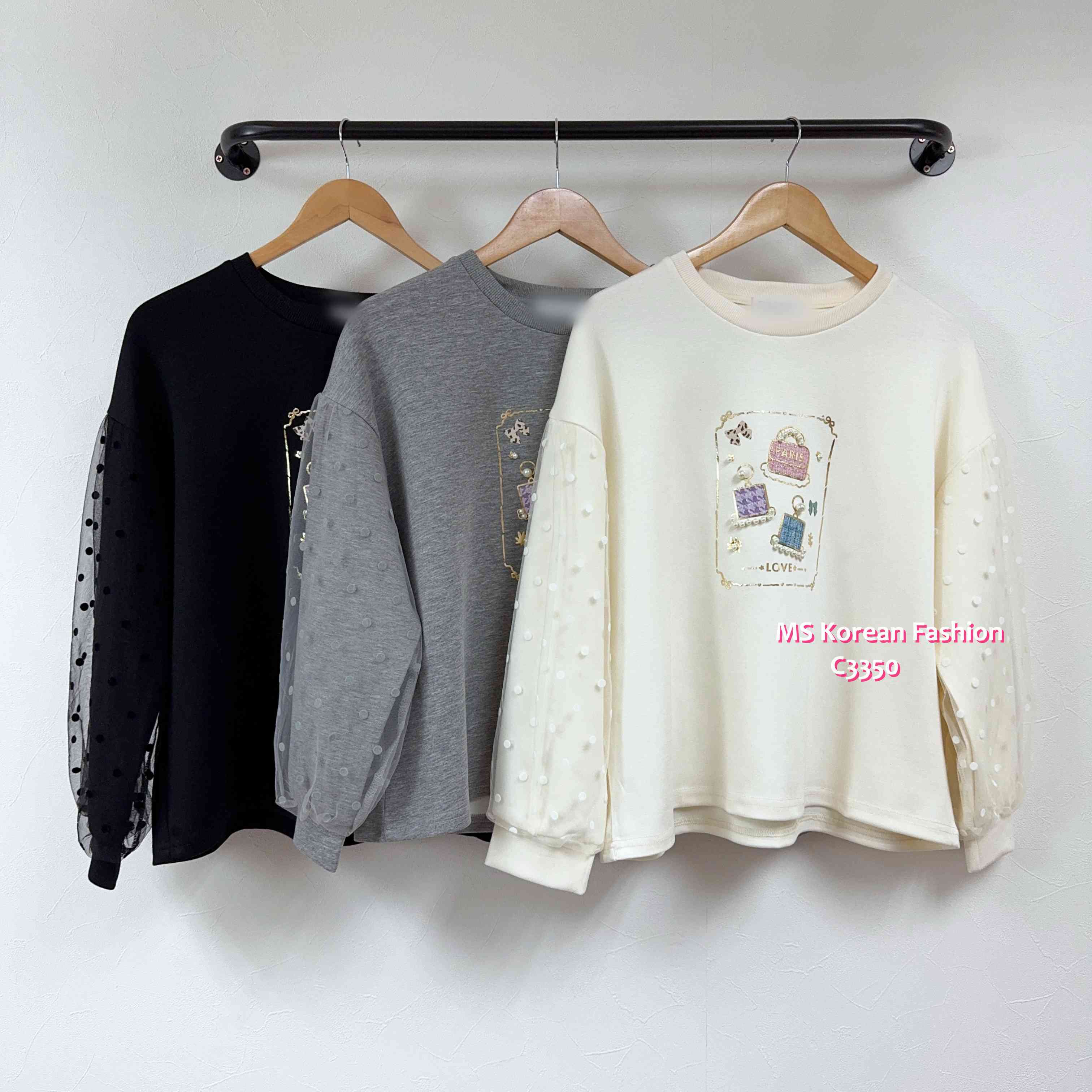 [訂貨約7-10個工作天] 💰💞Happy Price: $189 靚print top✨ 加左珠珠點綴好elegant🥰 太空棉料質地好舒服 兩邊袖外面加左層波點紗巧令令👍 黑、灰、米 3色 尺寸 胸45"/長23" 📫1件加$15包順豐站/自助櫃,2件包順豐(順豐站/自助櫃/工商/住宅) 📱查詢及Order可Inbox或Whatsapp 6317 3061