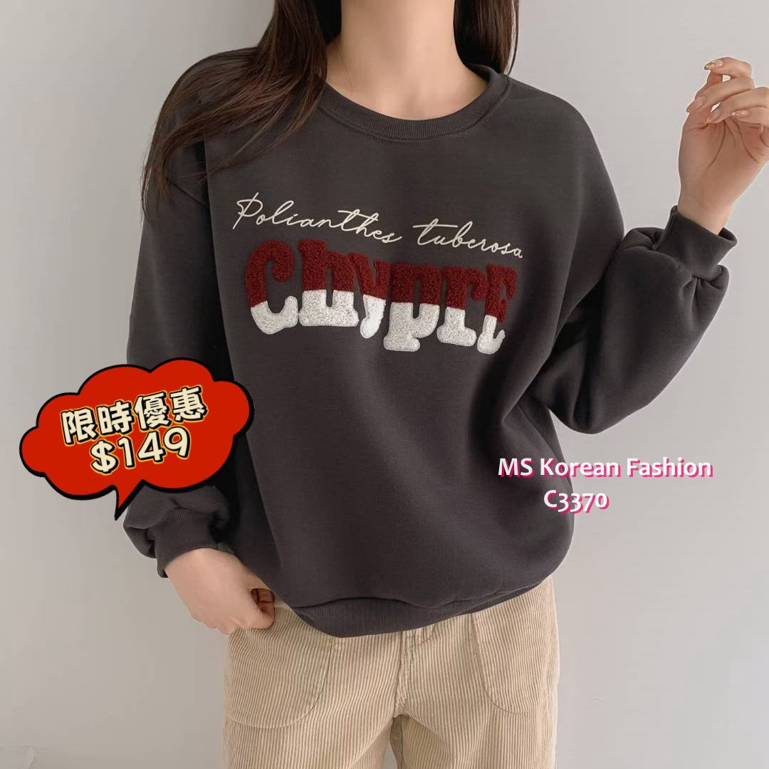 [訂貨約7-10個工作天] 💰💨快閃𝟰𝟴小時優惠: $𝟭𝟰𝟵💨[原價$179] ⏰優惠𝟮𝟭/𝟭𝟭 𝟮𝗽𝗺結束 ⏰ 勁靚拼色字母top🥰 毛毛字母好有質感 colour又靚 加左絨毛底好保暖 3️⃣色各有捧埸客 米、粉、炭灰 #色 尺寸 胸45"/長22" 📫1件加$15包順豐站/自助櫃,2件包順豐(順豐站/自助櫃/工商/住宅) 📱查詢及Order可Inbox或Whatsapp 6317 3061