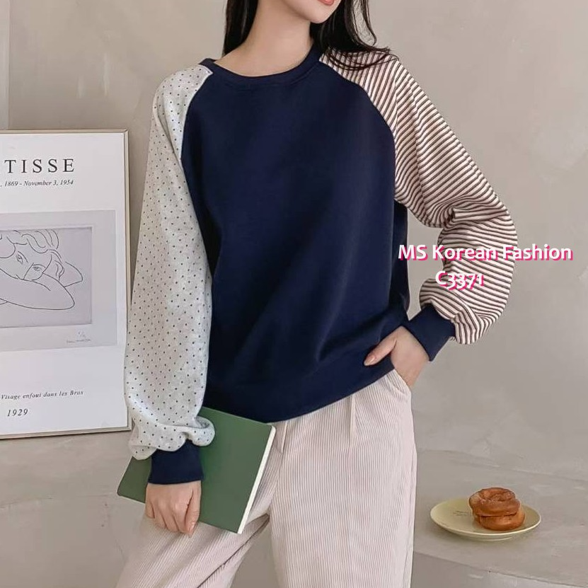 [訂貨約7-10個工作天] 💰💞Happy Price: $189 特色拼袖top 一邊袖橫間pattern一邊波點好特別呀😻 加左絨毛底好保暖 米、灰、寶藍 3色 尺寸 胸44"/長24.5" 📫1件加$15包順豐站/自助櫃,2件包順豐(順豐站/自助櫃/工商/住宅) 📱查詢及Order可Inbox或Whatsapp 6317 3061
