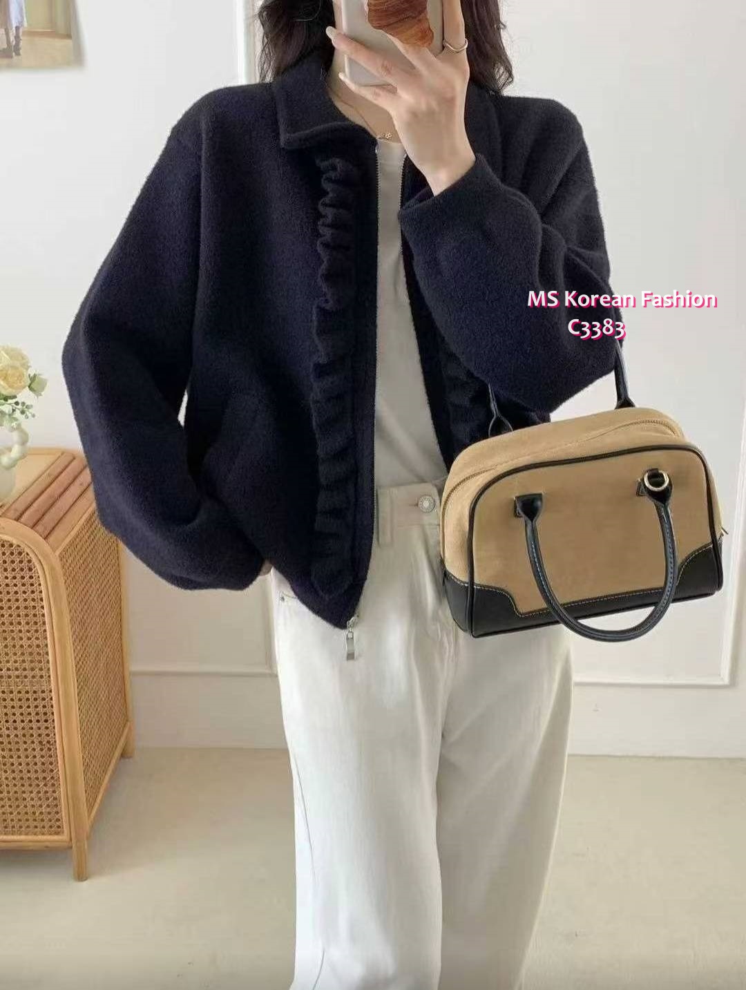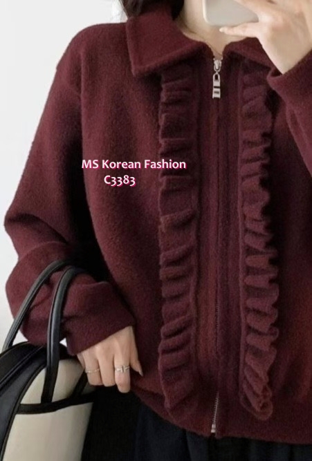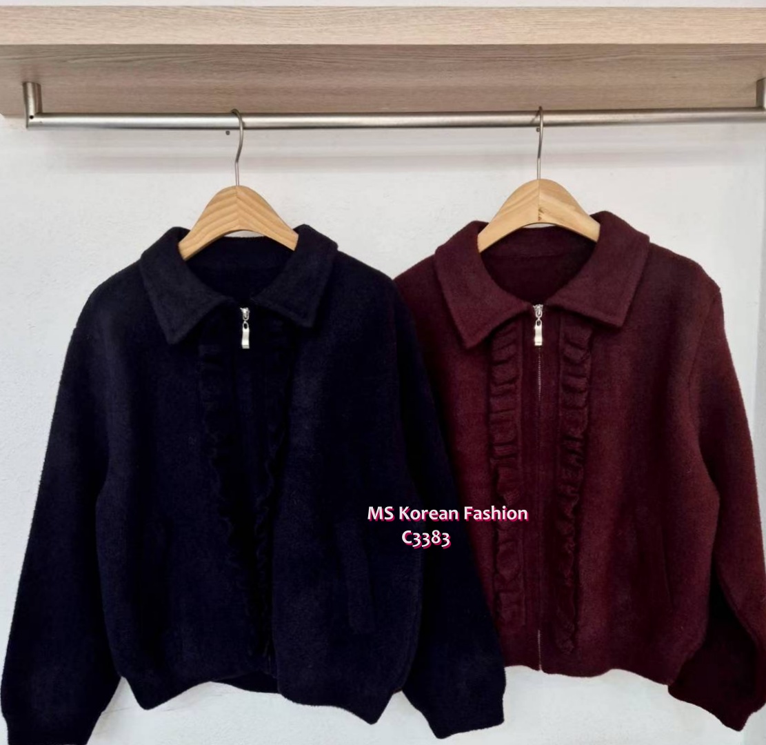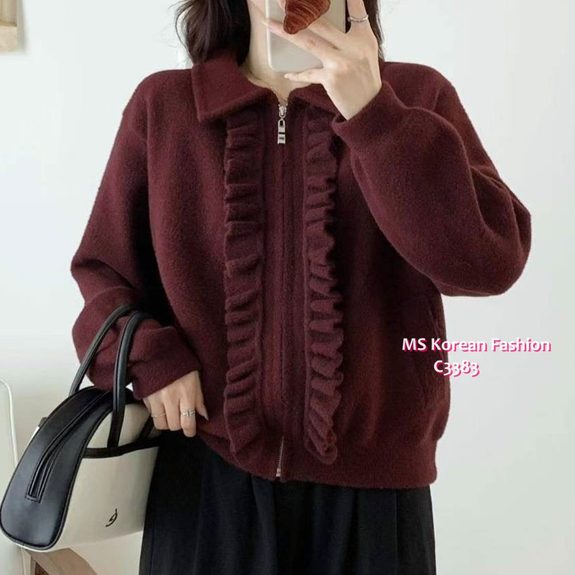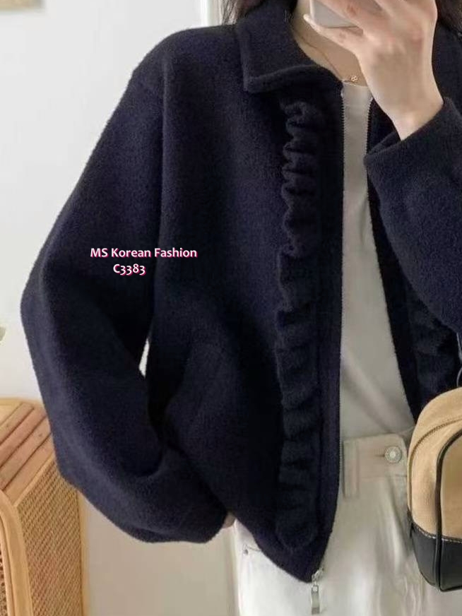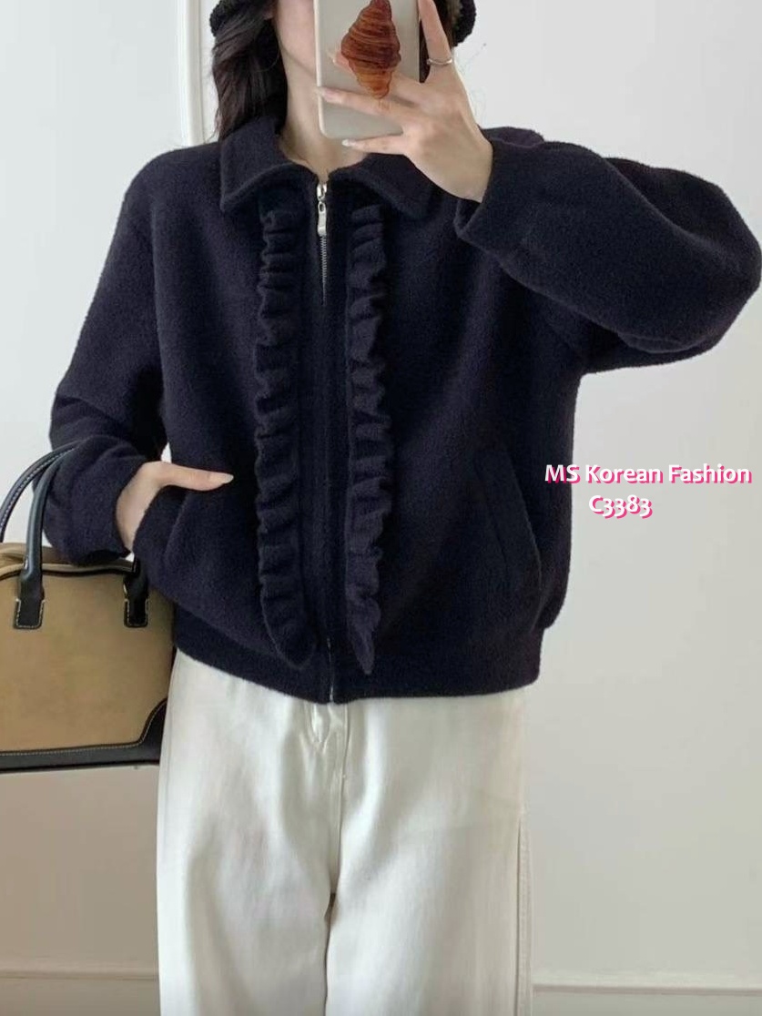 C3383 韓國🇰🇷ruffle邊拉鏈外套