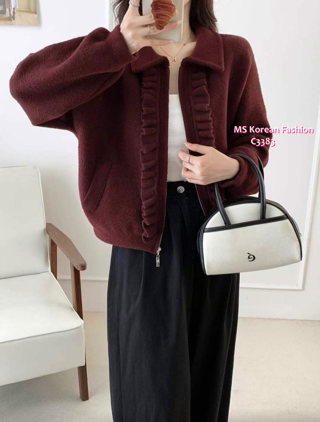 [訂貨約7-10個工作天] 💰💞Happy Price: $259 ruffle邊拉鏈外套✨ 簡約有款又好襯 斯文或casual look都好睇👍 酒紅同寶藍色都好有秋冬feel🍁⛄ 寶藍、酒紅 2色 尺寸 胸44"/長22" 📫1件加$15包順豐站/自助櫃,2件包順豐(順豐站/自助櫃/工商/住宅) 📱查詢及Order可Inbox或Whatsapp 6317 3061