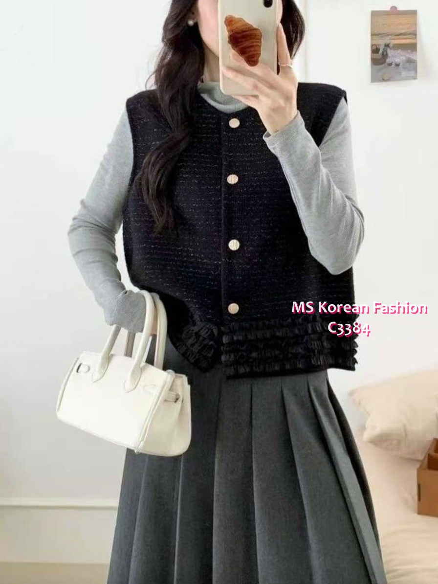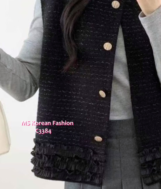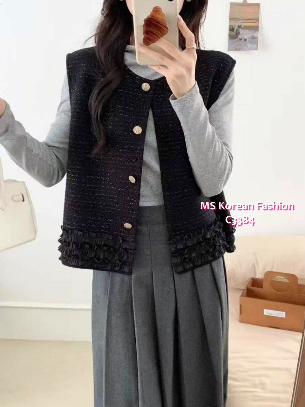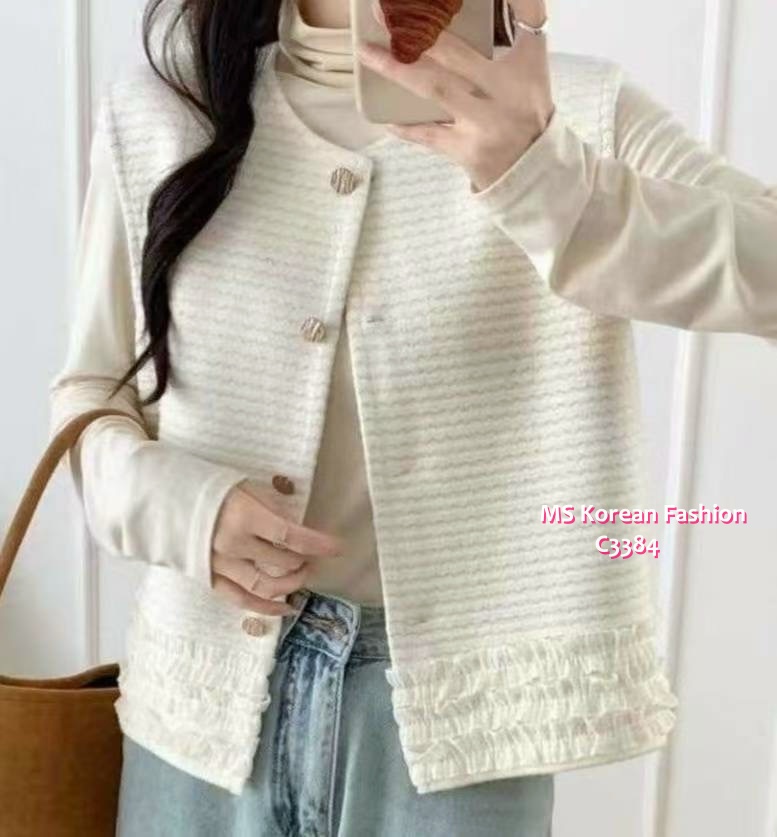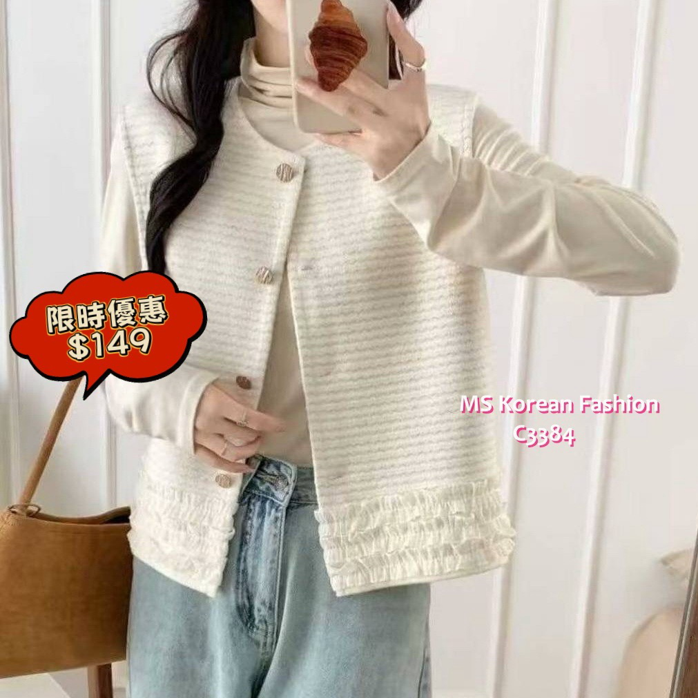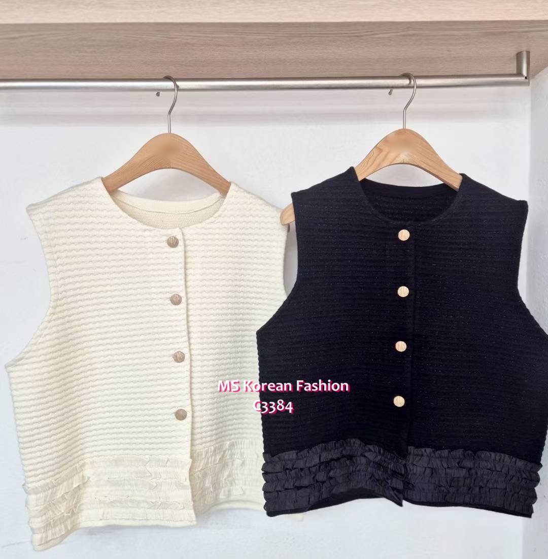 [訂貨約7-10個工作天] 💰💨快閃𝟰𝟴小時優惠: $𝟭𝟰𝟵💨[原價$189] ⏰優惠𝟮𝟴/𝟭𝟭 𝟮𝗽𝗺結束 ⏰ 勁靚背心馬甲外套✨ 橫紋pattern加埋衫腳ruffle點綴 襯裙襯褲都好睇✌ 米白、黑 2色 尺寸 胸41"/長21.5" 📫1件加$15包順豐站/自助櫃,2件包順豐(順豐站/自助櫃/工商/住宅) 📱查詢及Order可Inbox或Whatsapp 6317 3061