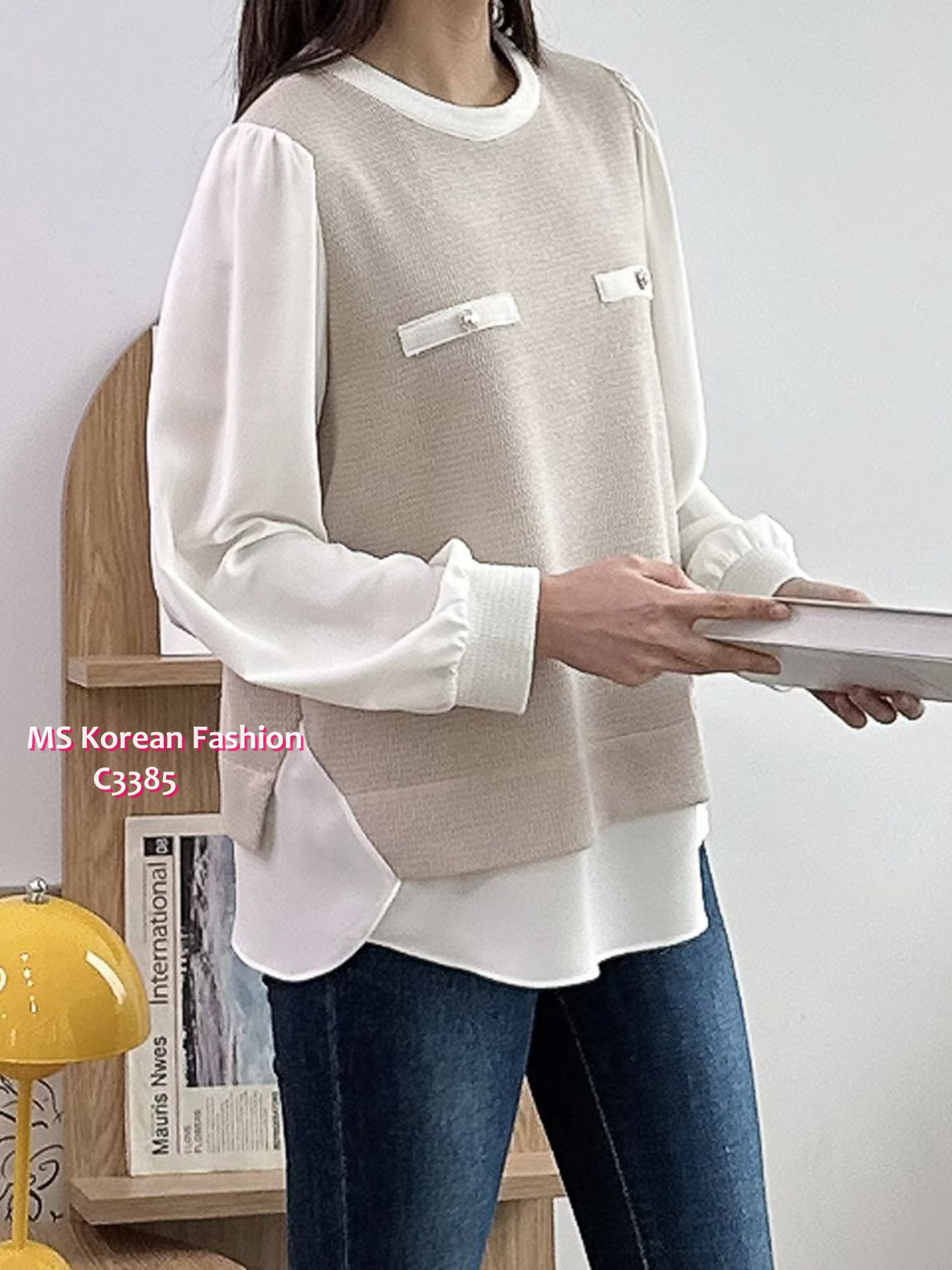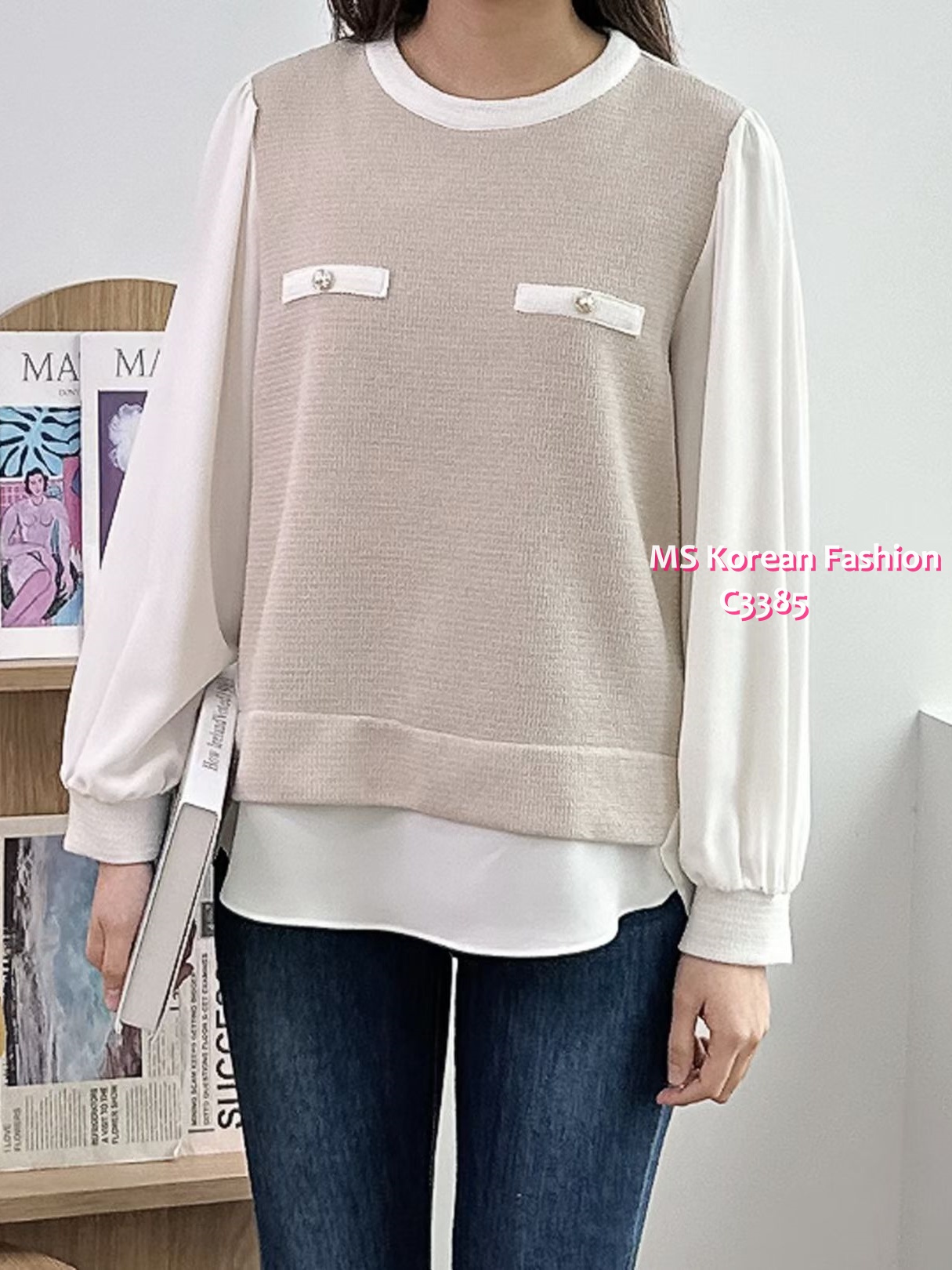 [訂貨約7-10個工作天] 💰💞Happy Price: $259 靚靚拼布top✨ colour拼色巧令令 鬆鬆地易carry 斯文或casual look都carry到👍 杏、黑 2色 尺寸 胸42"/長25" 📫1件加$15包順豐站/自助櫃,2件包順豐(順豐站/自助櫃/工商/住宅) 📱查詢及Order可Inbox或Whatsapp 6317 3061