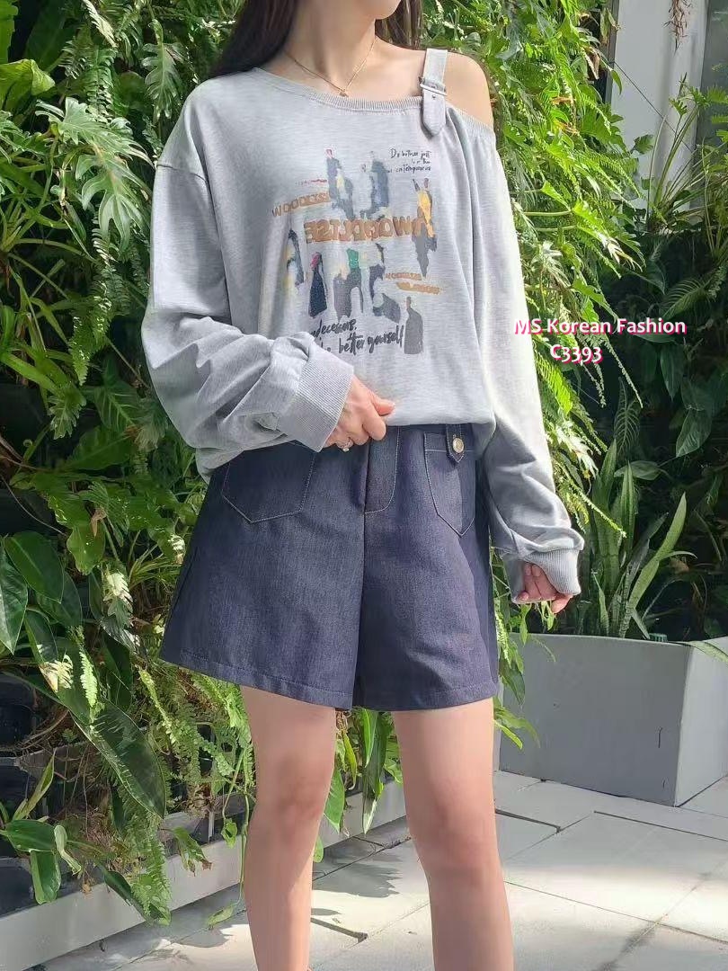 [訂貨約7-10個工作天] 💰💞Happy Price: $199 靚print露單肩top 舒服棉料 肩帶位可調較長短架👍 寶藍、灰 2色 尺寸 胸45"/長23.5" 📫1件加$15包順豐站/自助櫃,2件包順豐(順豐站/自助櫃/工商/住宅) 📱查詢及Order可Inbox或Whatsapp 6317 3061