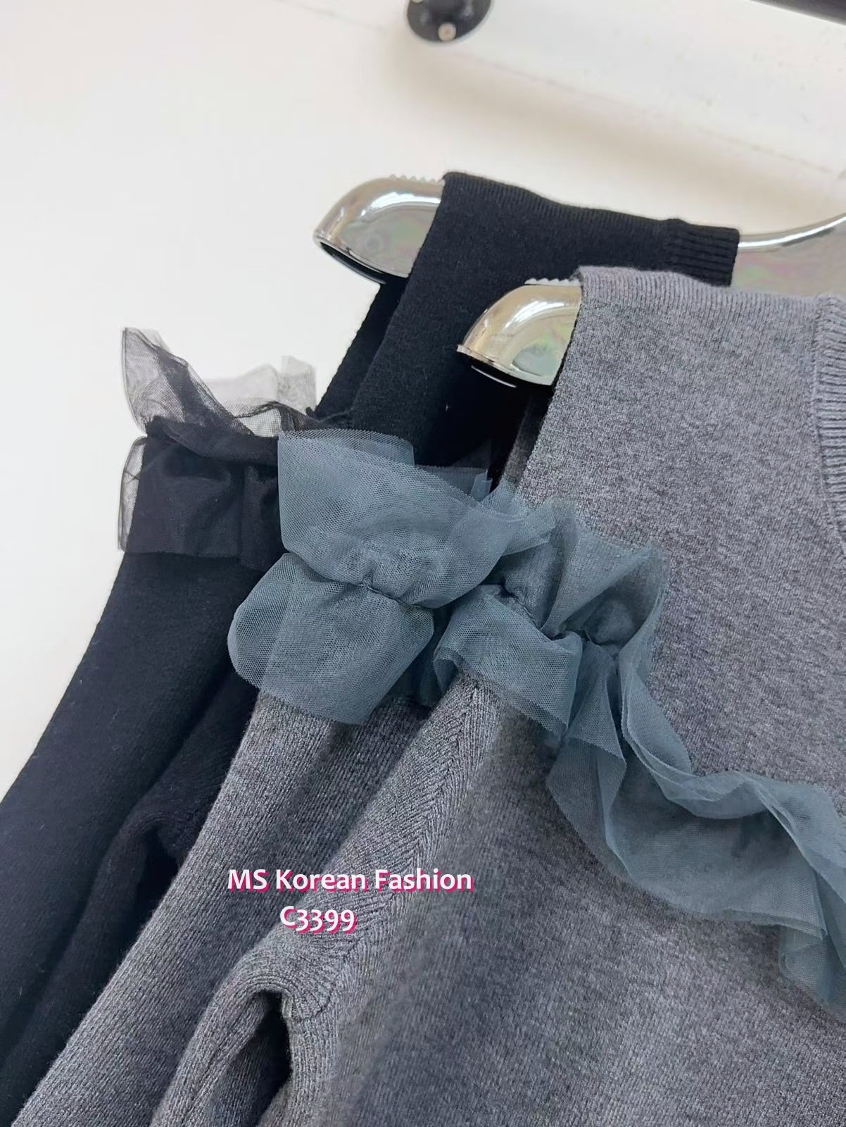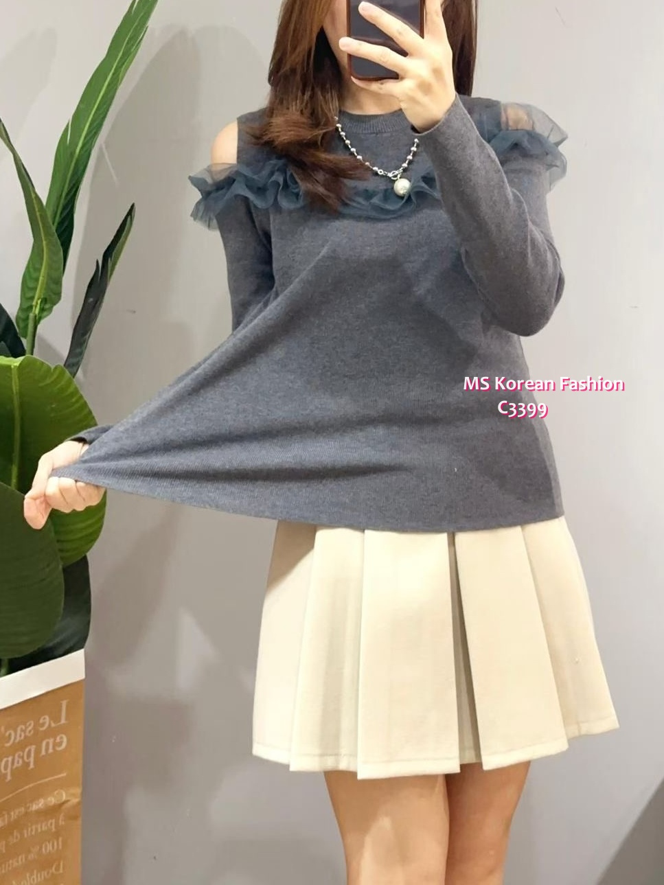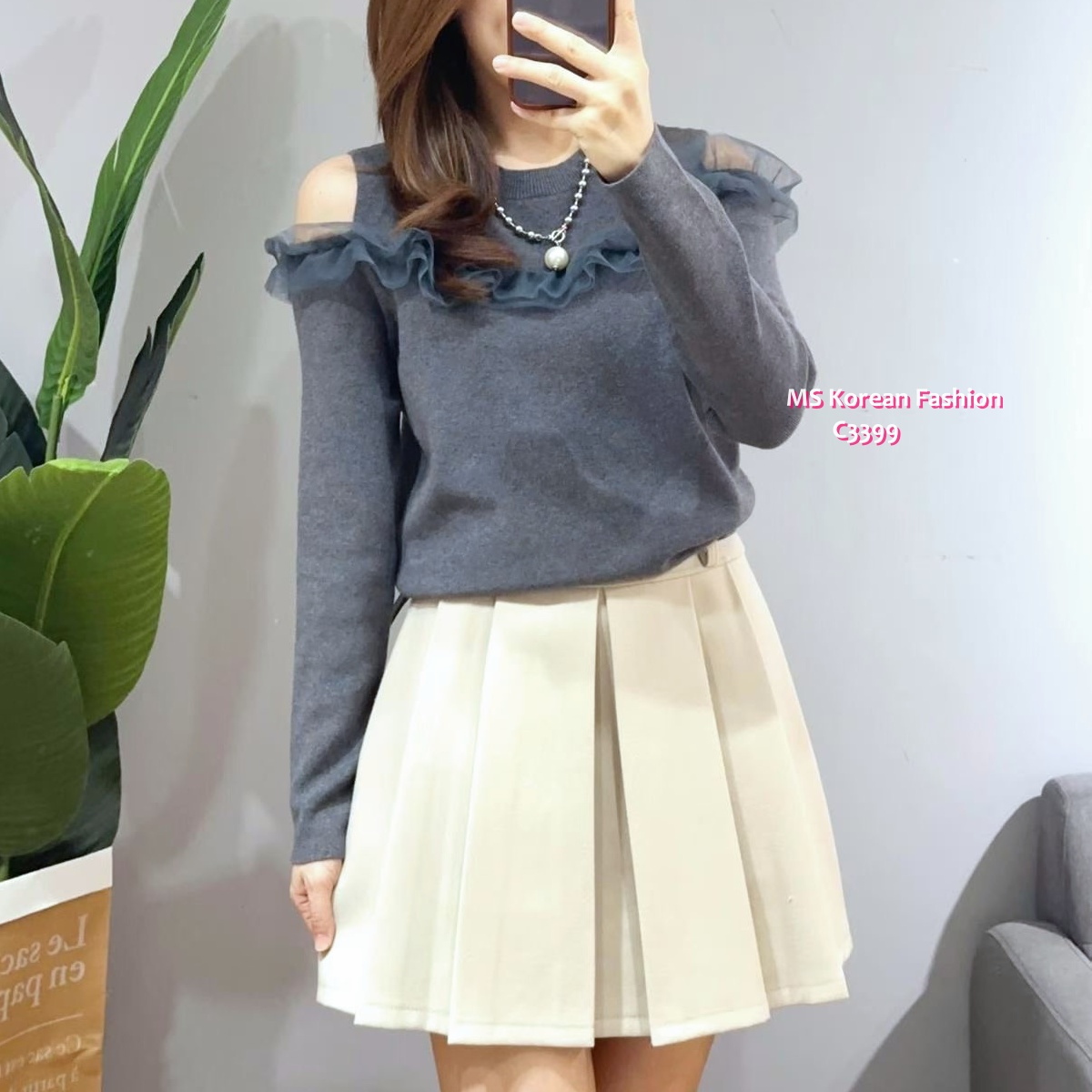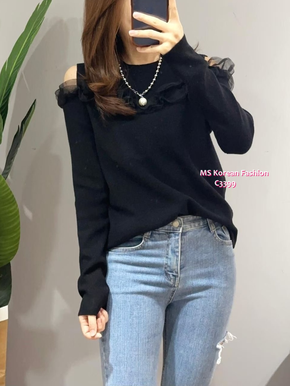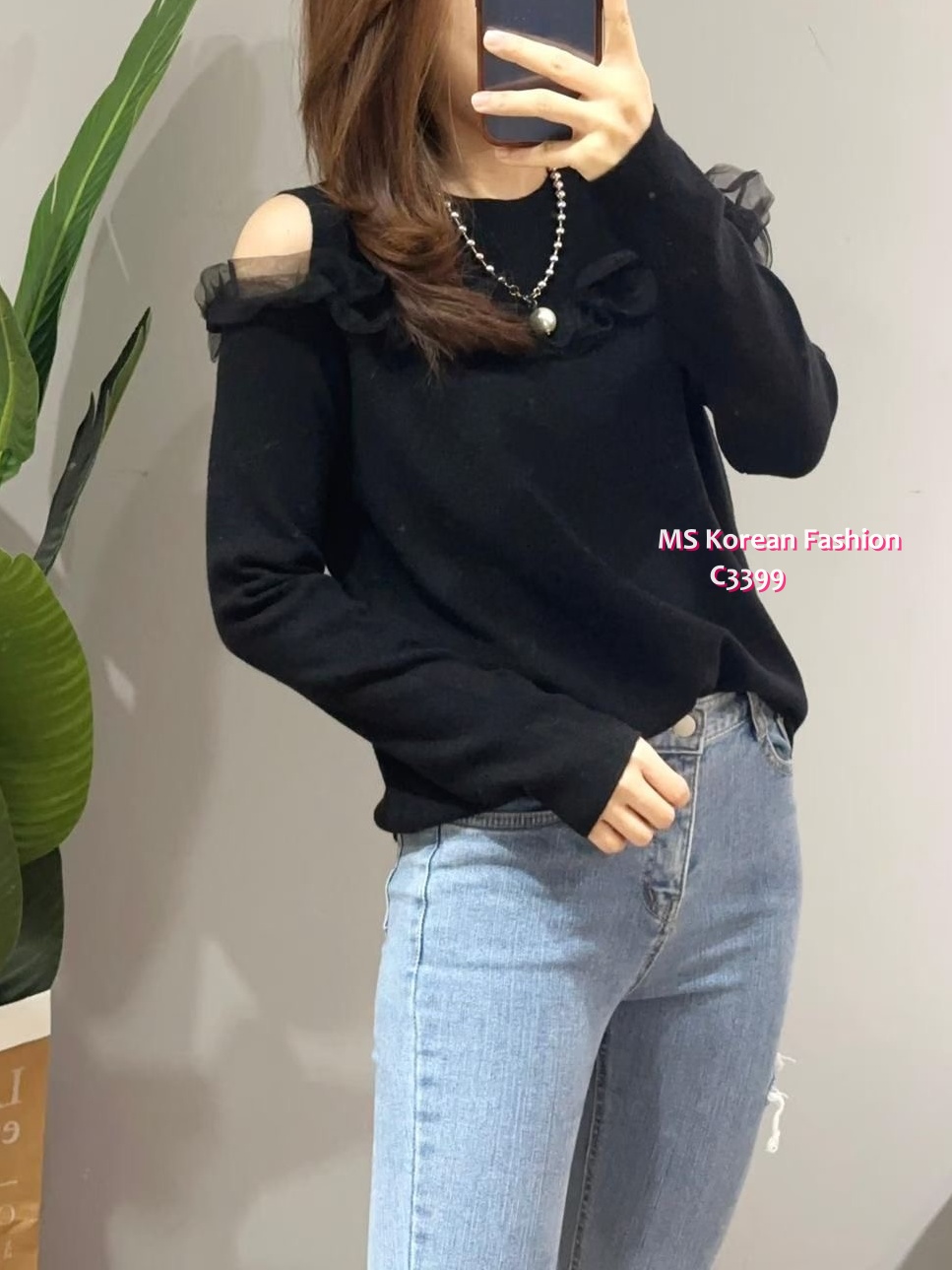 C3399 韓國🇰🇷ruffle花邊露肩top