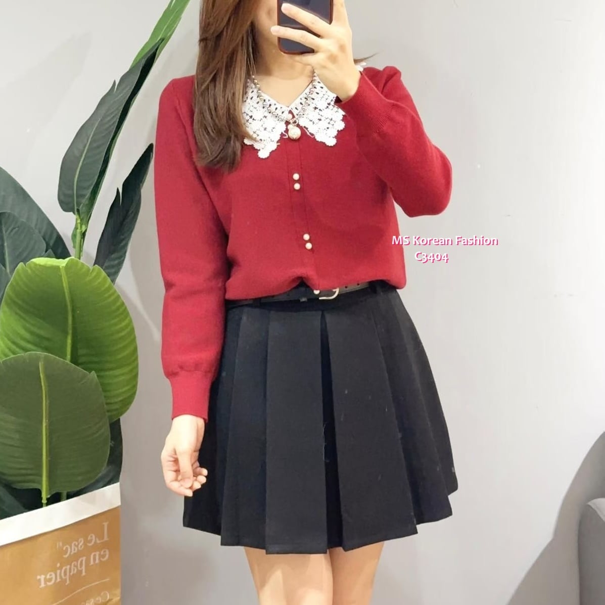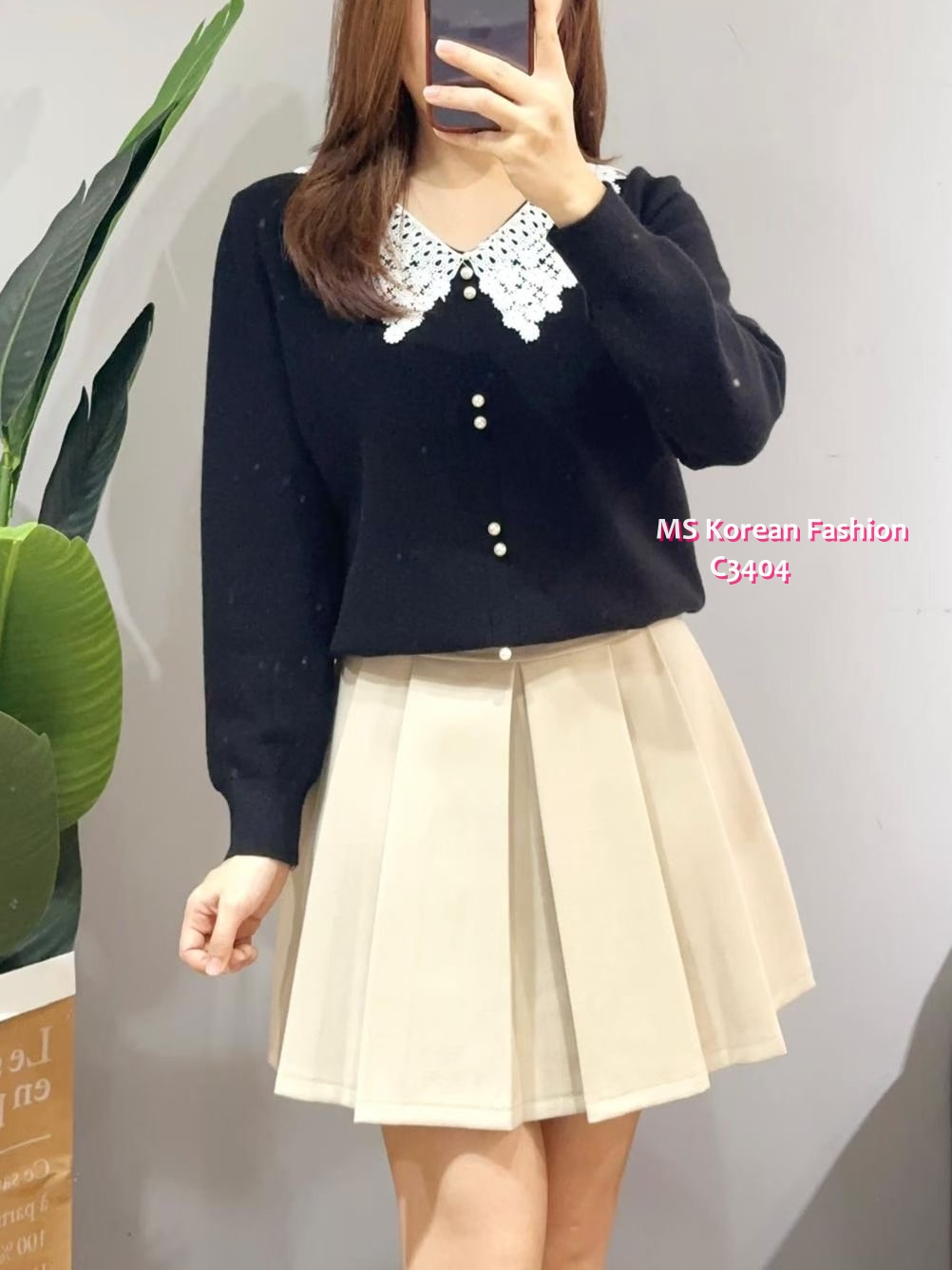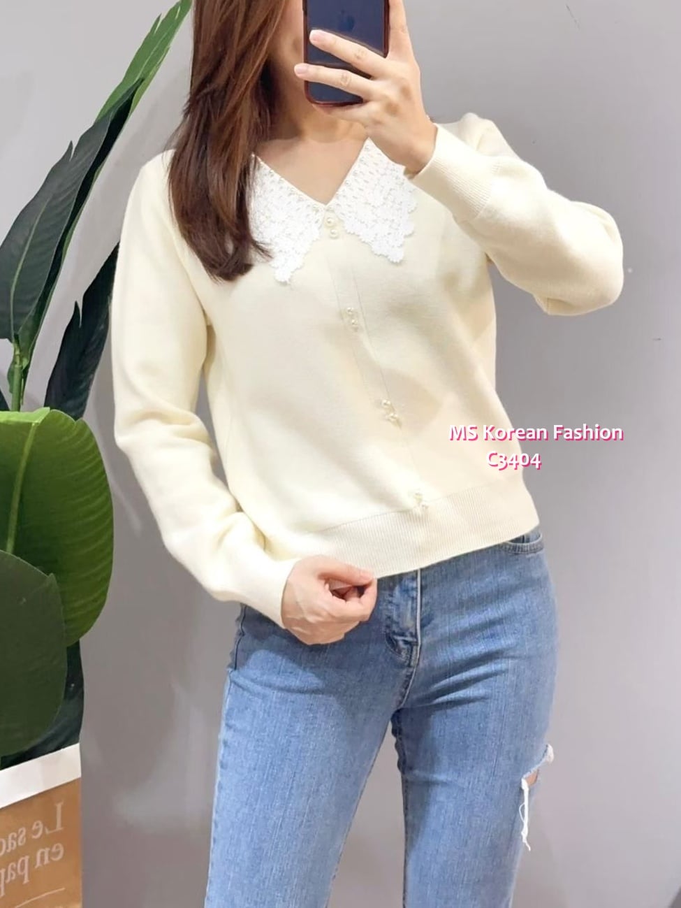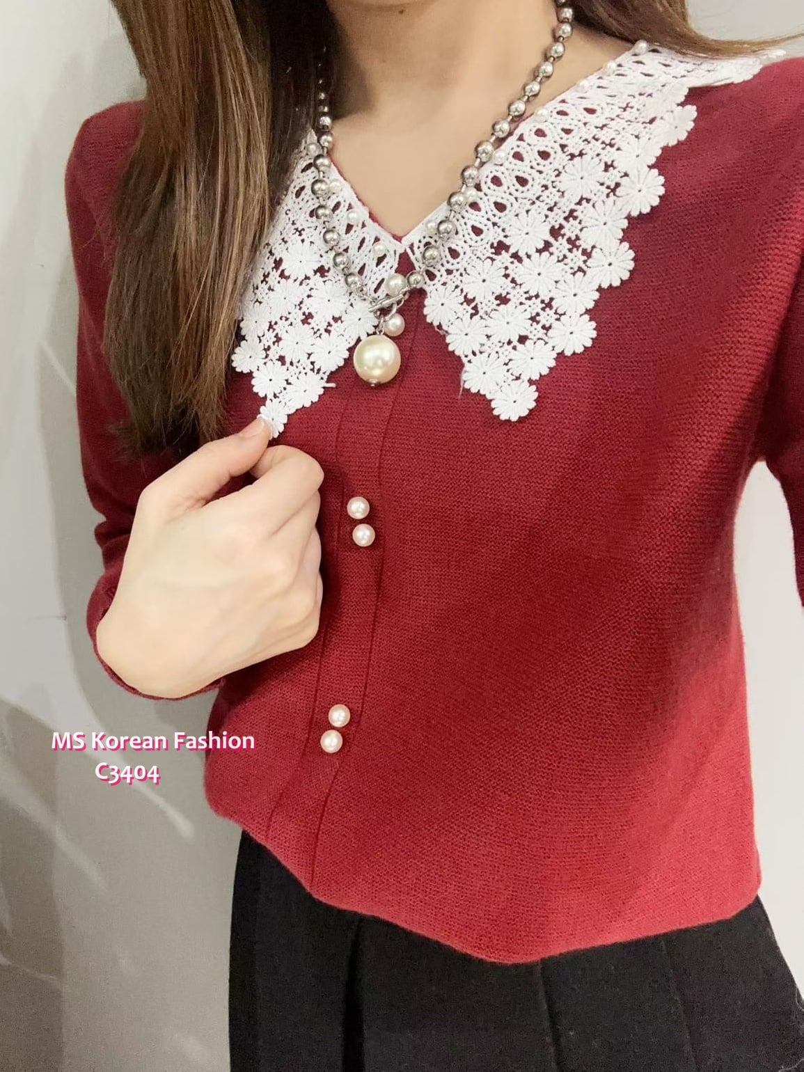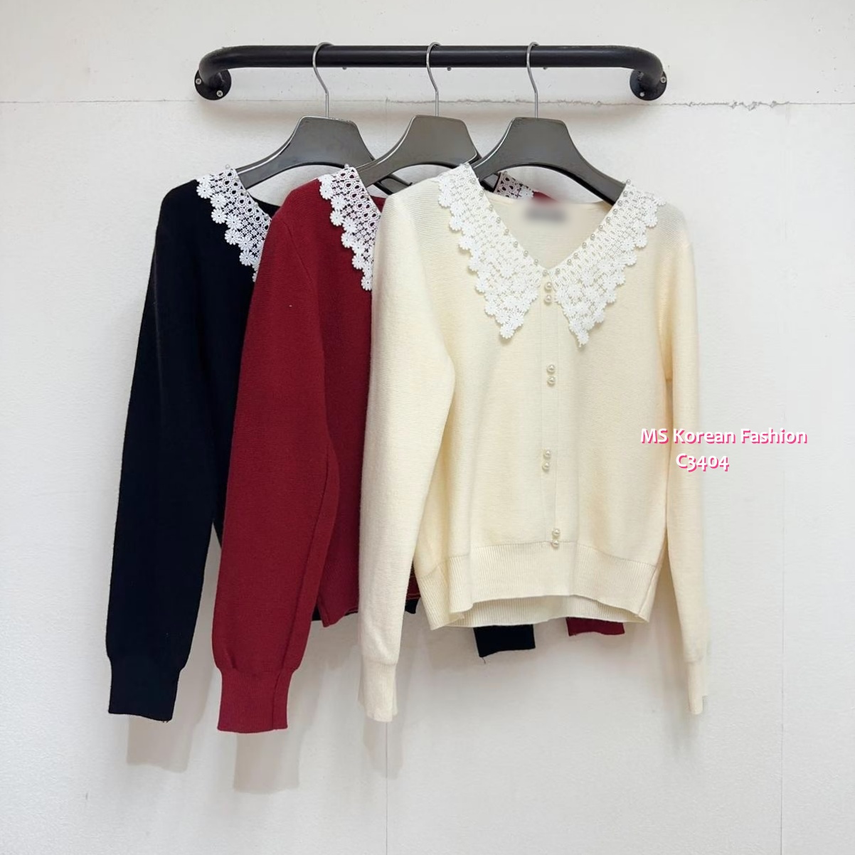 C3404 韓國🇰🇷花邊領針織top