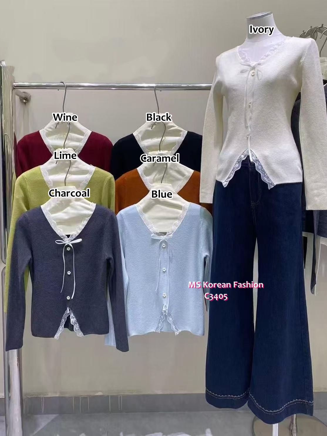 [訂貨約7-10個工作天] 💰💞Happy Price: $179-1件/$330-2件 V領lace邊top 領口同衫腳V lace設計好lady🥰 加左幾粒可愛花花鈕同蝴蝶仔點綴🎀 鍾意slimcut款既靚靚唔好錯過呀 7色 尺寸 胸30">拉開46"/長21.5" 📫1件加$15包順豐站/自助櫃,2件包順豐(順豐站/自助櫃/工商/住宅) 📱查詢及Order可Inbox或Whatsapp 6317 3061