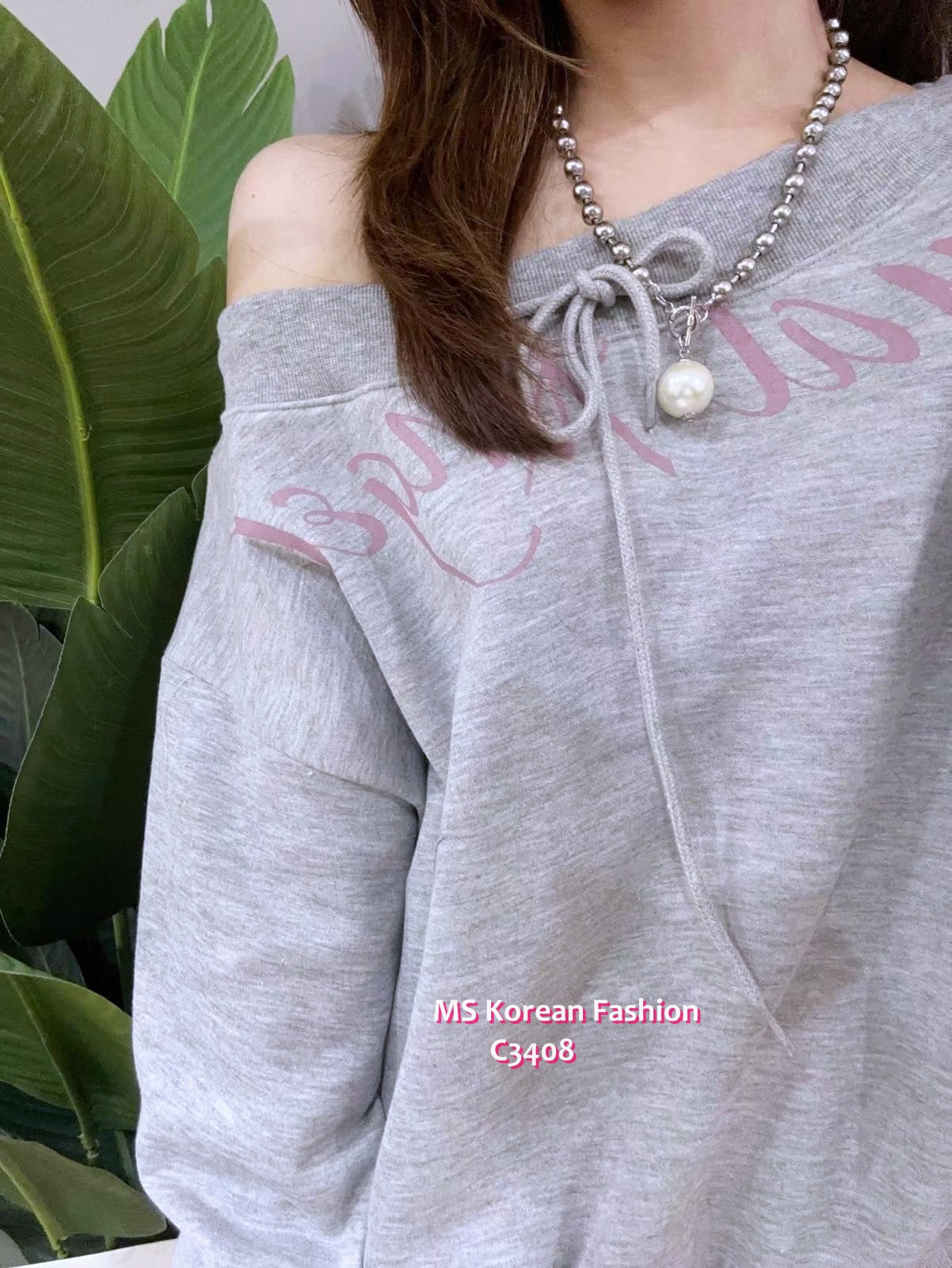 C3408 韓國🇰🇷拼色字母大領口衛衣