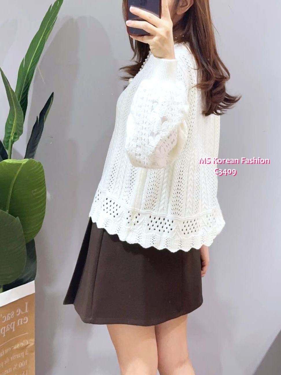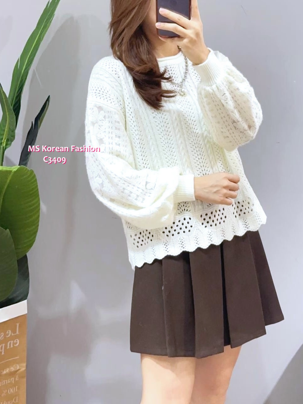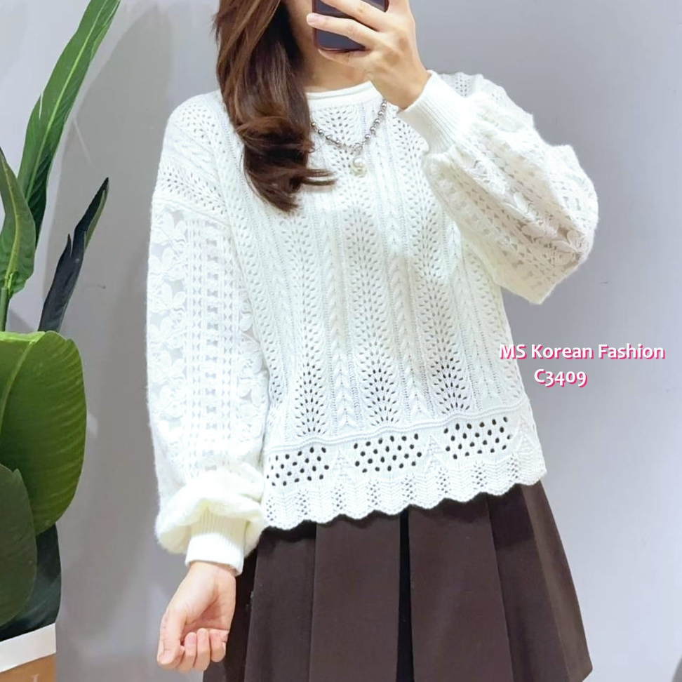 C3409 韓國🇰🇷波浪腳通花top