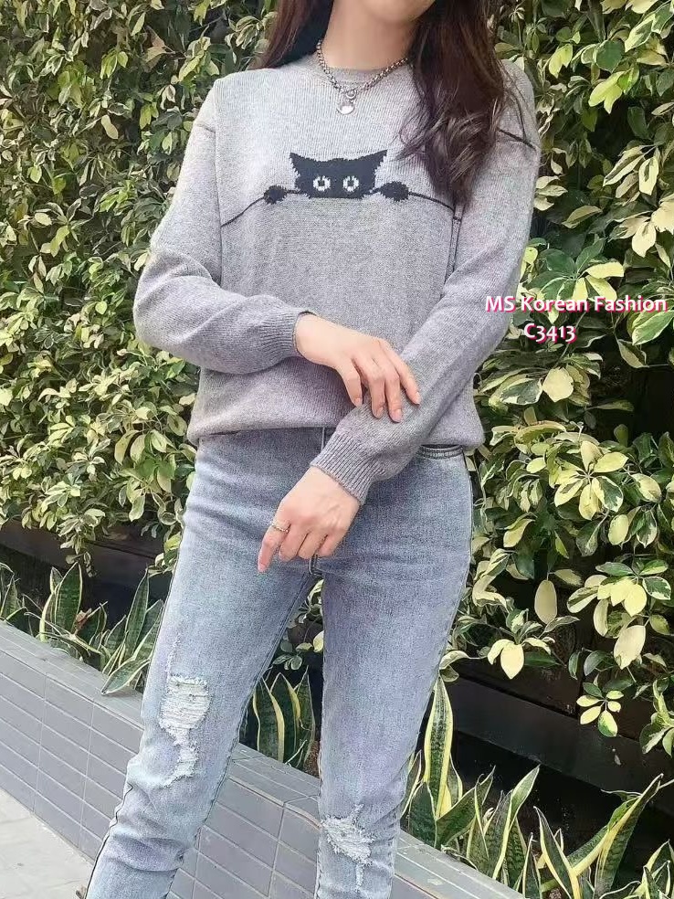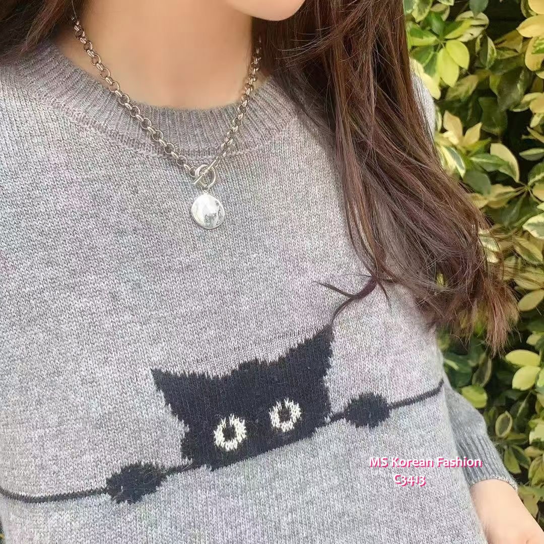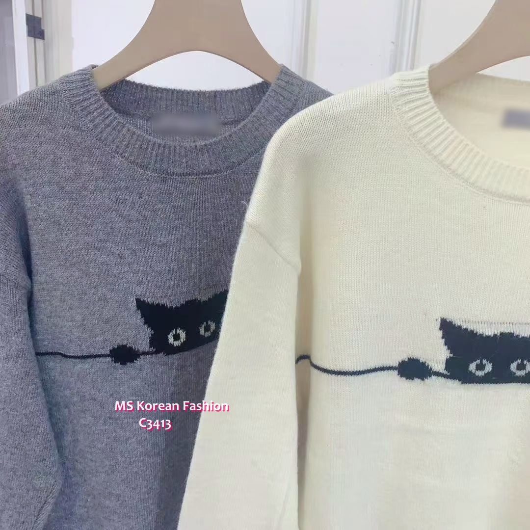 [訂貨約7-10個工作天] 💰💞Happy Price: $199 可愛黑貓針織top 質地唔太厚單著或襯外套都一流✌ 灰、米白 2色 尺寸 胸42">拉開48"/長22" 📫1件加$15包順豐站/自助櫃,2件包順豐(順豐站/自助櫃/工商/住宅) 📱查詢及Order可Inbox或Whatsapp 6317 3061