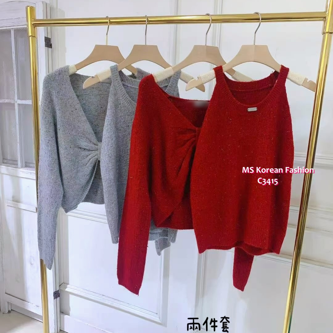 C3415 韓國🇰🇷針織背心+蝴蝶top set
