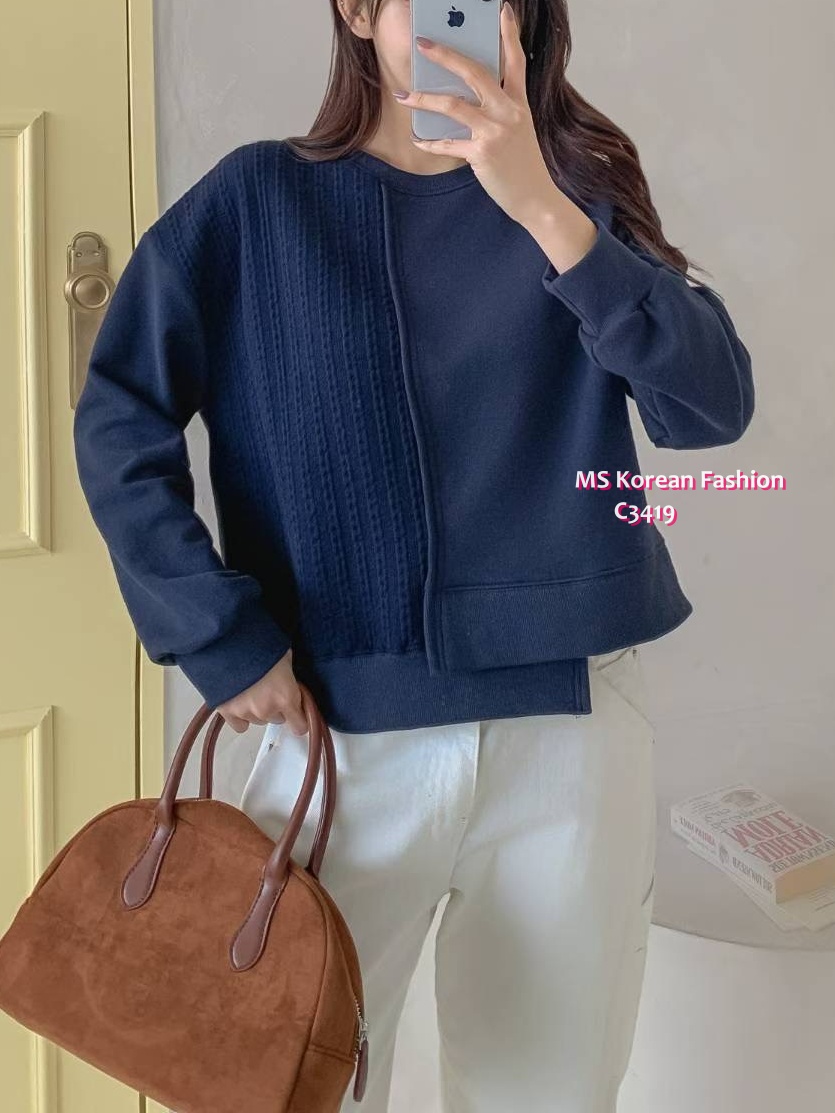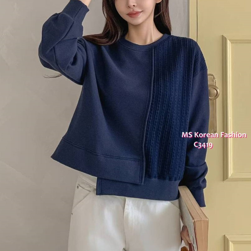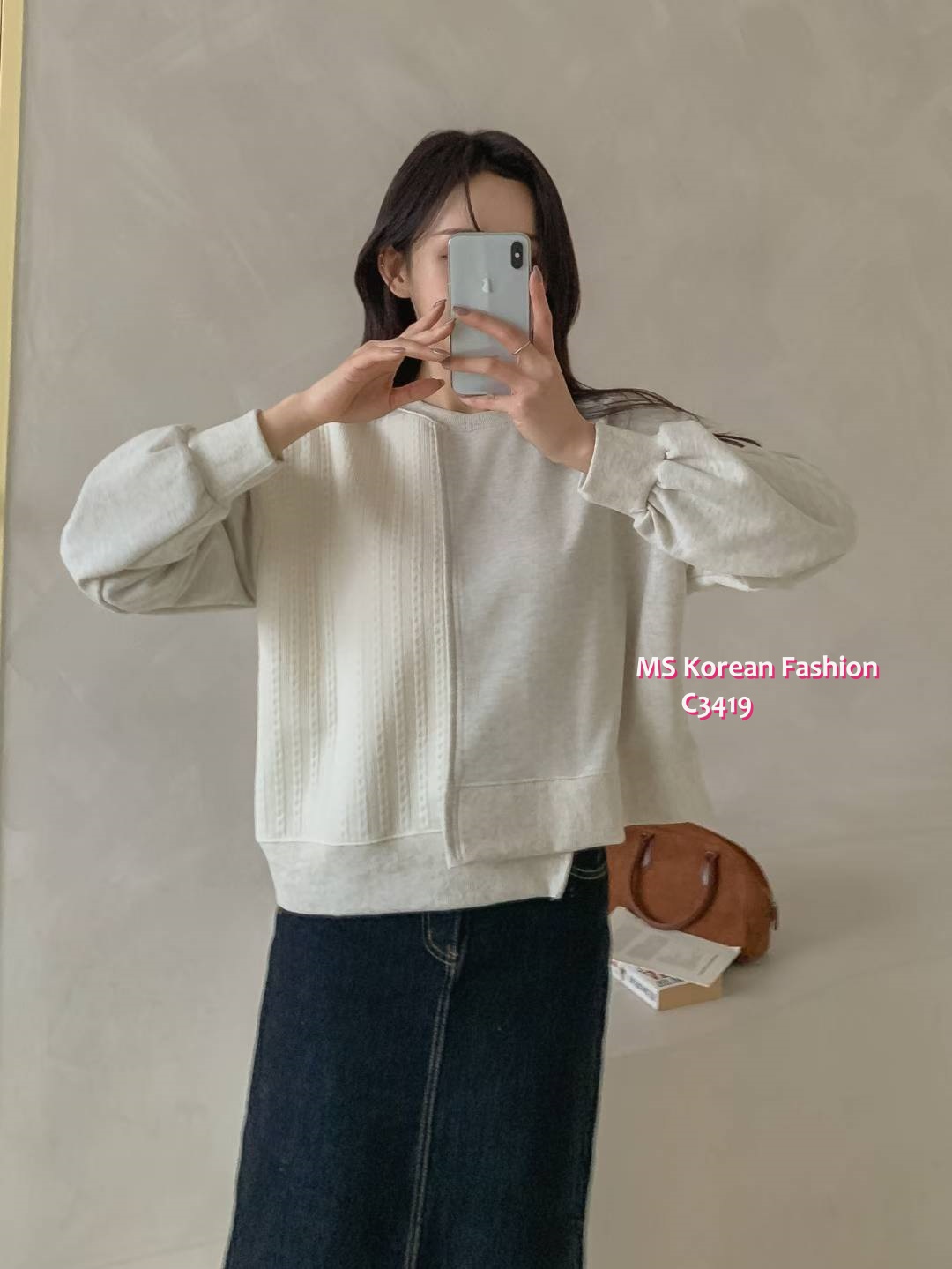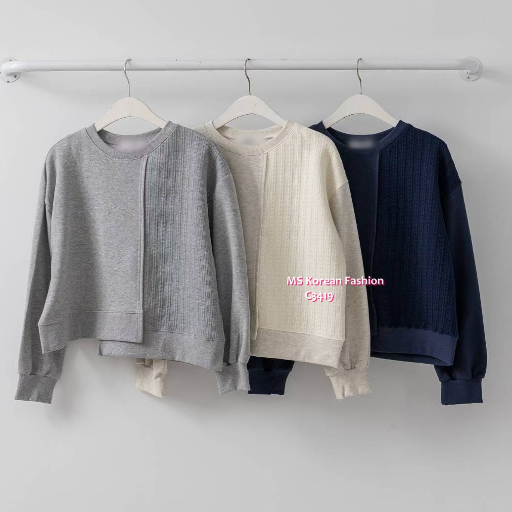 [訂貨約7-10個工作天] 💰💞Happy Price: $189 靚靚扭紋拼布top✨ 左右拼布+衫腳長短設計好有款 舒服靚棉質💯 灰、燕麥、寶藍 3色 尺寸 胸44"/長22.5" 📫1件加$15包順豐站/自助櫃,2件包順豐 📱查詢及Order可Inbox或Whatsapp 6317 3061