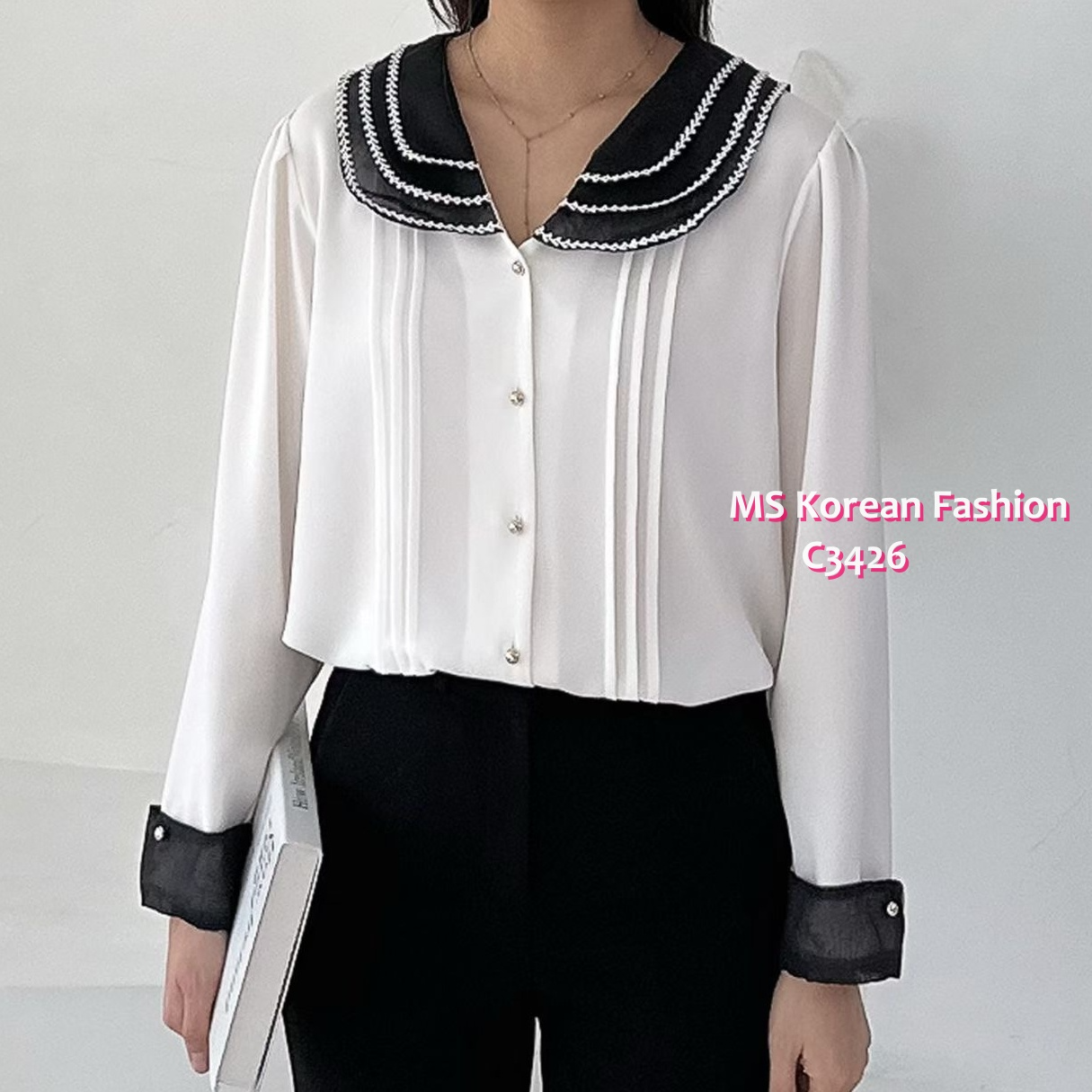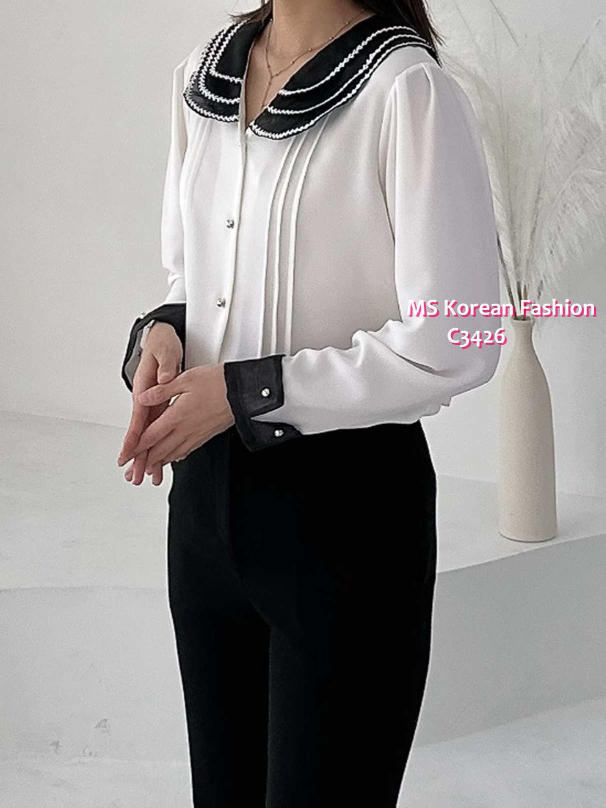 [訂貨約7-10個工作天] 💰💜$279, $269 for vip 高質雪紡靚料恤 拼色3️⃣層領撞花邊設計好特別🌺 手袖口都做左拼色 高貴大方款💄 斯文或casual look都carry到✌ 白、黑 2色 尺寸 胸42"/長24" 📫1件加$15包順豐站/自助櫃,2件包順豐(順豐站/自助櫃/工商/住宅) 📱查詢及Order可Inbox或Whatsapp 6317 3061
