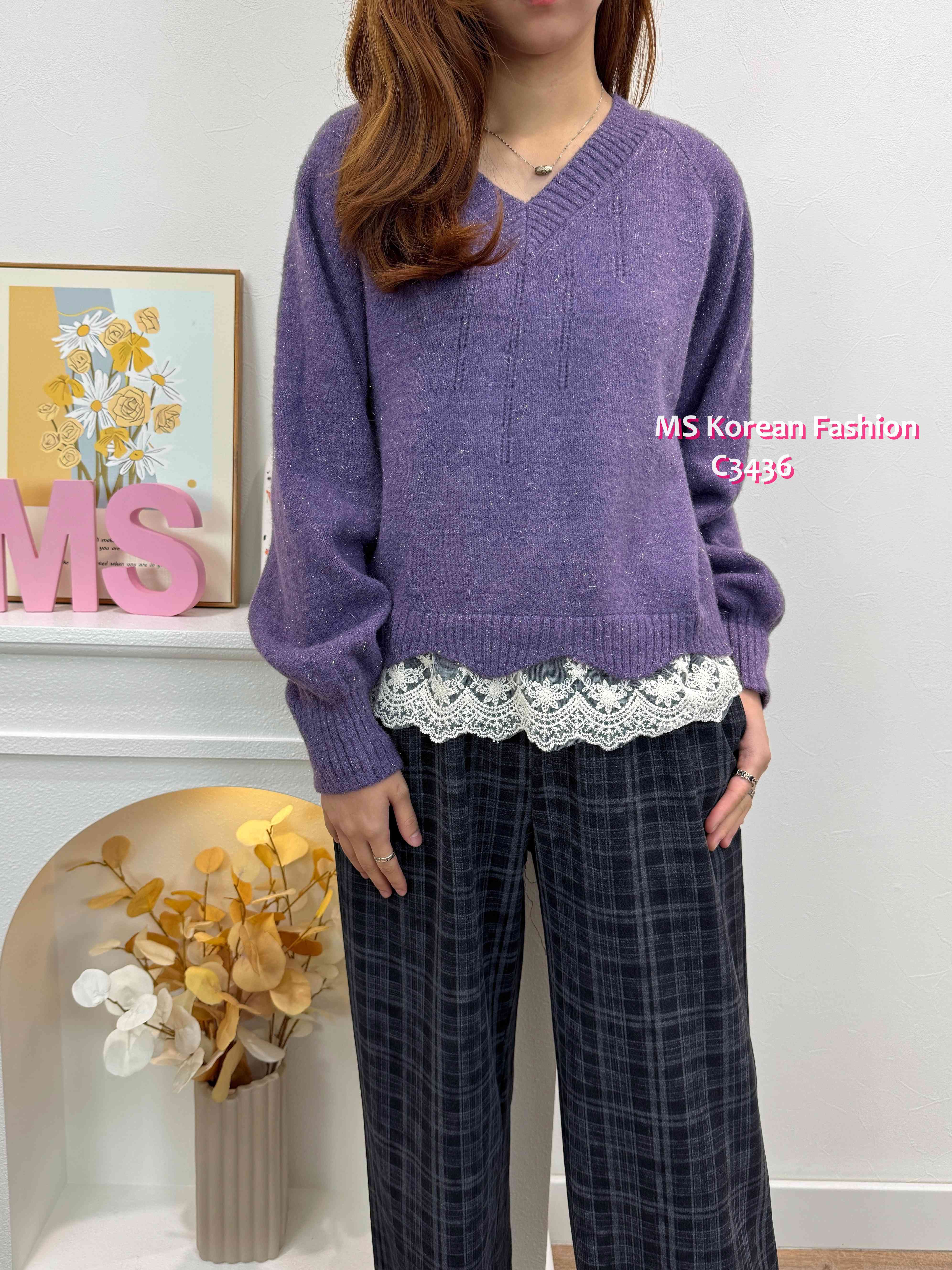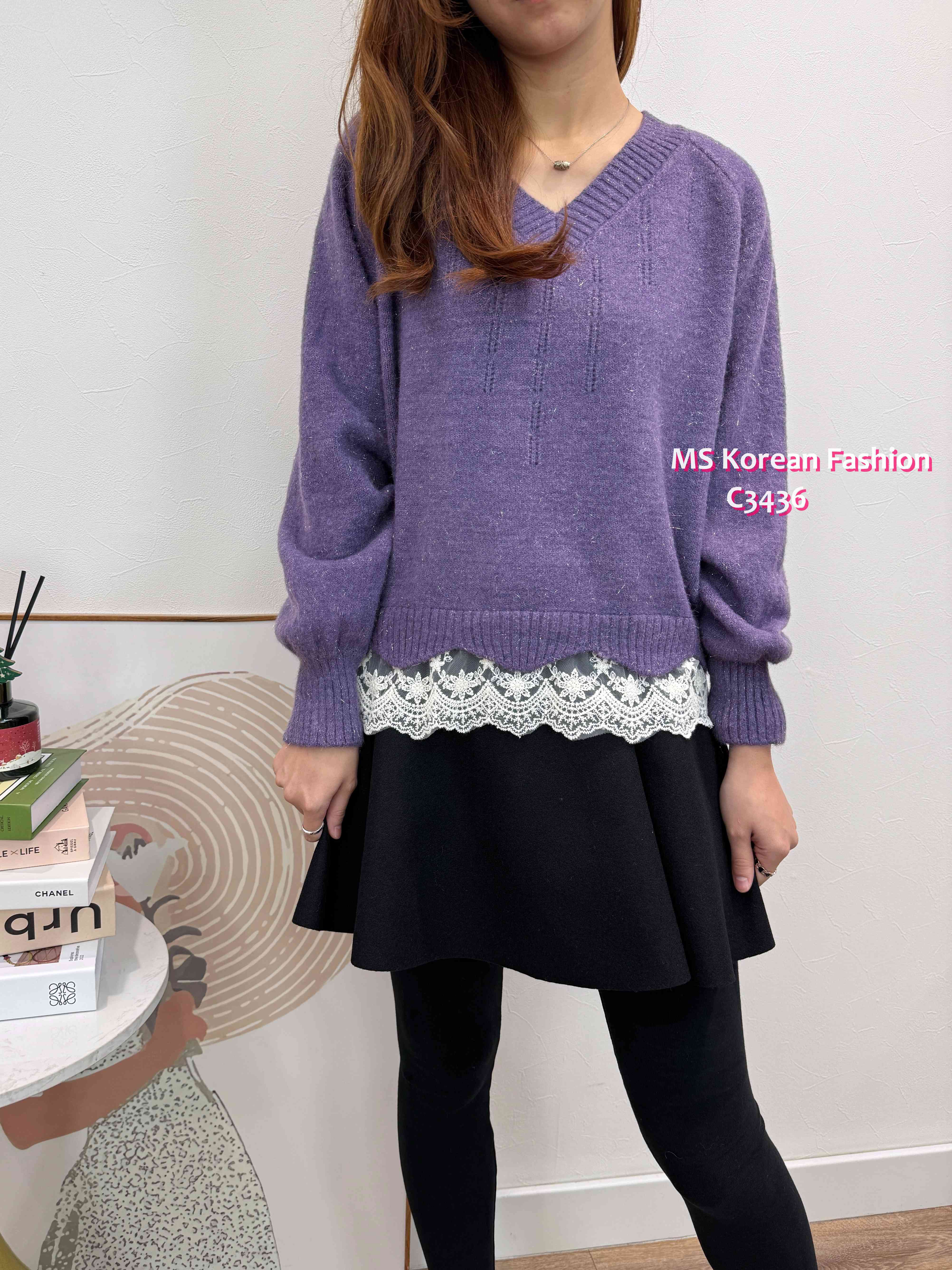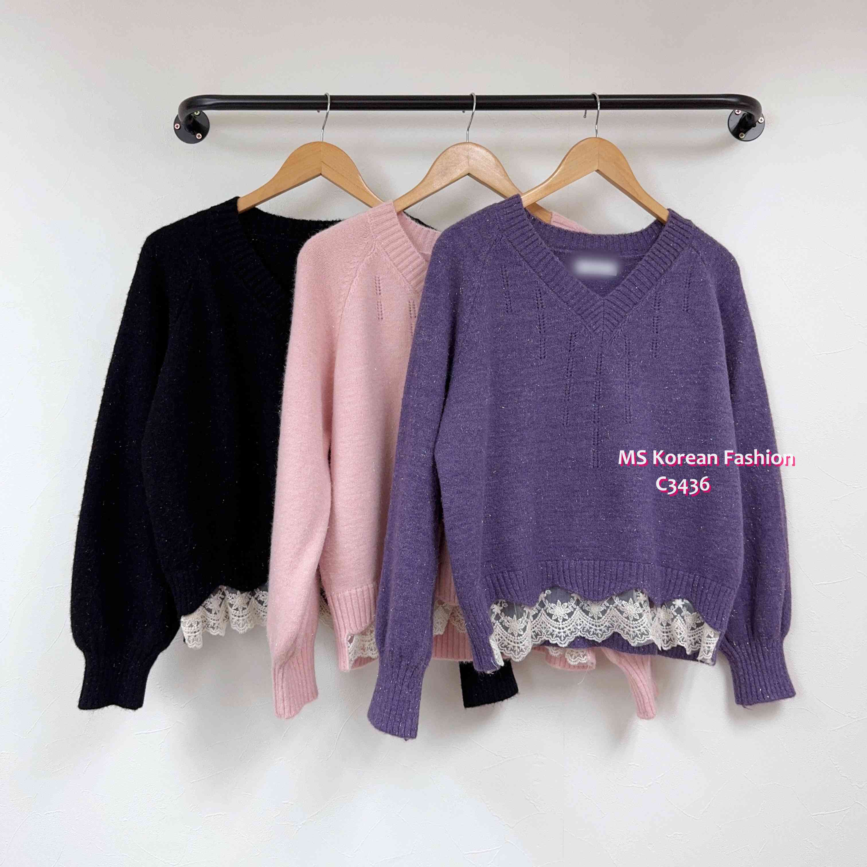[訂貨約7-10個工作天] 💰💞Happy Price: $189 V領lace腳針織top🥳 V領cutting露少少鎖骨顯瘦D 份料實物睇有少少blingbling效果好靚架🥰 lace腳可放出黎或收埋著都好睇架 3️⃣色各有捧埸客 黑、粉、紫 3色 尺寸 胸44">拉開54"/長22.5" 📫1件加$15包順豐站/自助櫃,2件包順豐(順豐站/自助櫃/工商/住宅) 📱查詢及Order可Inbox或Whatsapp 6317 3061