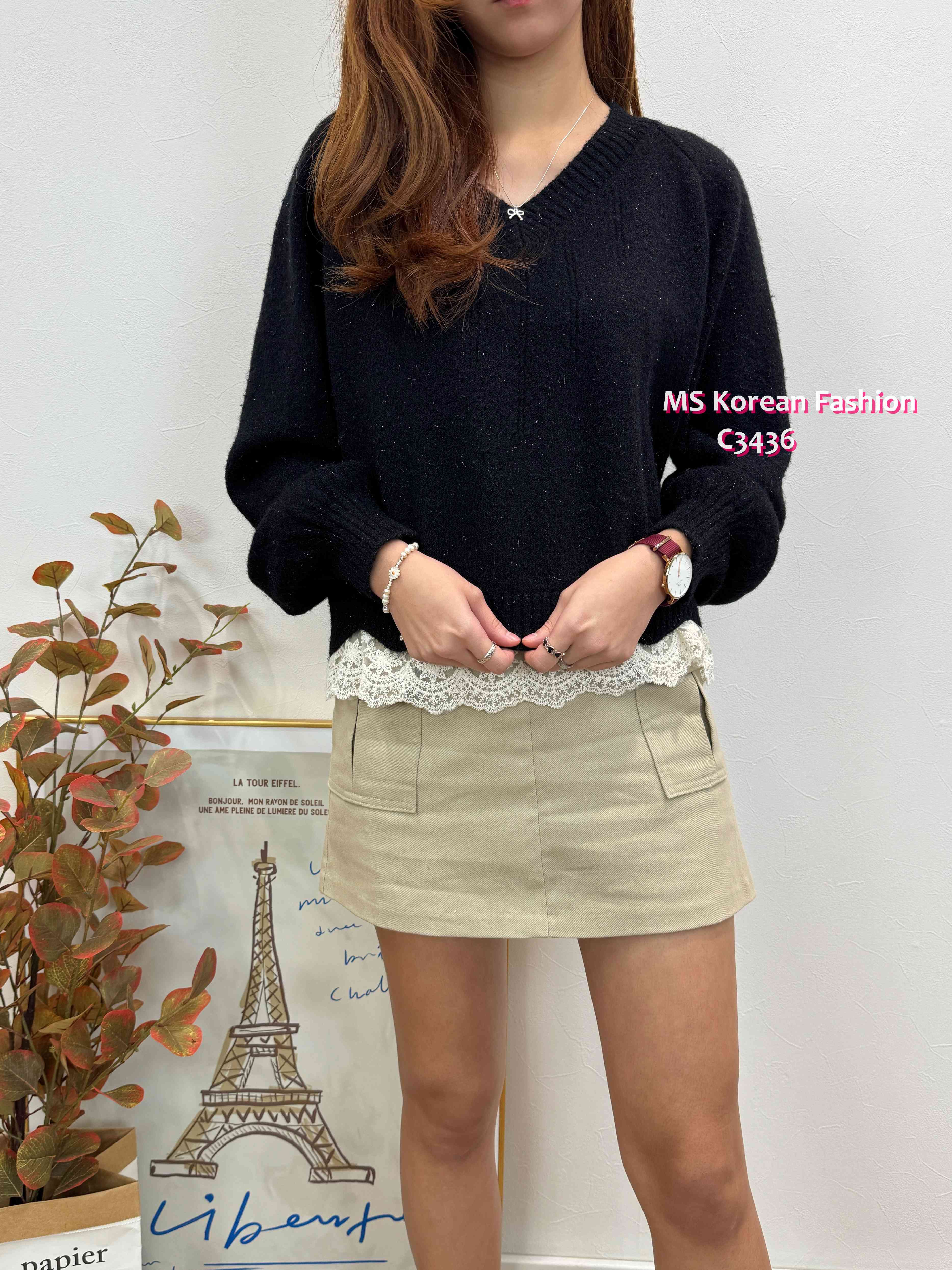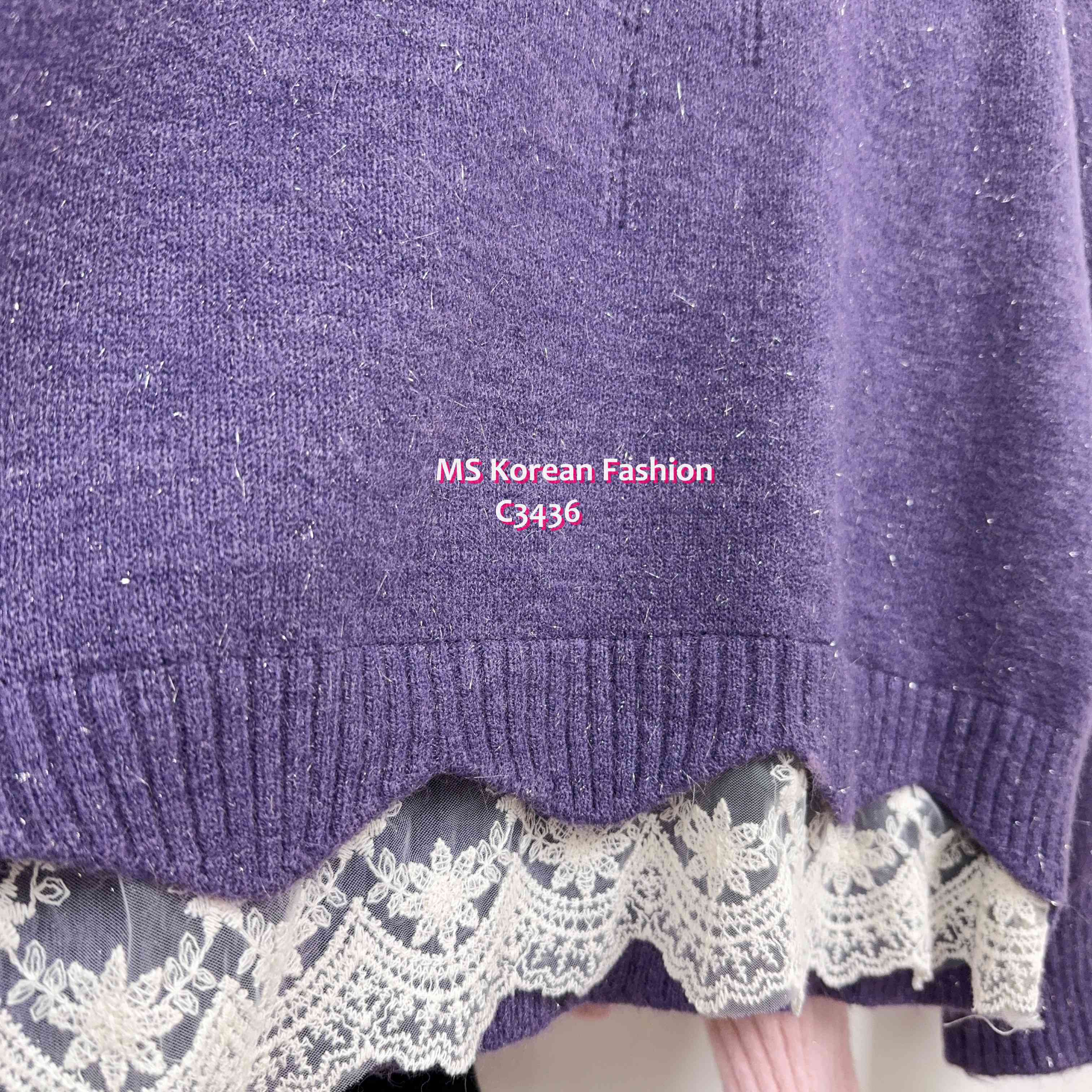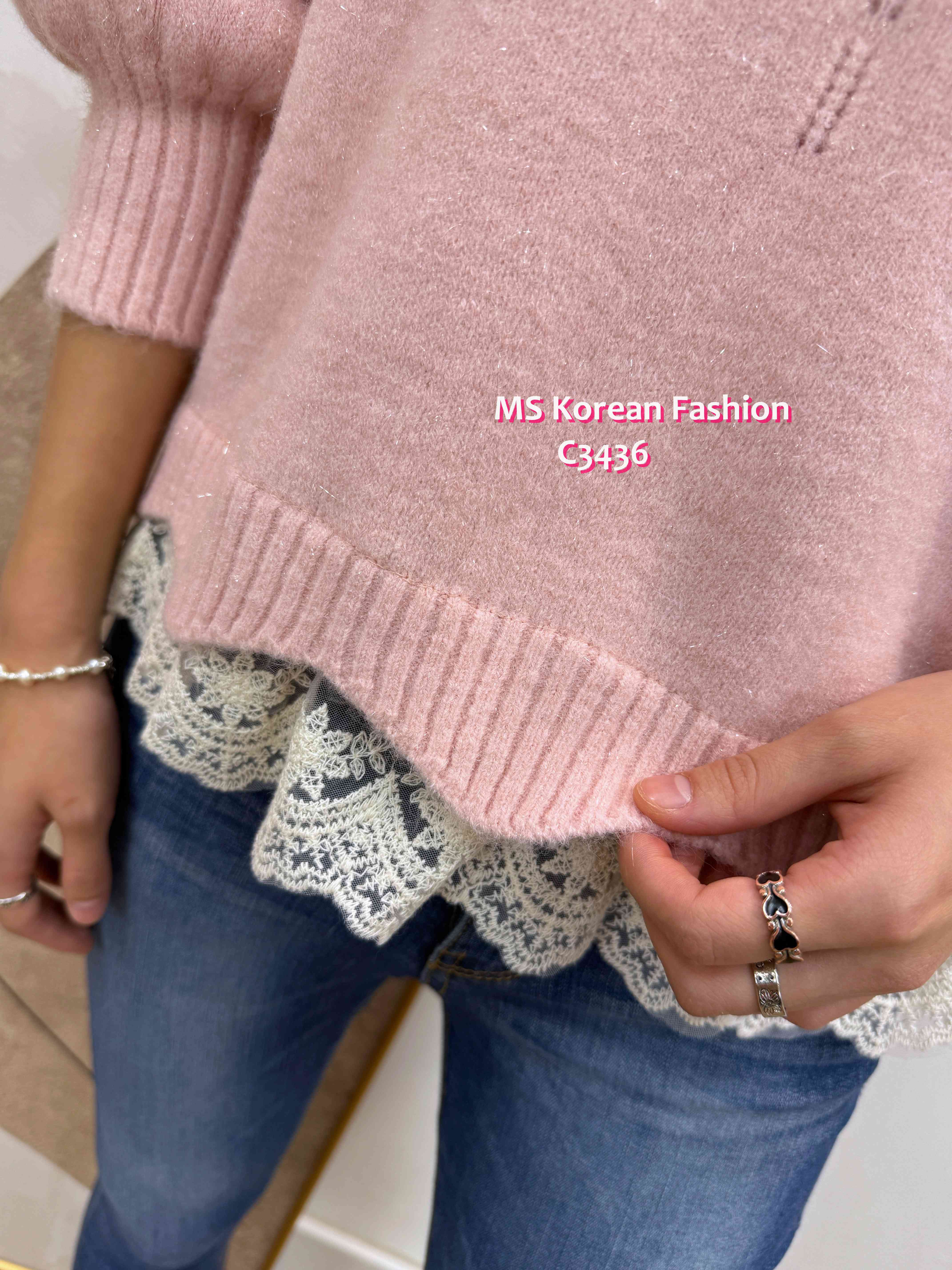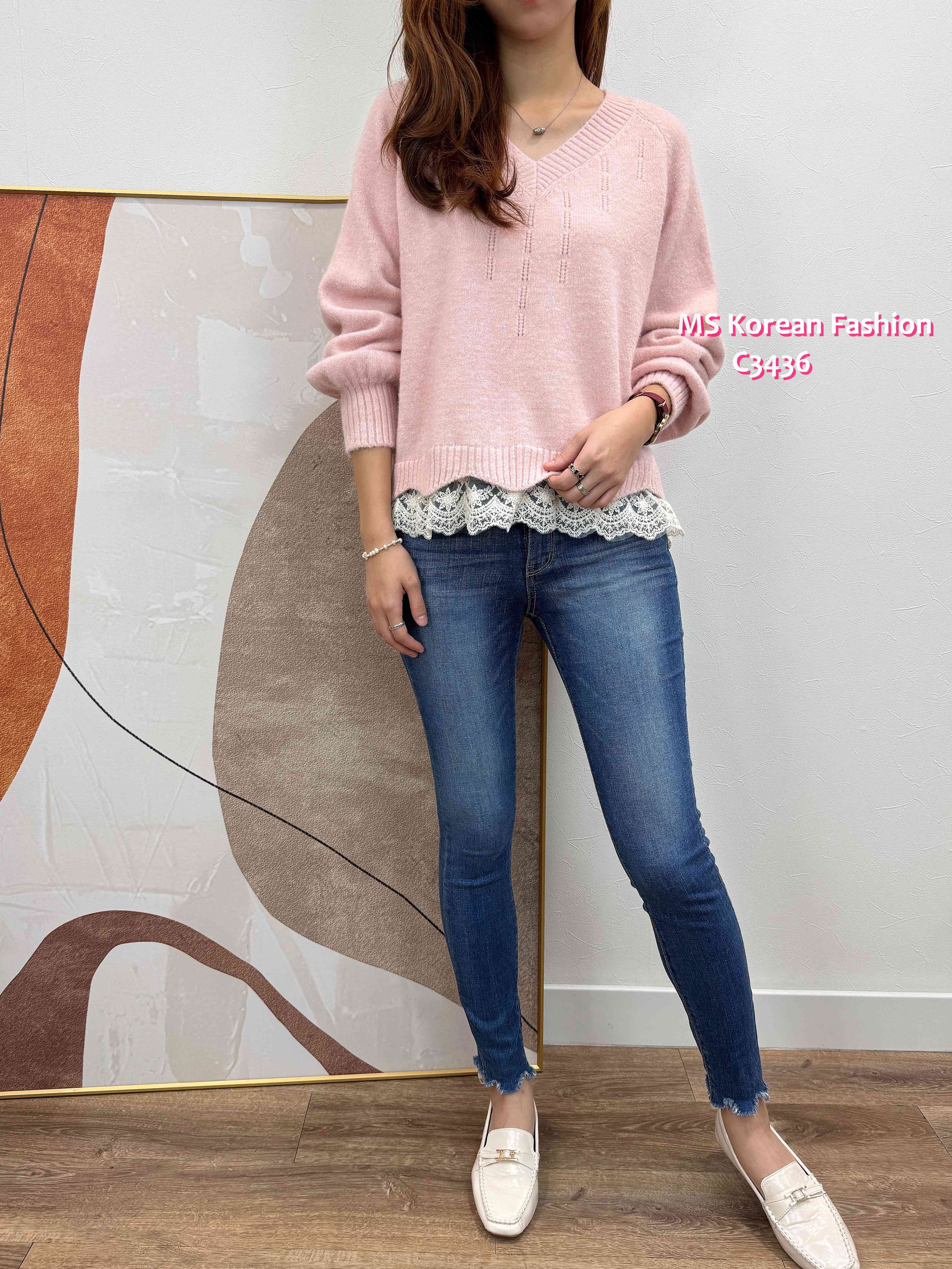[訂貨約7-10個工作天] 💰💞Happy Price: $189 V領lace腳針織top🥳 V領cutting露少少鎖骨顯瘦D 份料實物睇有少少blingbling效果好靚架🥰 lace腳可放出黎或收埋著都好睇架 3️⃣色各有捧埸客 黑、粉、紫 3色 尺寸 胸44">拉開54"/長22.5" 📫1件加$15包順豐站/自助櫃,2件包順豐(順豐站/自助櫃/工商/住宅) 📱查詢及Order可Inbox或Whatsapp 6317 3061