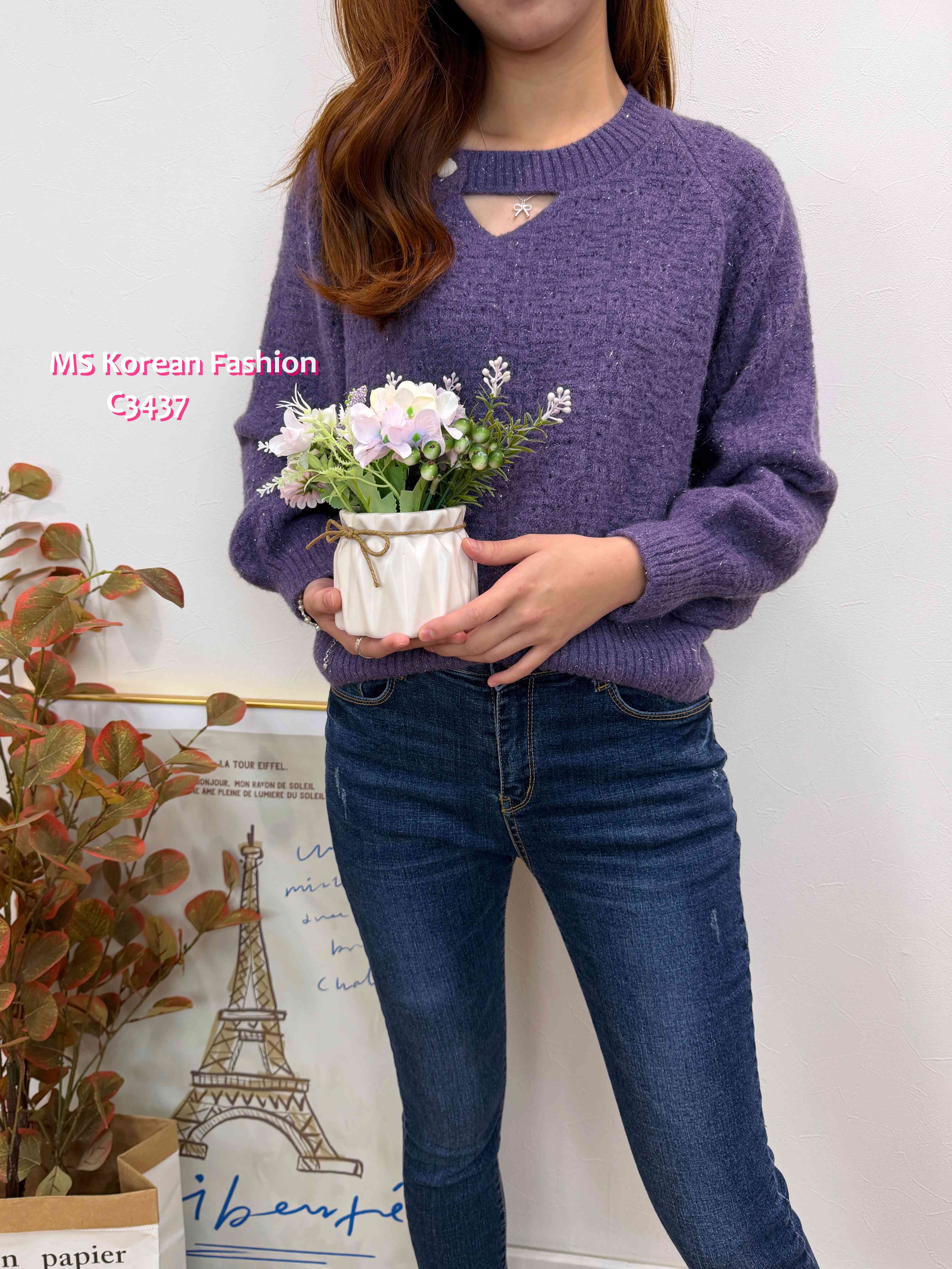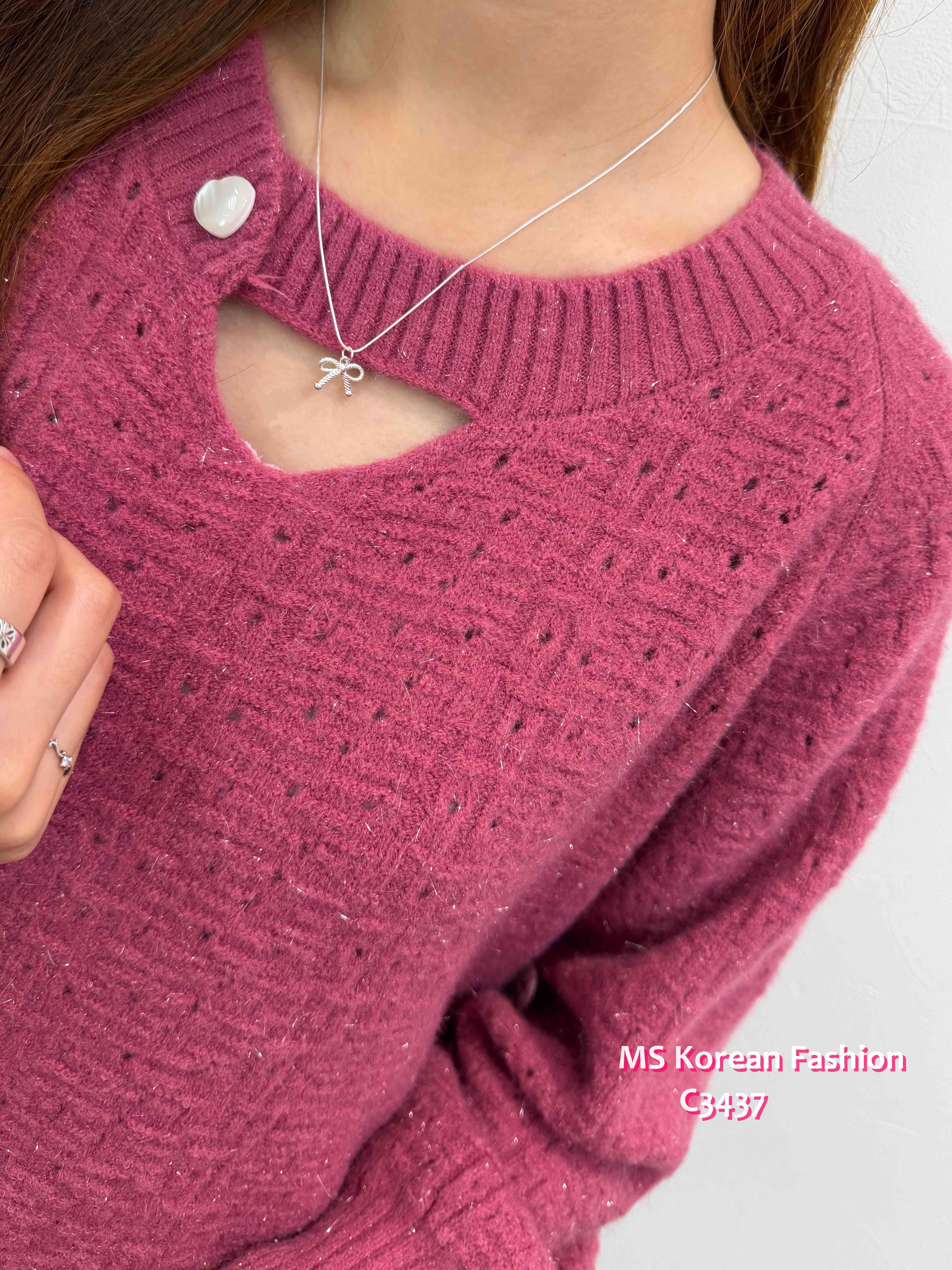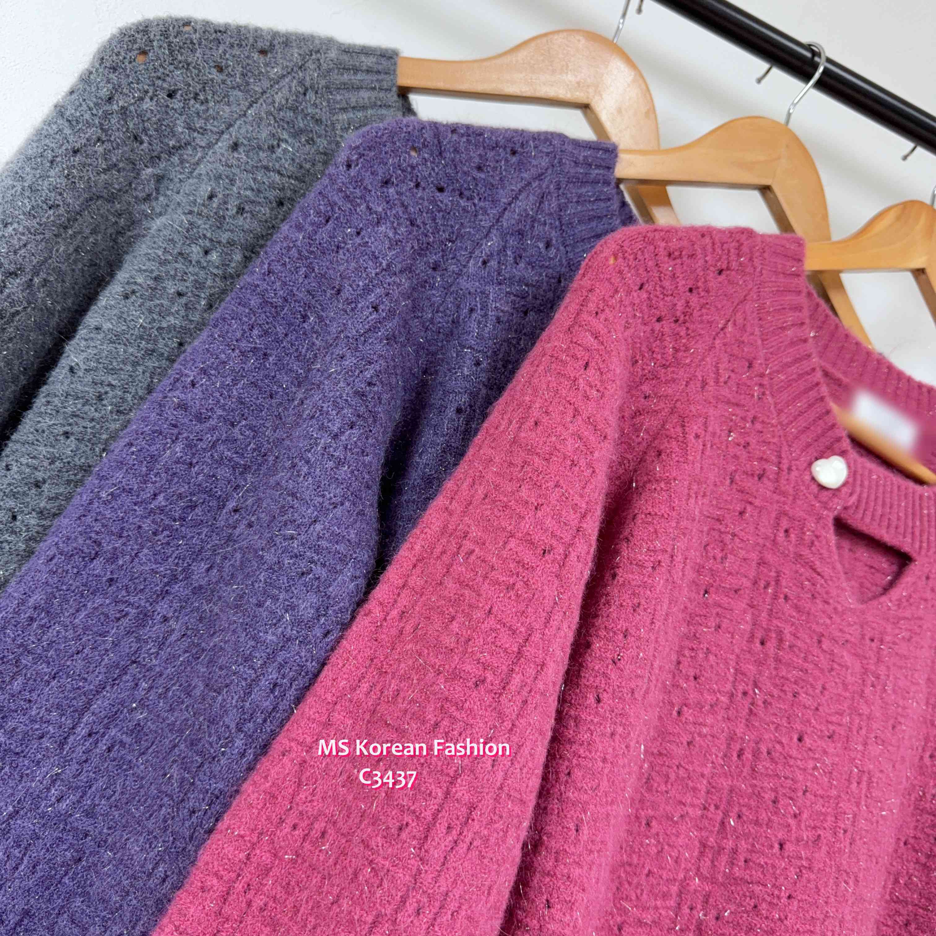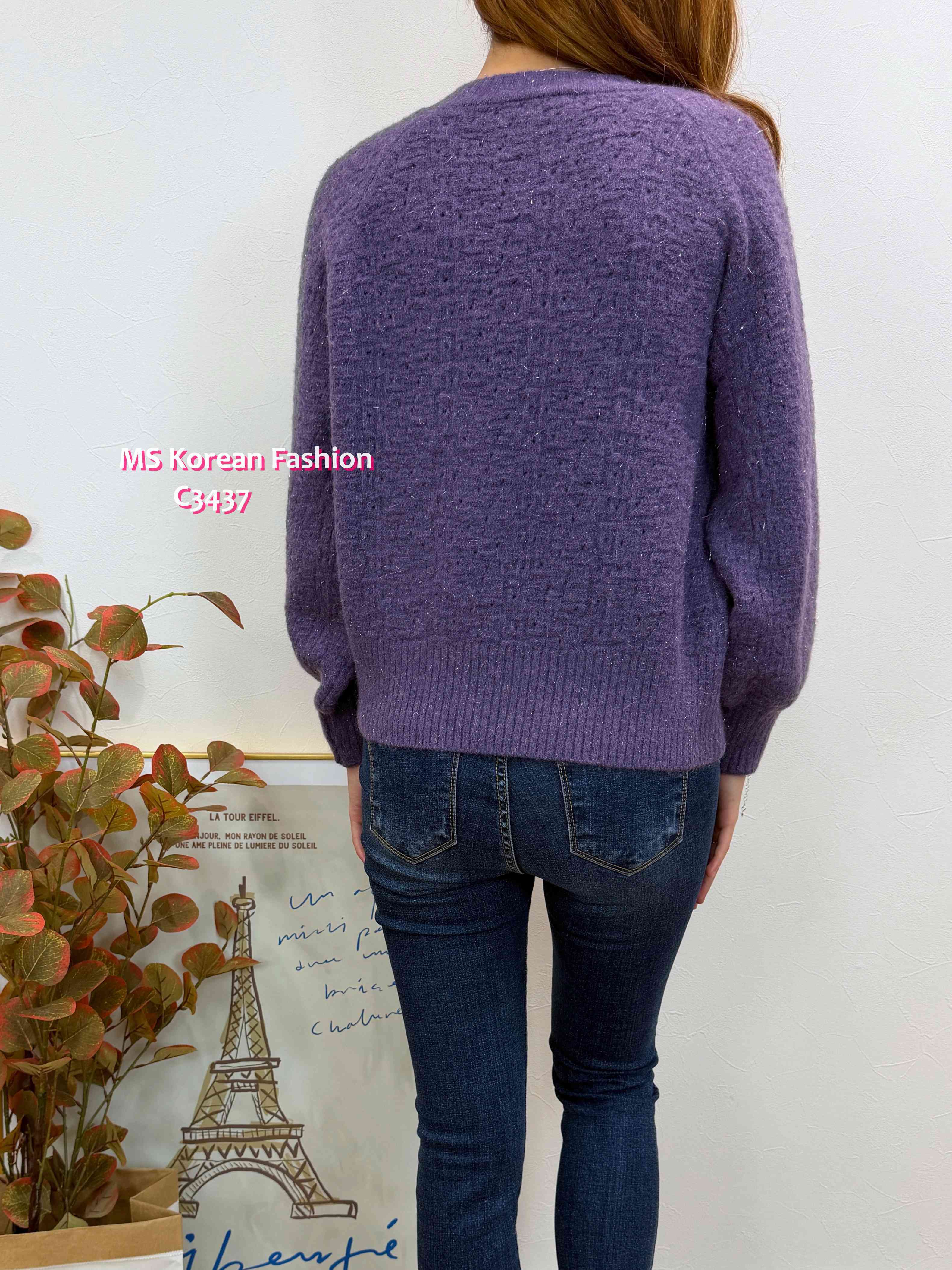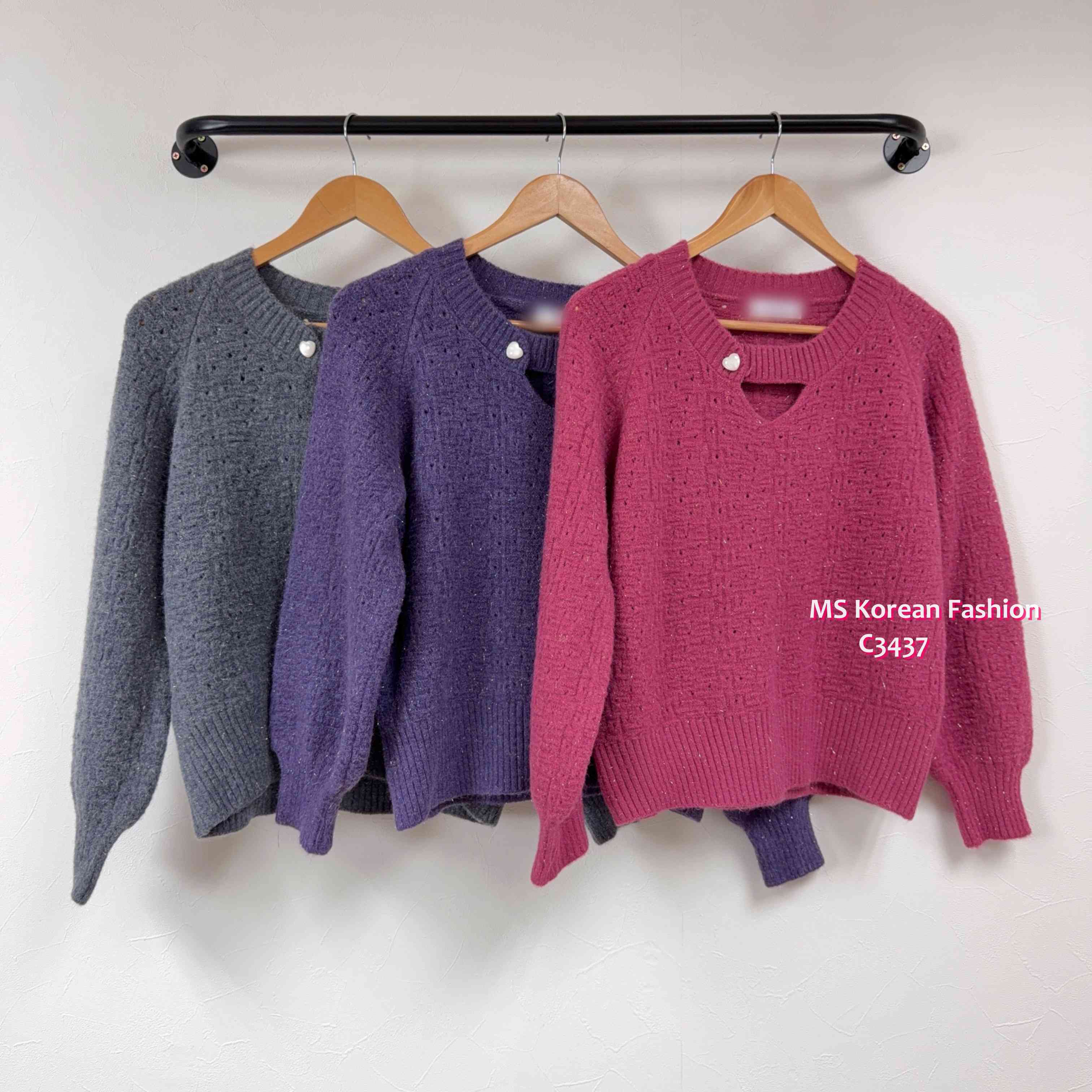[訂貨約7-10個工作天] 💰💜$199, $189 for vip 靚色針織top🥰 領位設計特別 除左開窿設計仲加左粒心心鈕 份料實物睇有少少blingbling效果好靚架🥰 3️⃣色各有捧埸客 灰、紫、玫紅 3色 尺寸 肩16"/胸40">拉開48"/長20" 📫1件加$15包順豐站/自助櫃,2件包順豐(順豐站/自助櫃/工商/住宅) 📱查詢及Order可Inbox或Whatsapp 6317 3061