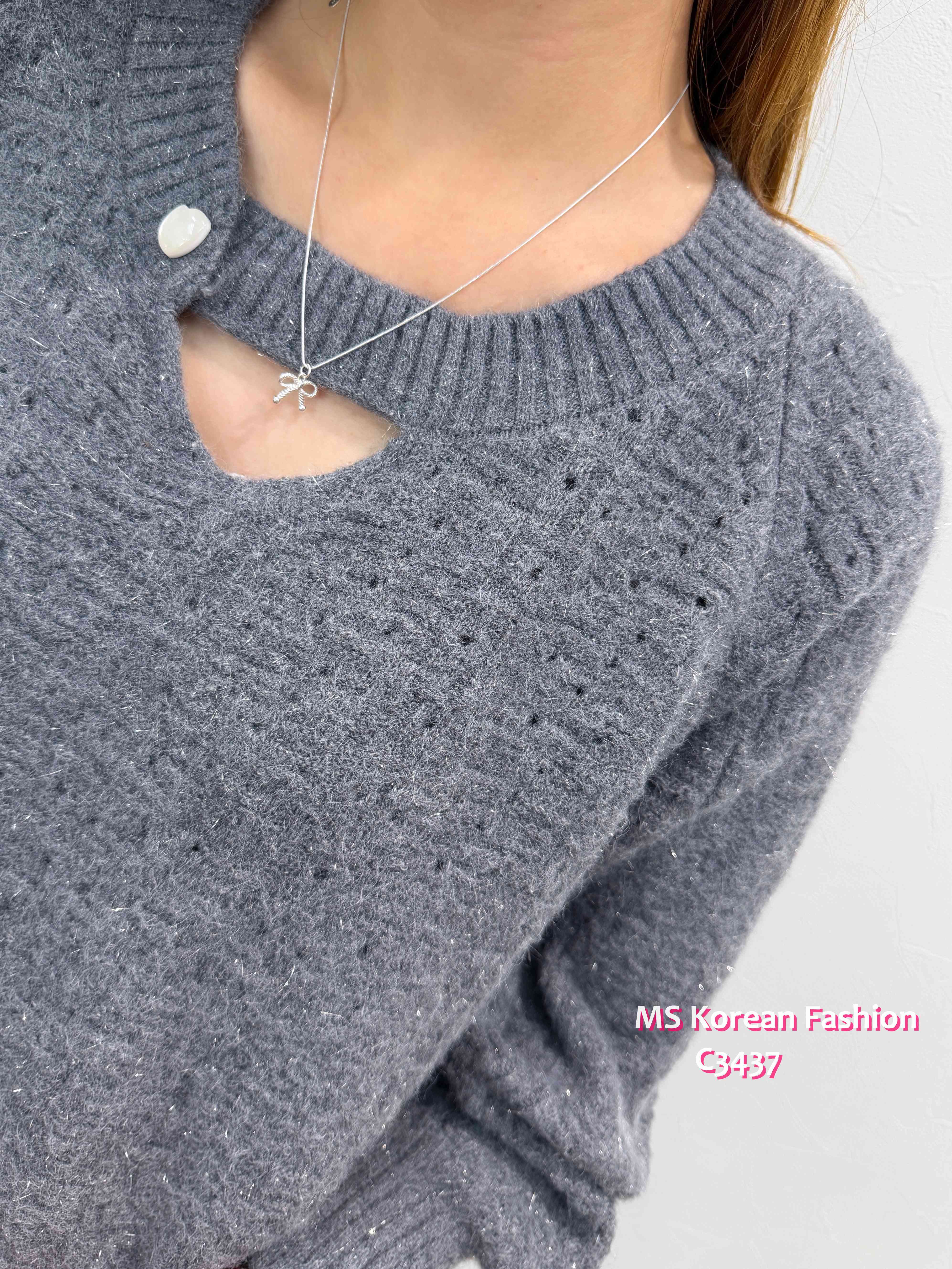 C3437 韓國🇰🇷特色領心鈕針織top