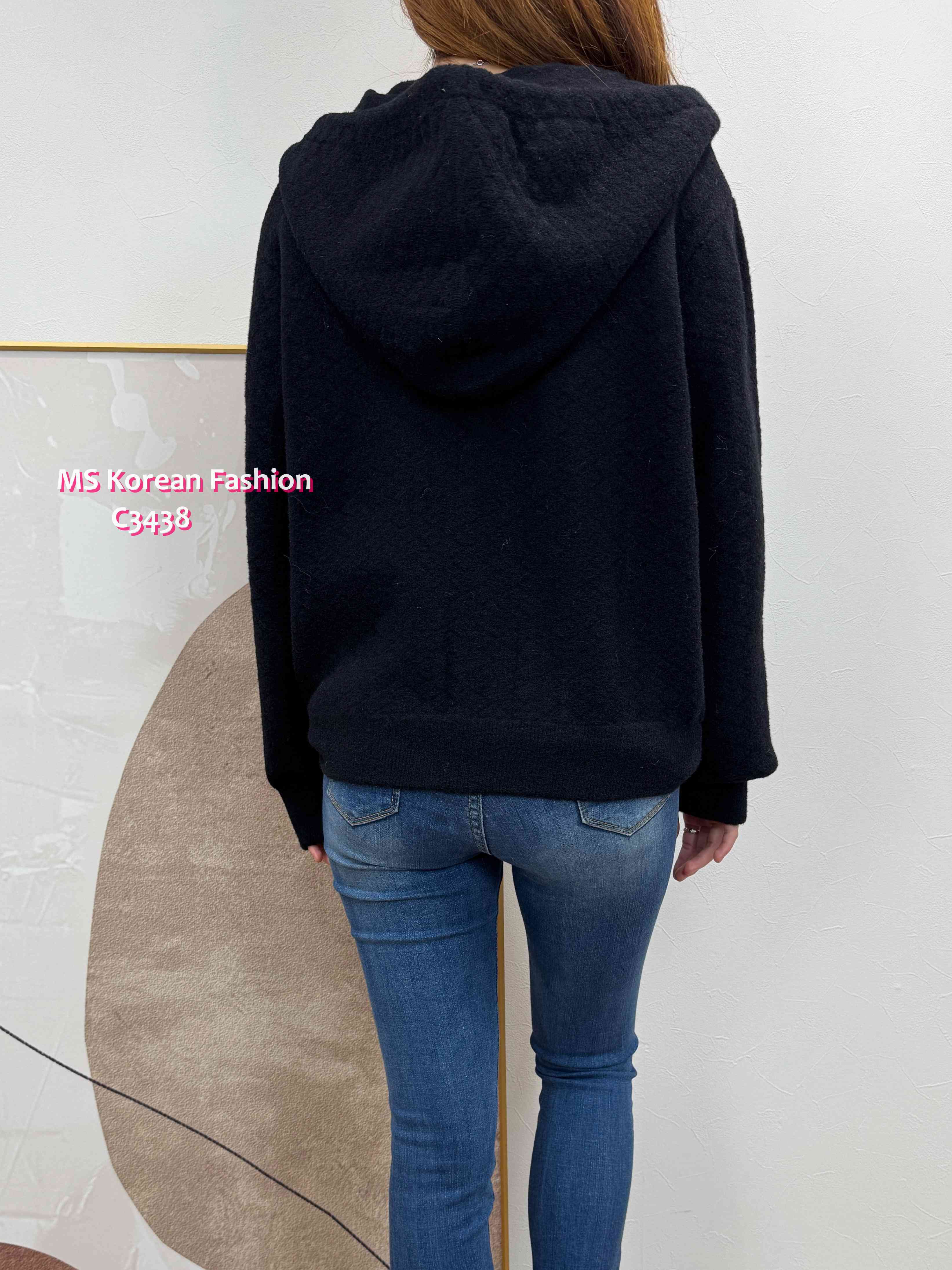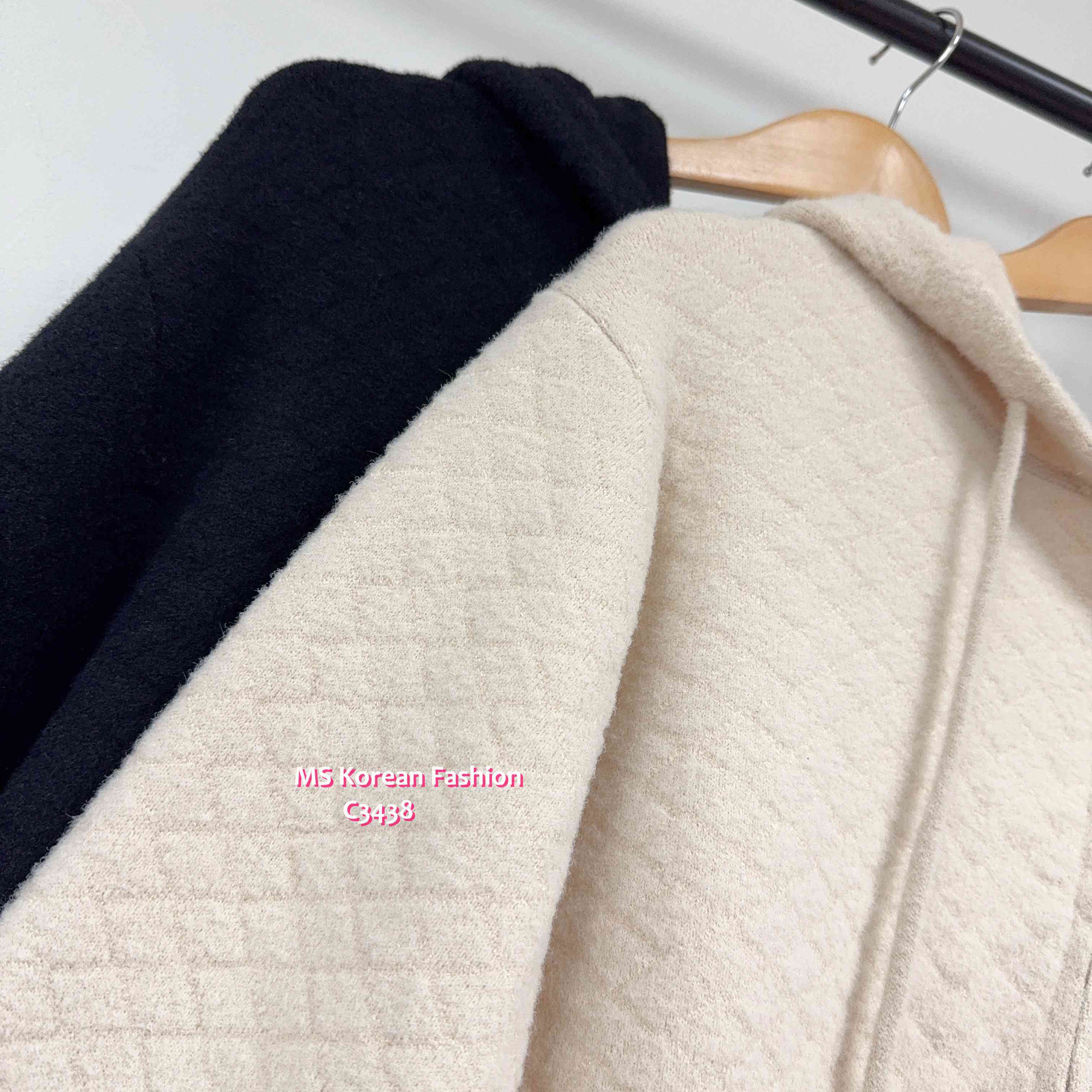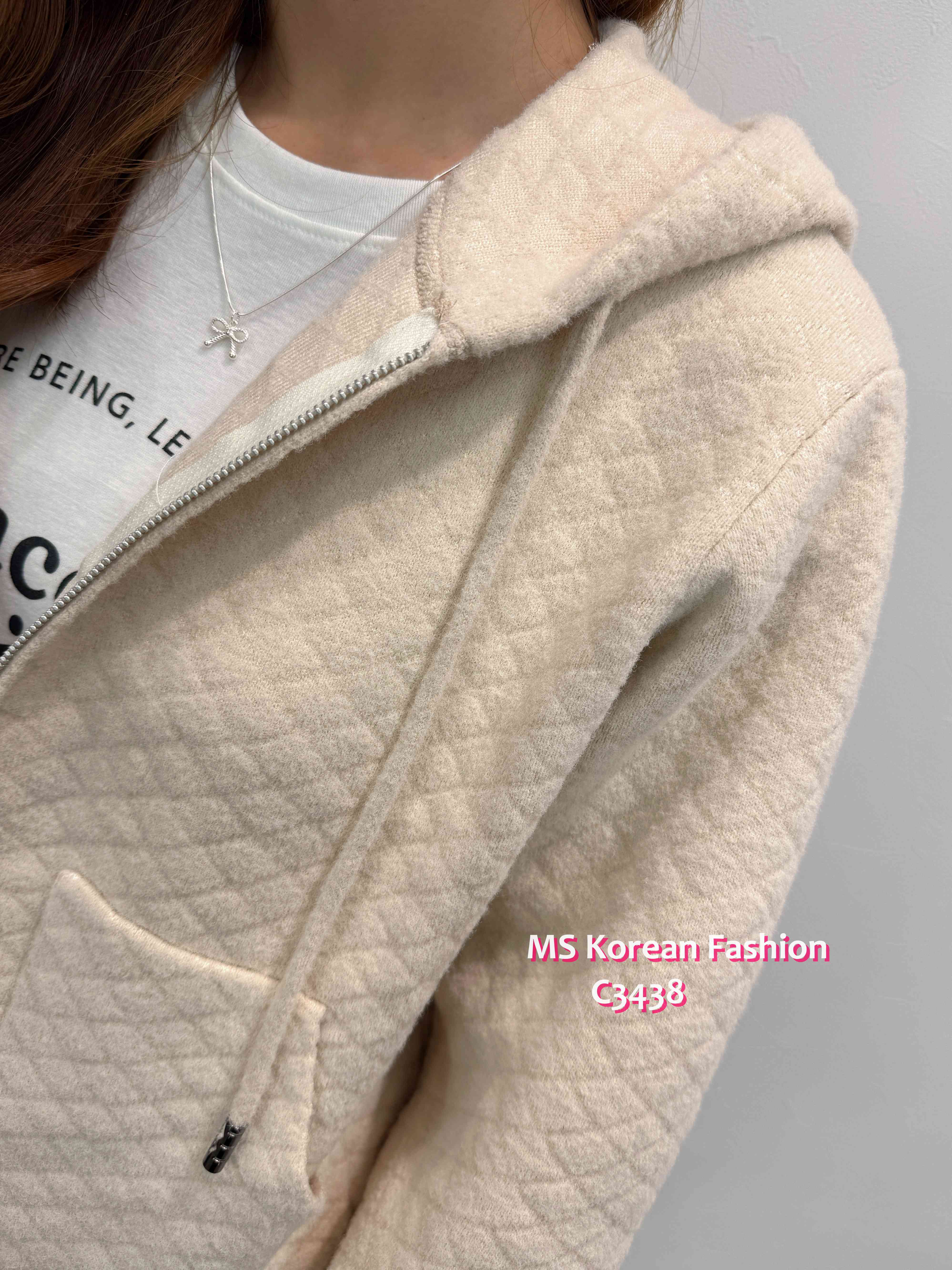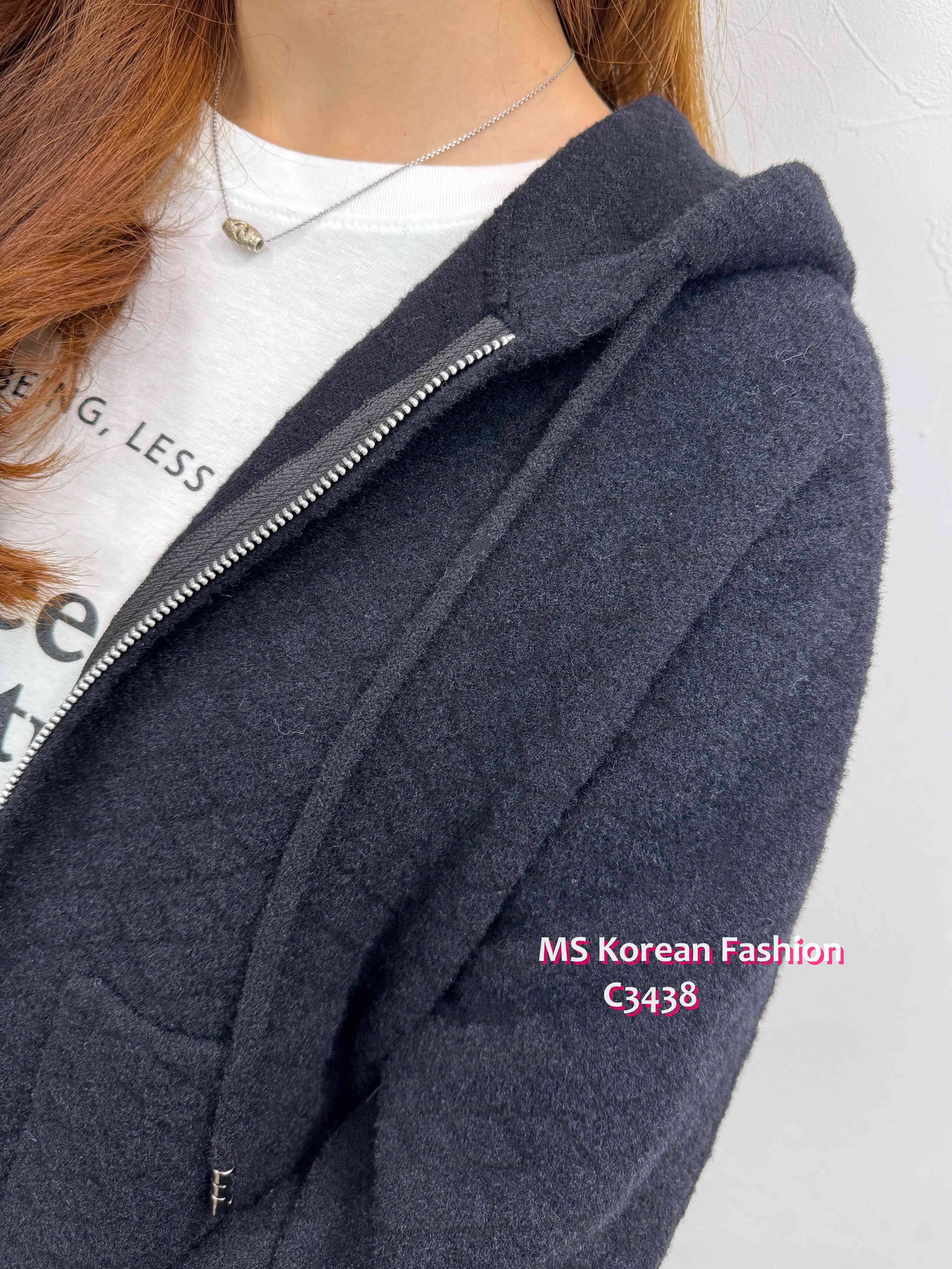 C3438 韓國🇰🇷格紋毛毛有帽外套