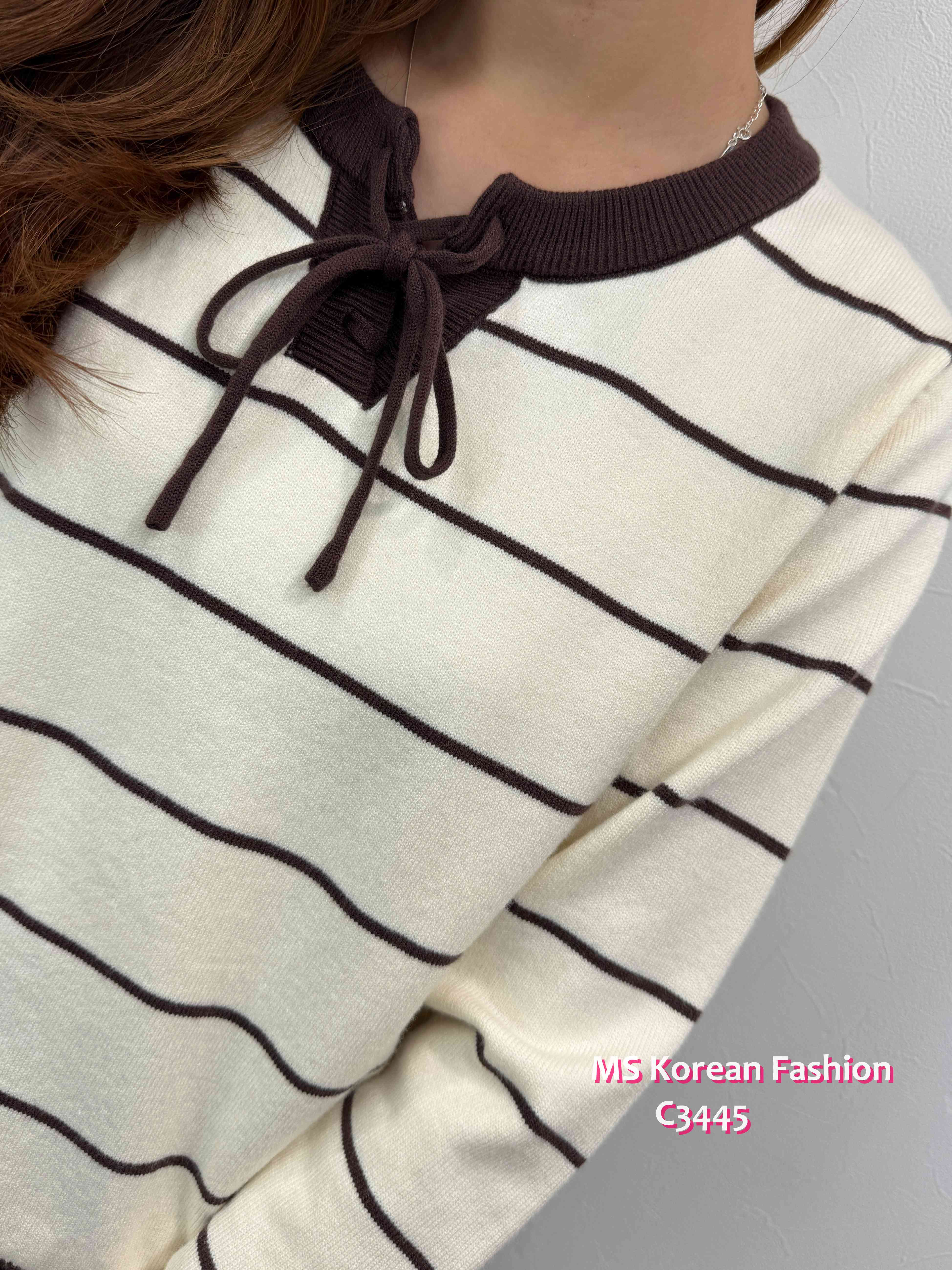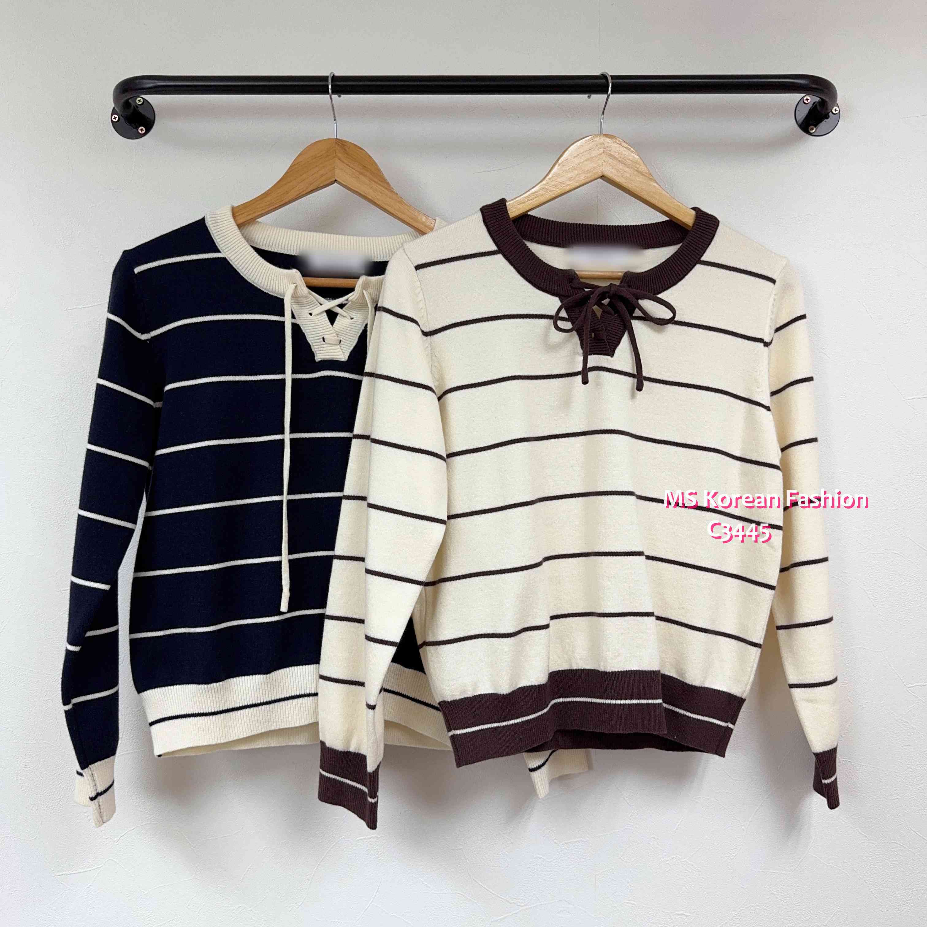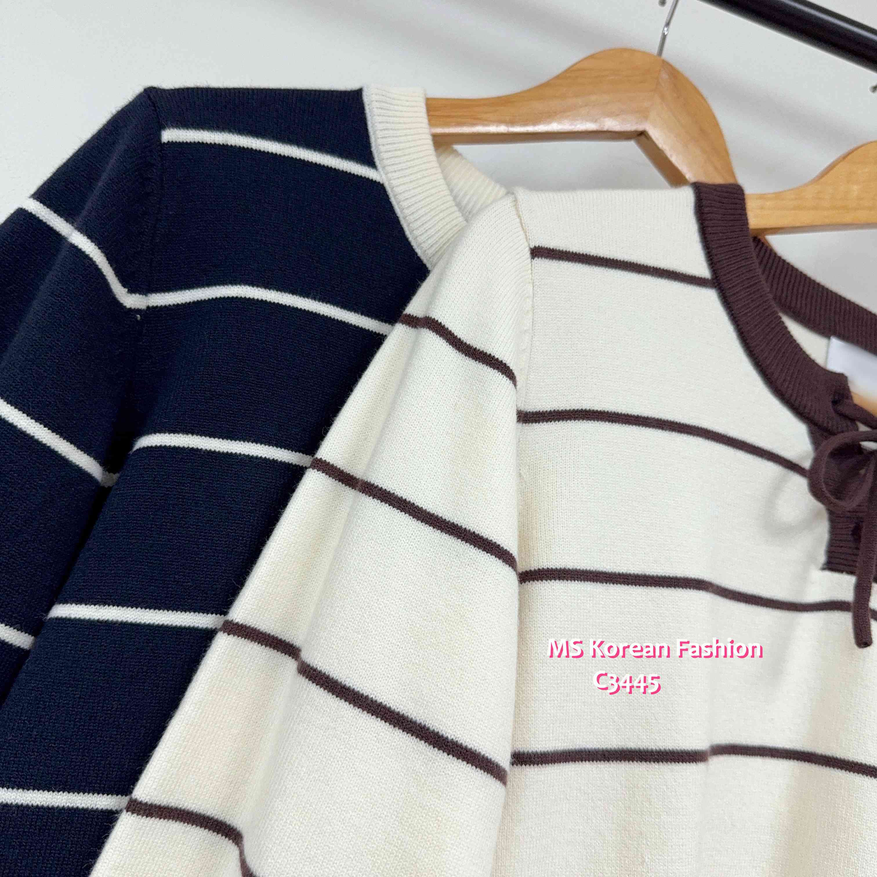 [訂貨約7-10個工作天] 💰🧧著數推介: $149🧧[原價$179] 【不可與其他優惠同時使用】 橫間針織top 領位設計特別可以綁隻蝴蝶架🎀 單著或襯外套都好睇 親民靚價🥰🥰 寶藍、米 2色 尺寸 肩16.5"/胸38">拉開46"/長22" 📫1件加$15包順豐站/自助櫃,2件包順豐(順豐站/自助櫃/工商/住宅) 📱查詢及Order可Inbox或Whatsapp 6317 3061