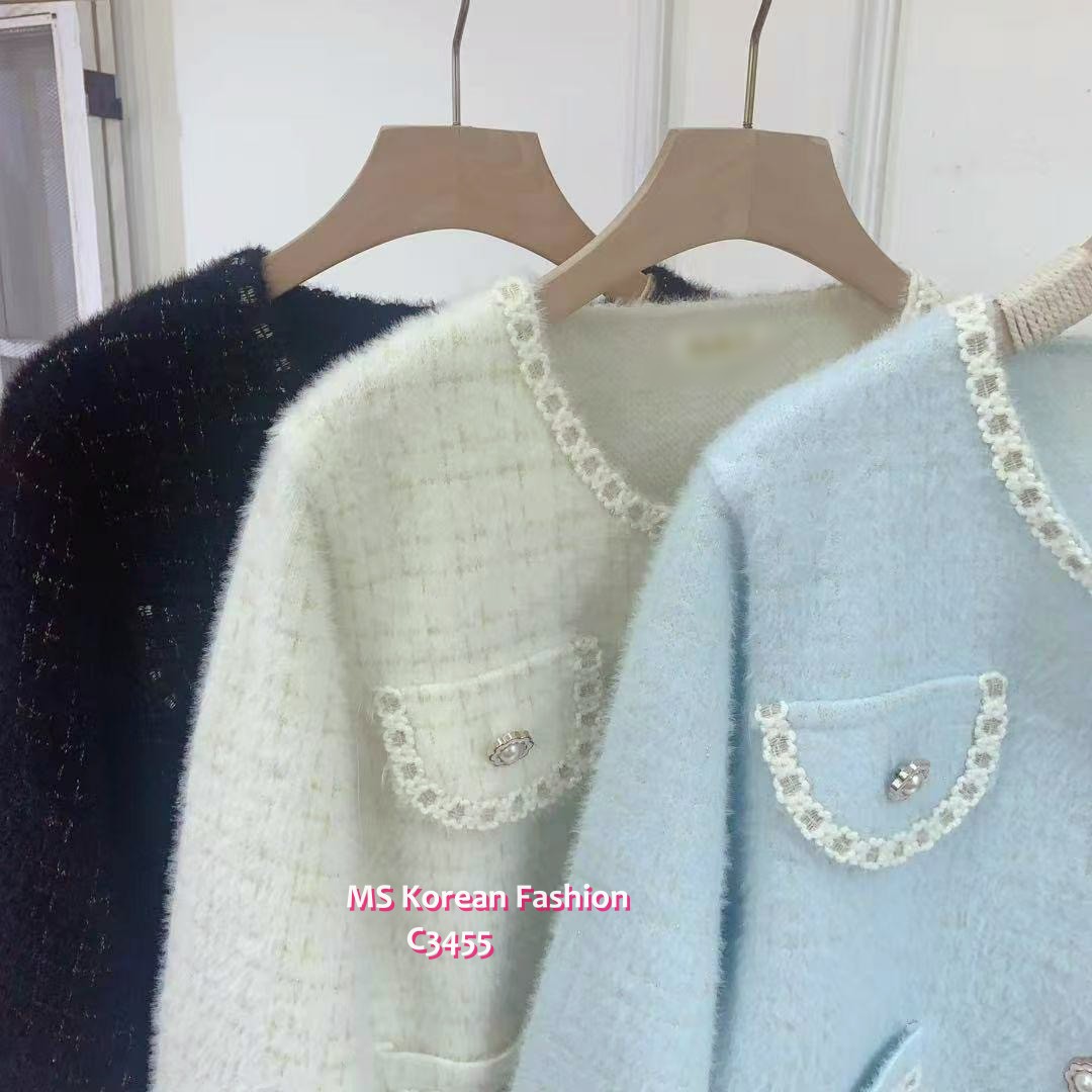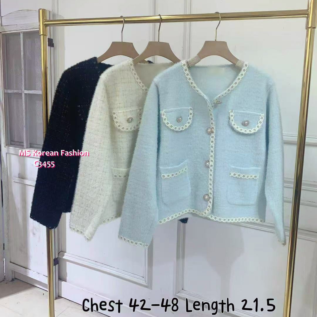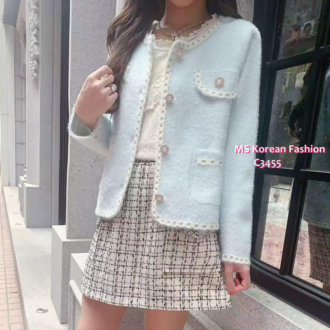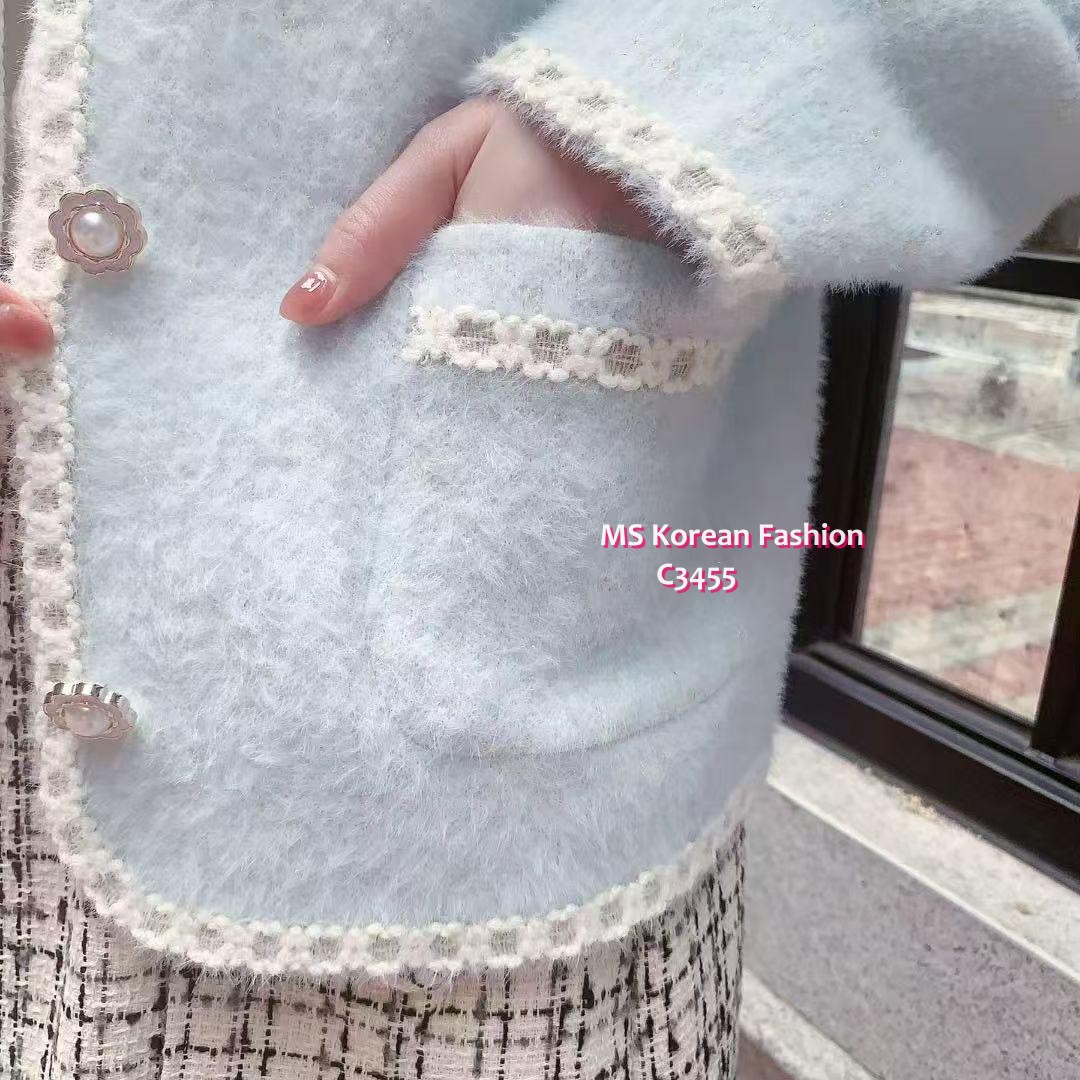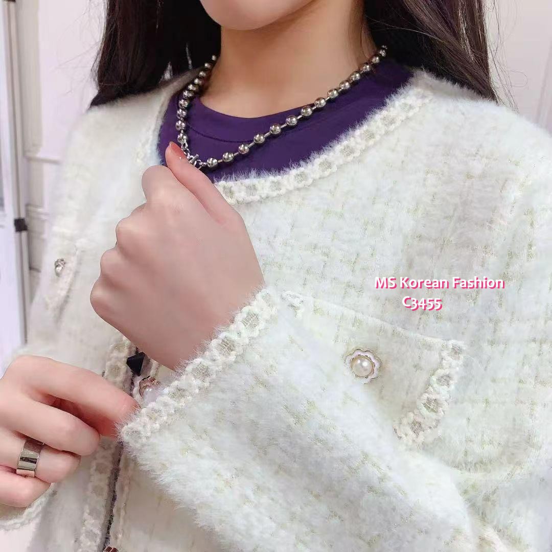 C3455 韓國🇰🇷小香風毛毛花邊外套