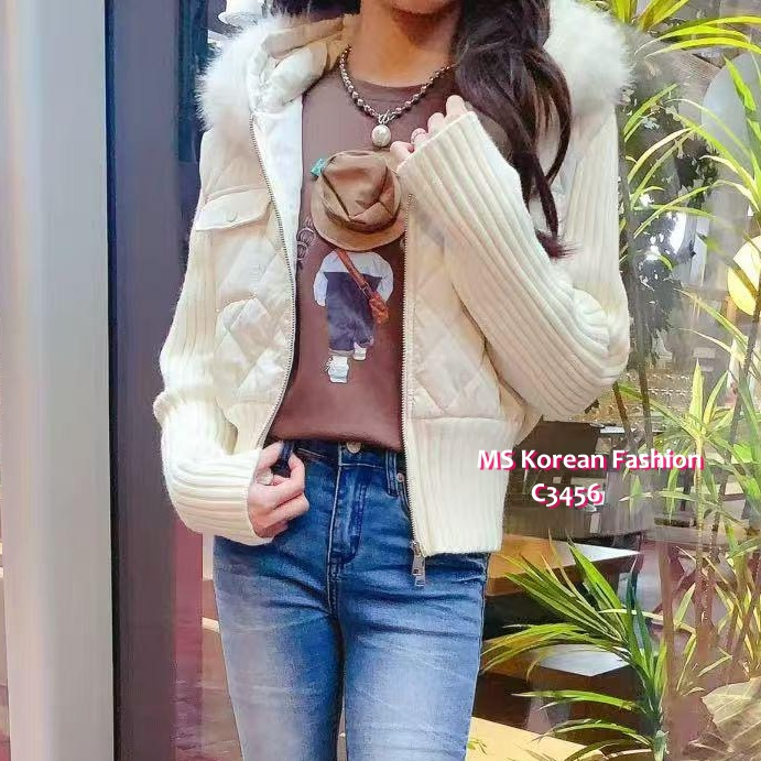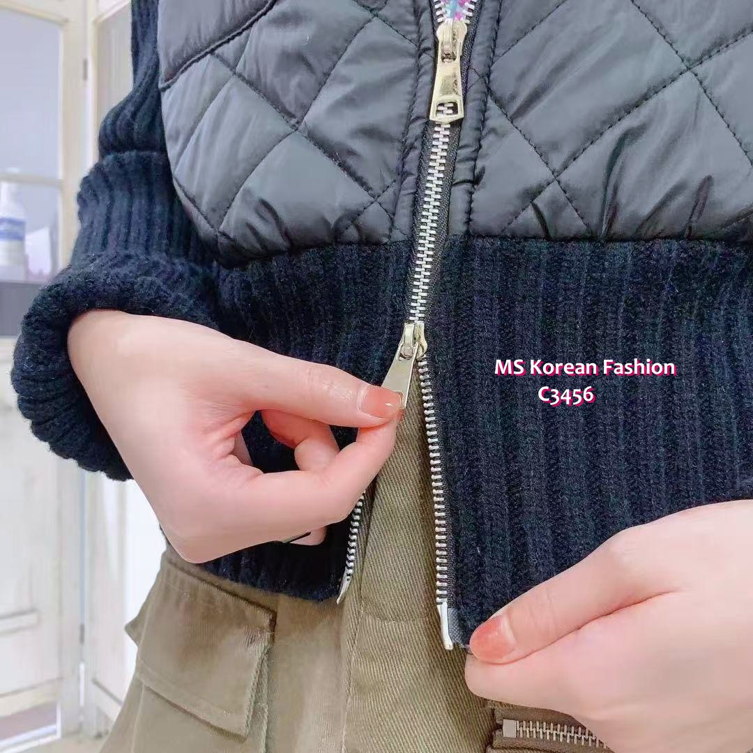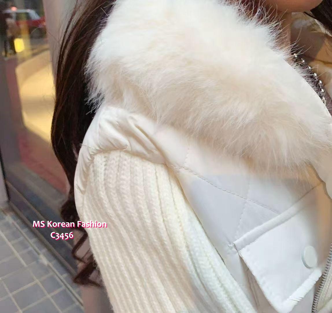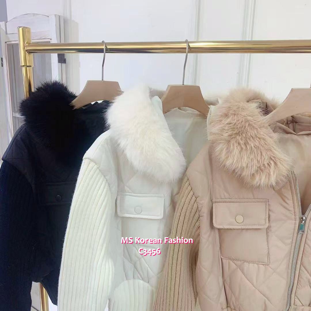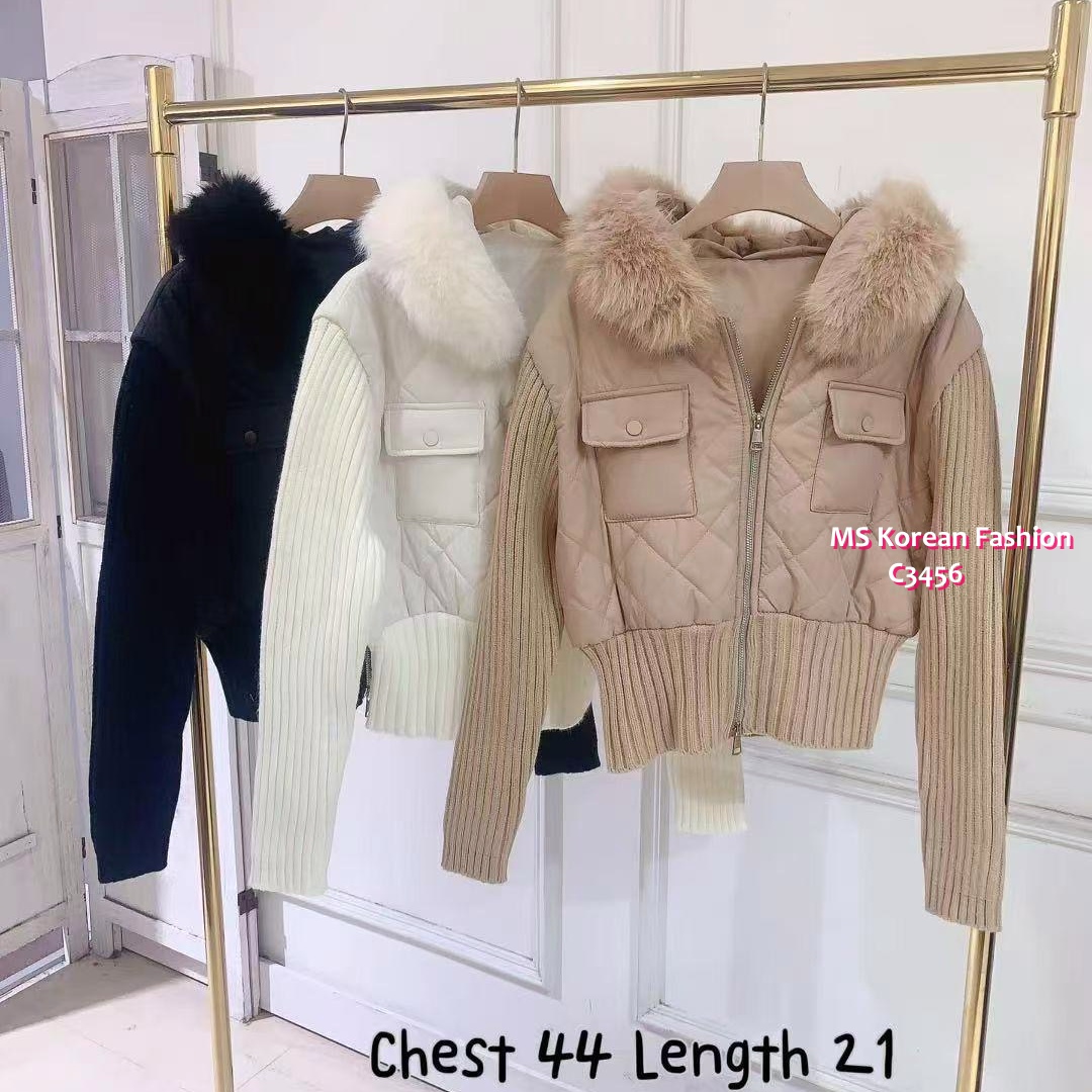 C3456 韓國🇰🇷拼針織袖毛領短身外套
