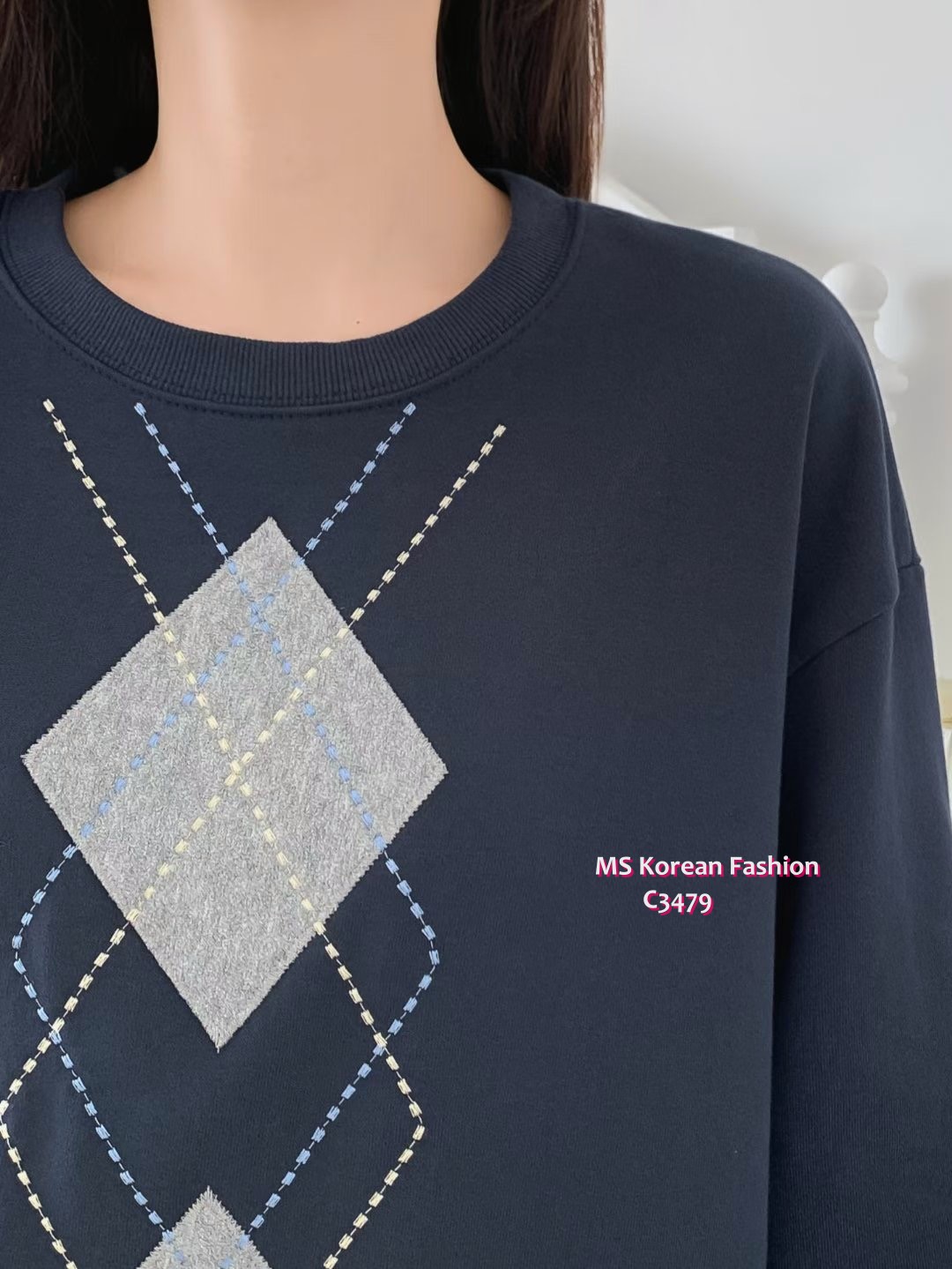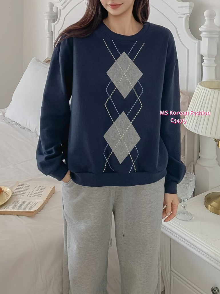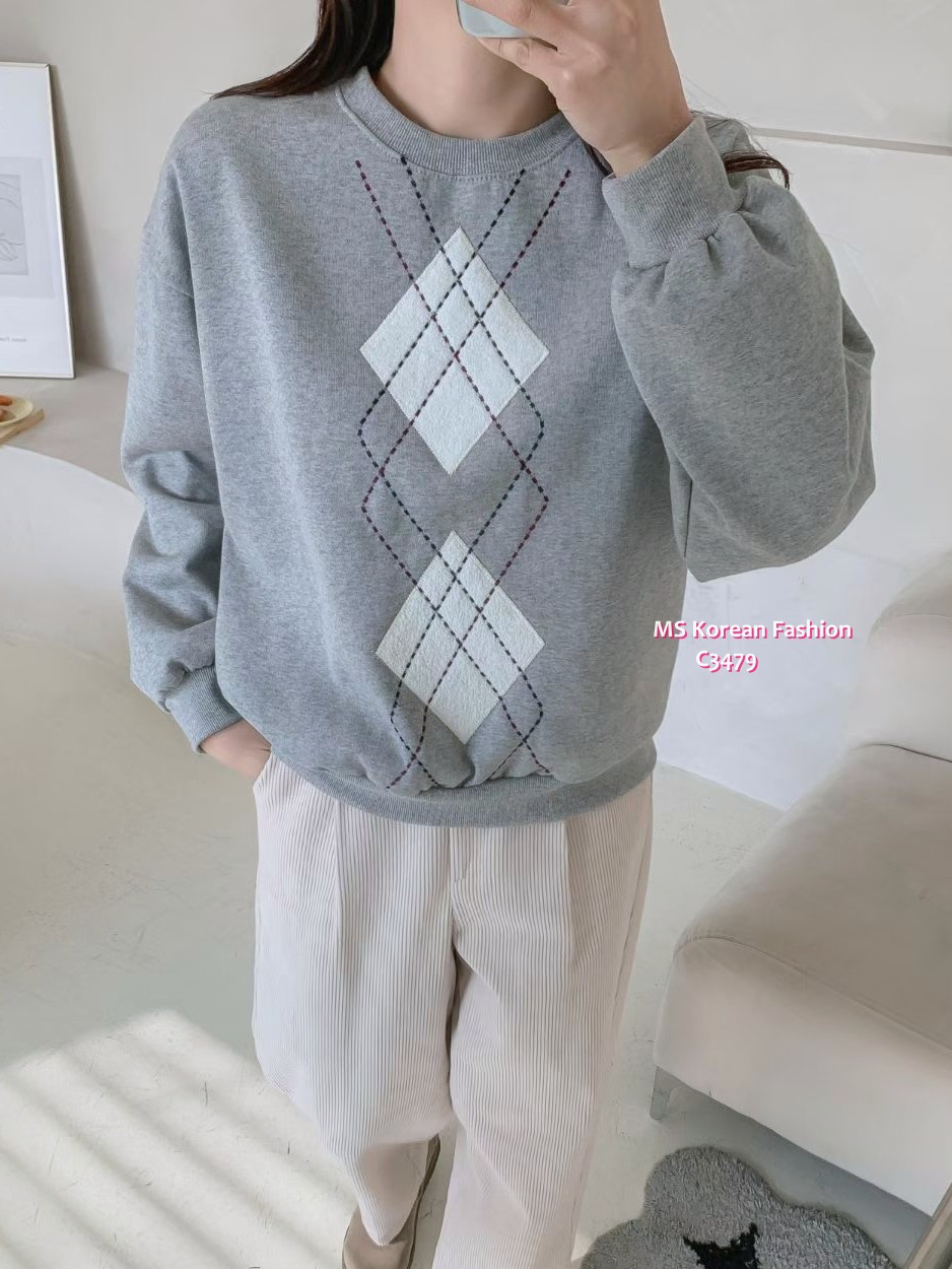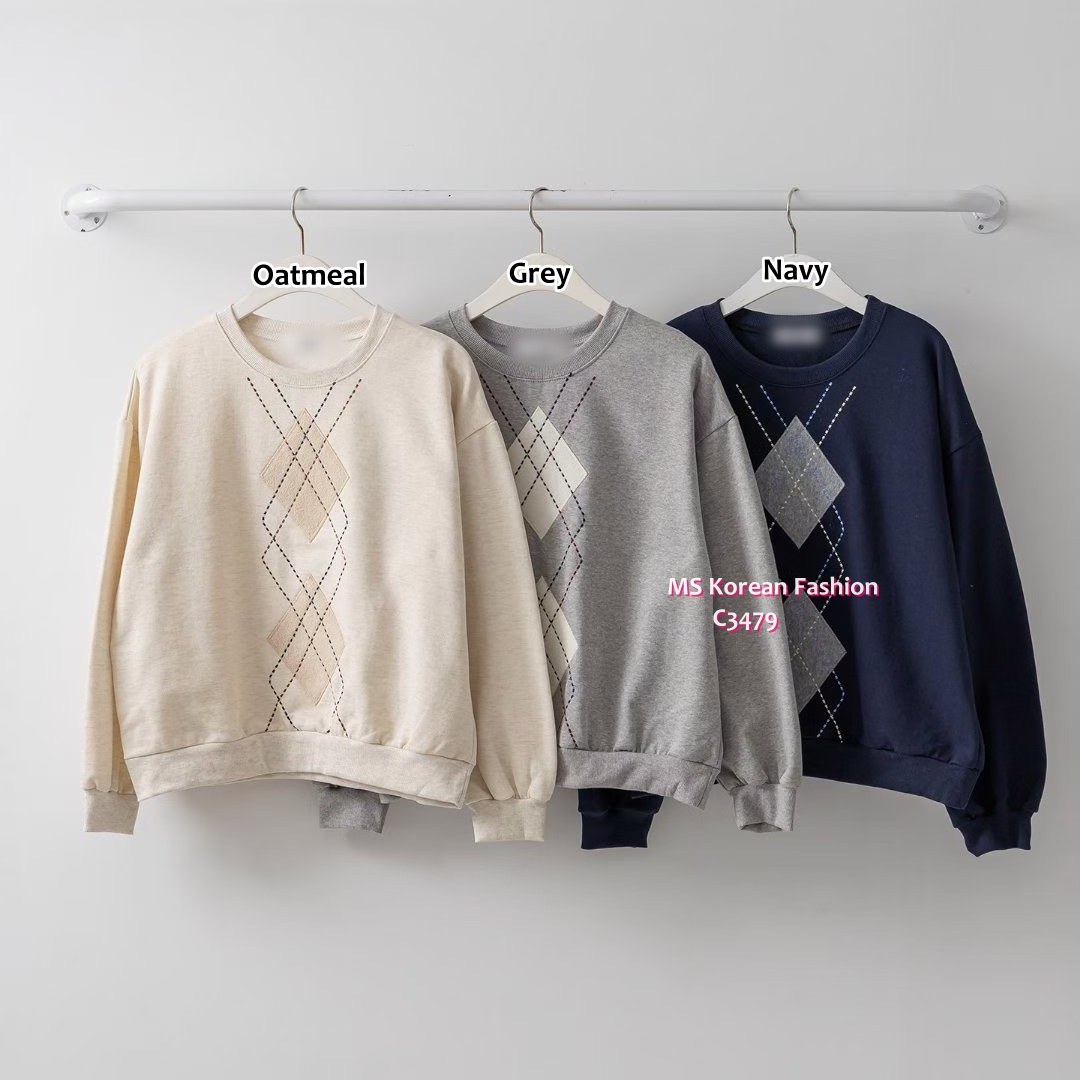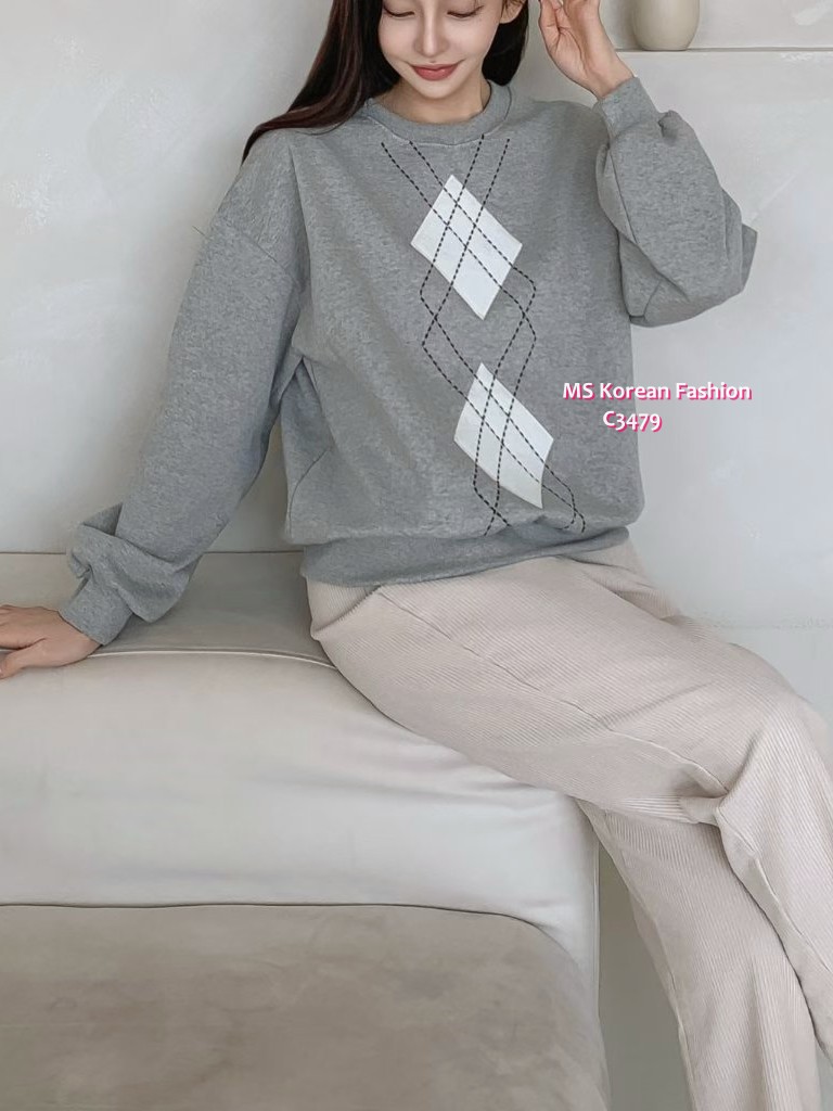 C3479 韓國🇰🇷靚色菱格紋衛衣