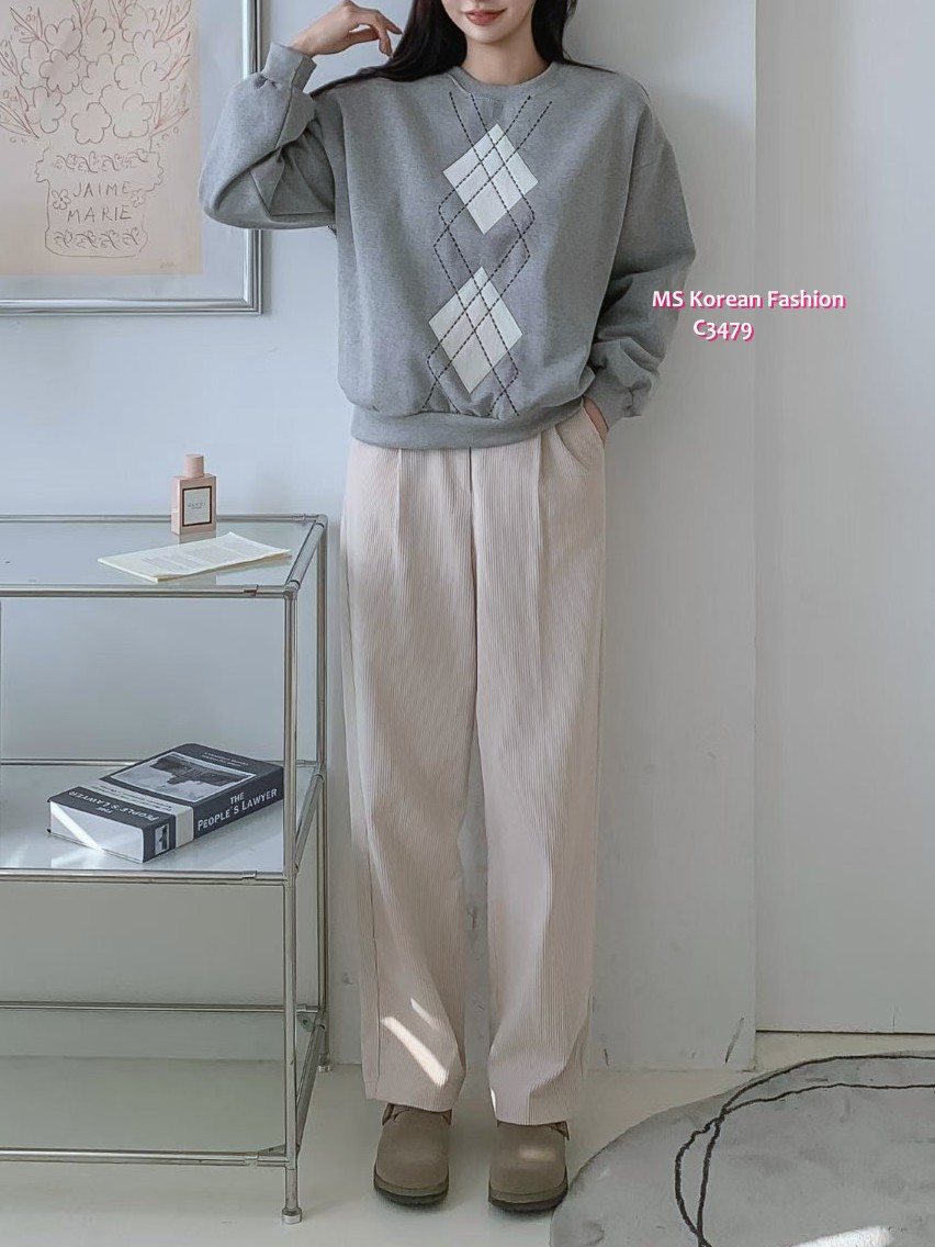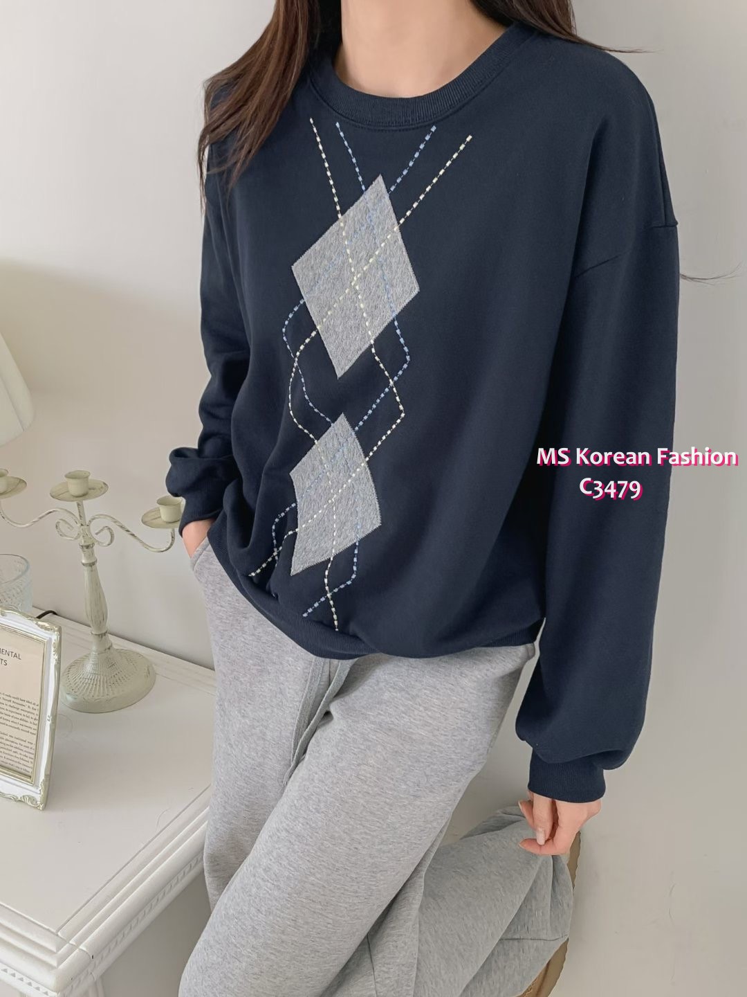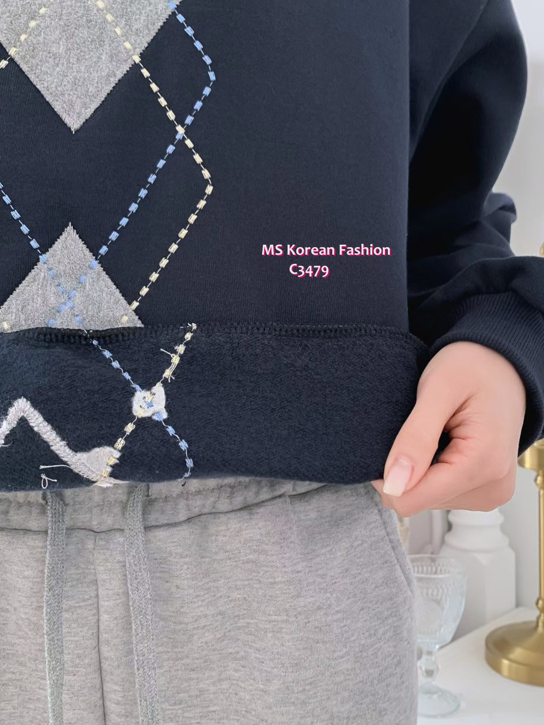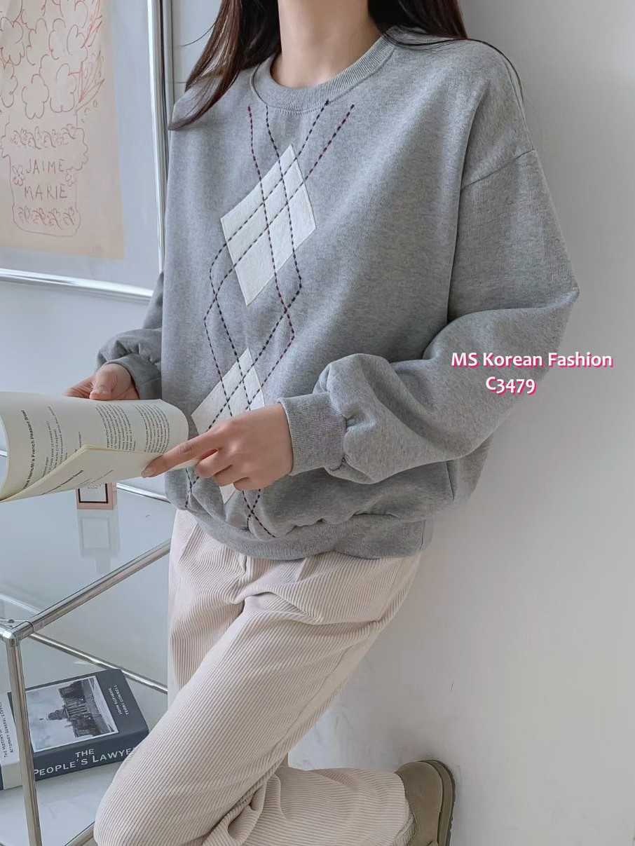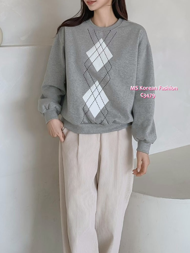C3479 韓國🇰🇷靚色菱格紋衛衣