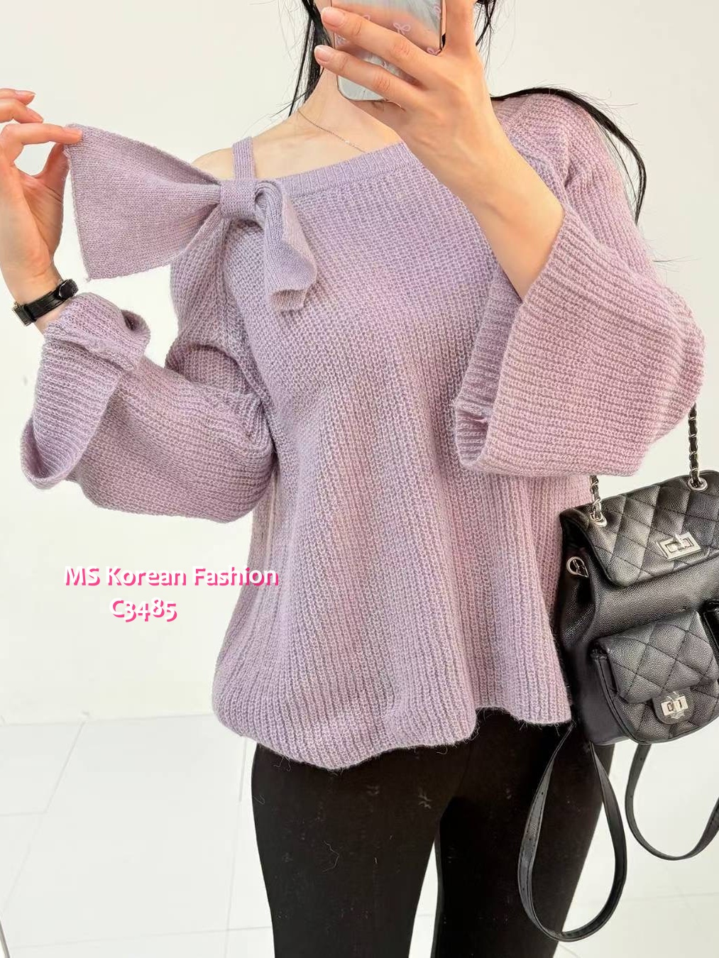 [訂貨約7-10個工作天] 💰💞Happy Price: $229 靚色針織蝴蝶結top🎀 吊帶大領口設計露下鎖骨好有睇頭 隻蝴蝶扣針可以拆架👍 鬆鬆地肥瘦都carry到😎 米、紫 2色 📫1件加$15包順豐站/自助櫃,2件包順豐(順豐站/自助櫃/工商/住宅) 📱查詢及Order可Inbox或Whatsapp 6317 3061