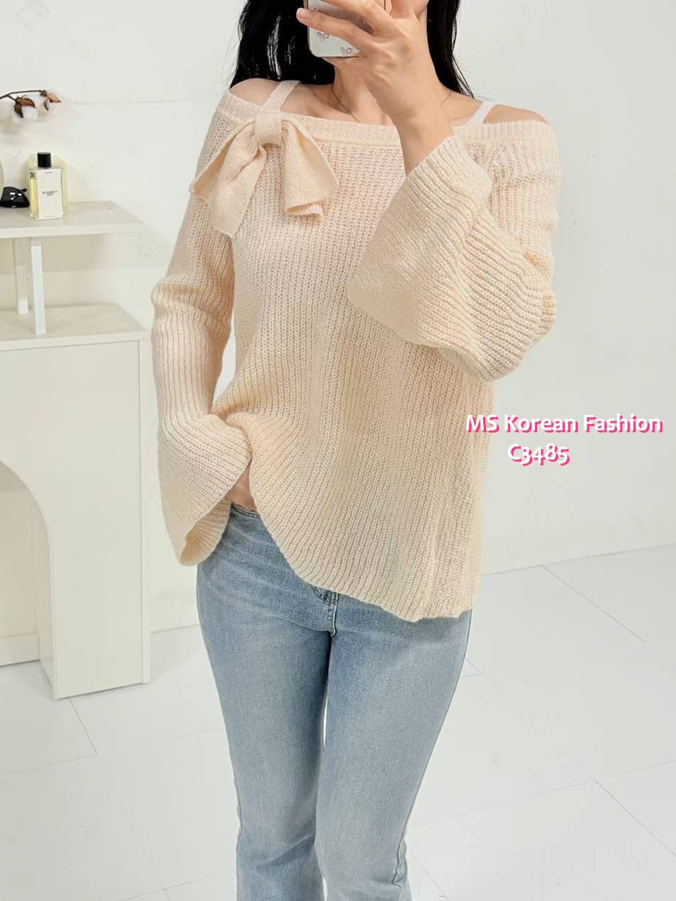 C3485 韓國🇰🇷靚色針織蝴蝶結top