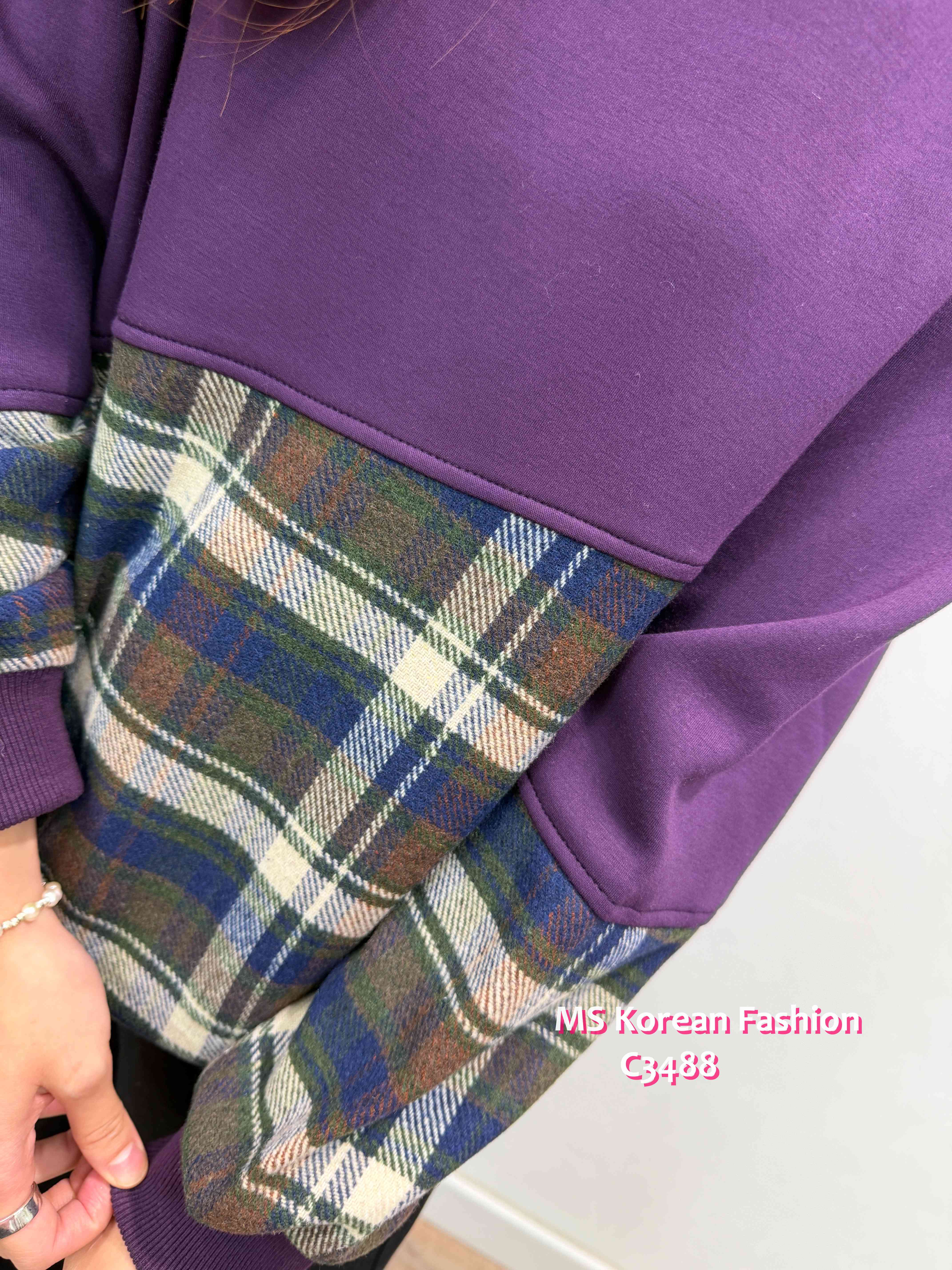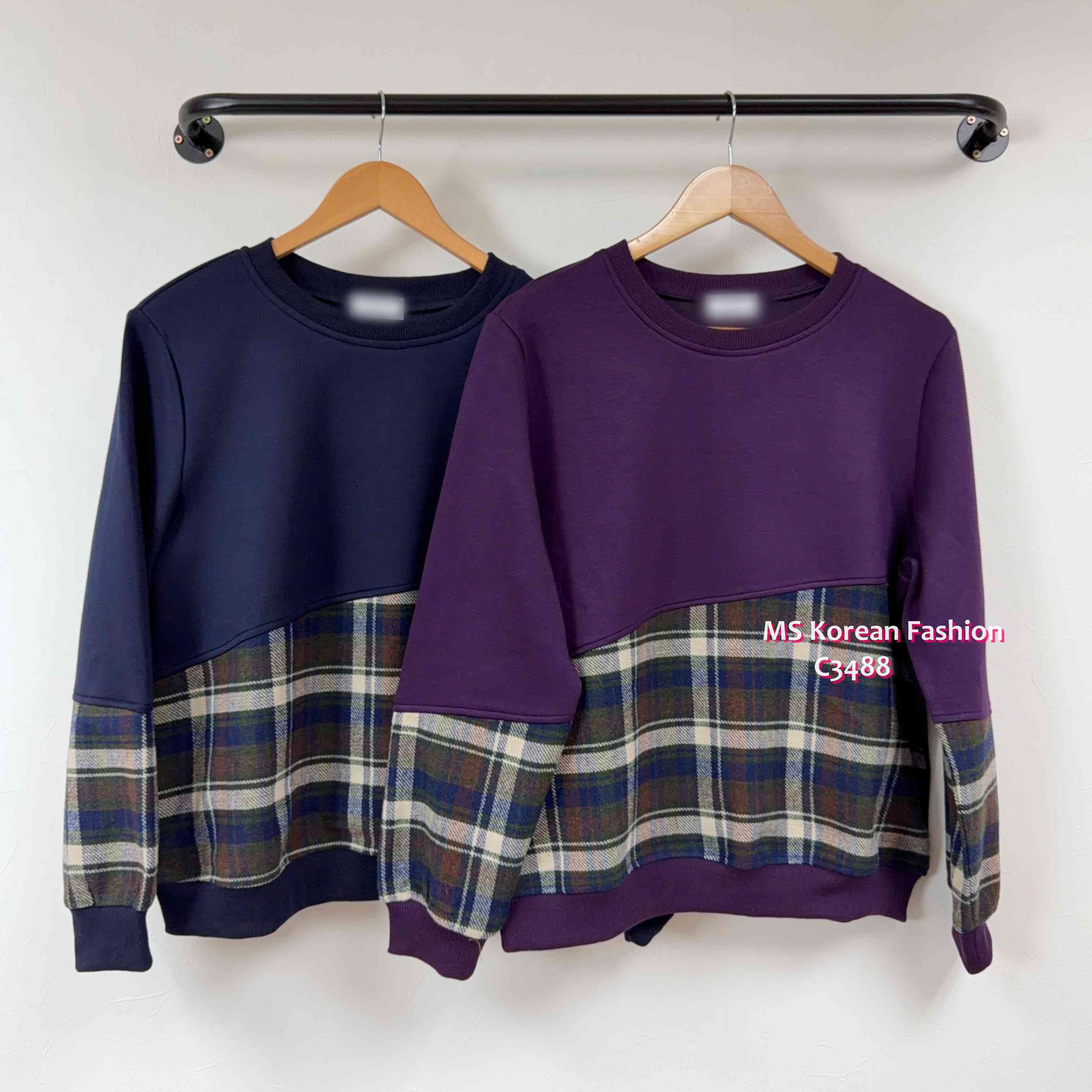 [訂貨約7-10個工作天] 💰💞Happy Price: $179 拼格紋pattern top💢 舒服挺身棉料 Colour拼色巧令令🌈 單著或襯外套都一流 寶藍、紫 2色 尺寸 肩17"/胸44">拉開48"/長24" 📫1件加$15包順豐站/自助櫃,2件包順豐(順豐站/自助櫃/工商/住宅) 📱查詢及Order可Inbox或Whatsapp 6317 3061