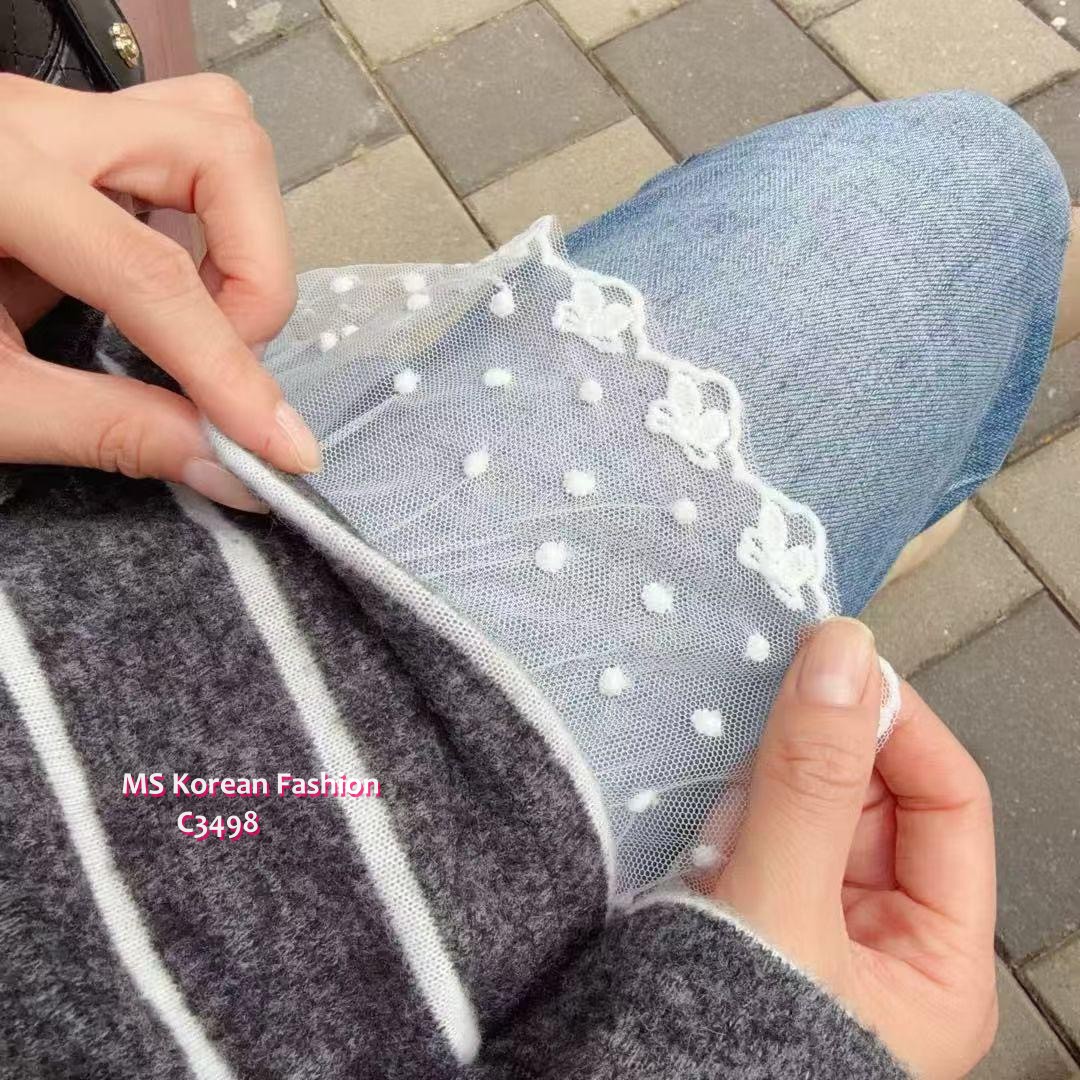 C3498 韓國🇰🇷靚print橫間拼紗腳top
