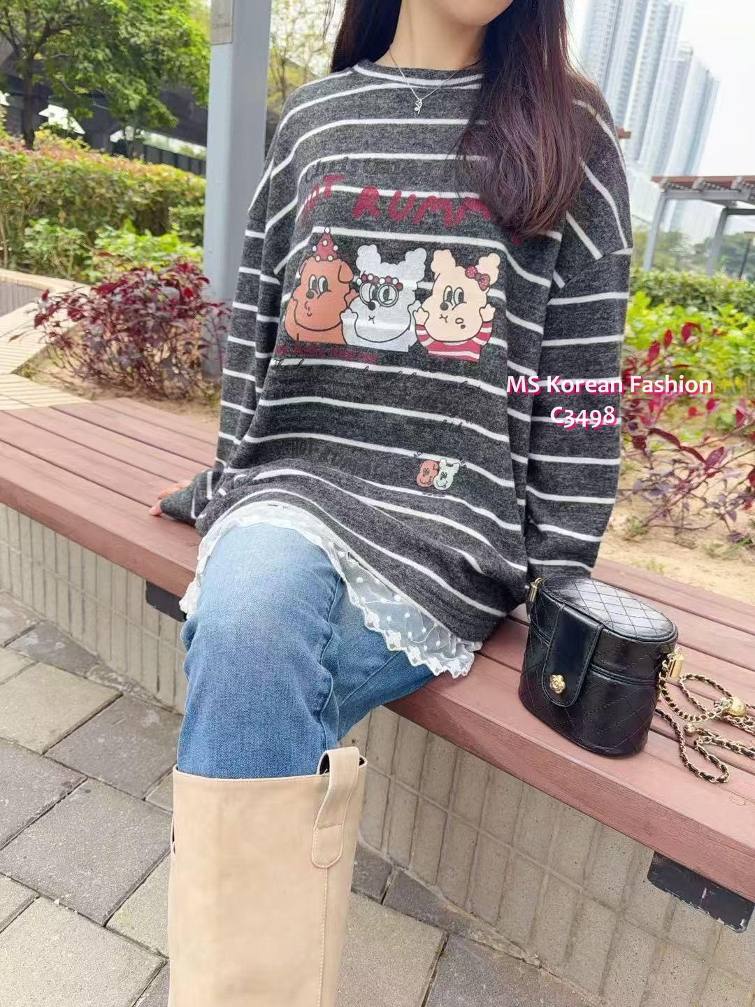 訂貨約7-10個工作天] 💰💞Happy Price: $229 靚print橫間拼紗腳top 3隻可愛動物圖案夠晒kawaii🥰 衫腳拼波點紗設計好特別 鬆鬆地易carry👍 灰黑、淺灰 2色 尺寸 胸52"/長29.5" 📫1件加$15包順豐站/自助櫃,2件包順豐(順豐站/自助櫃/工商/住宅) 📱查詢及Order可Inbox或Whatsapp 6317 3061